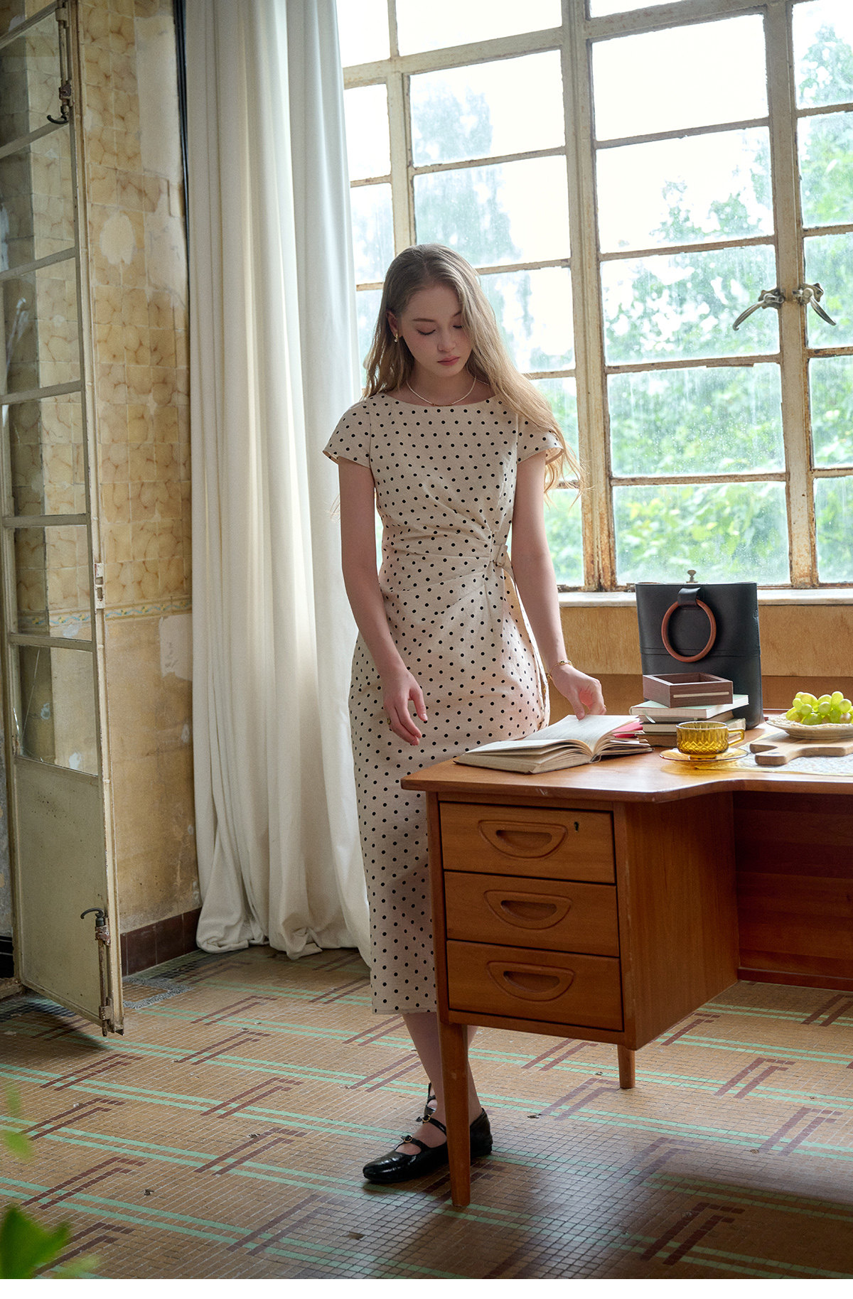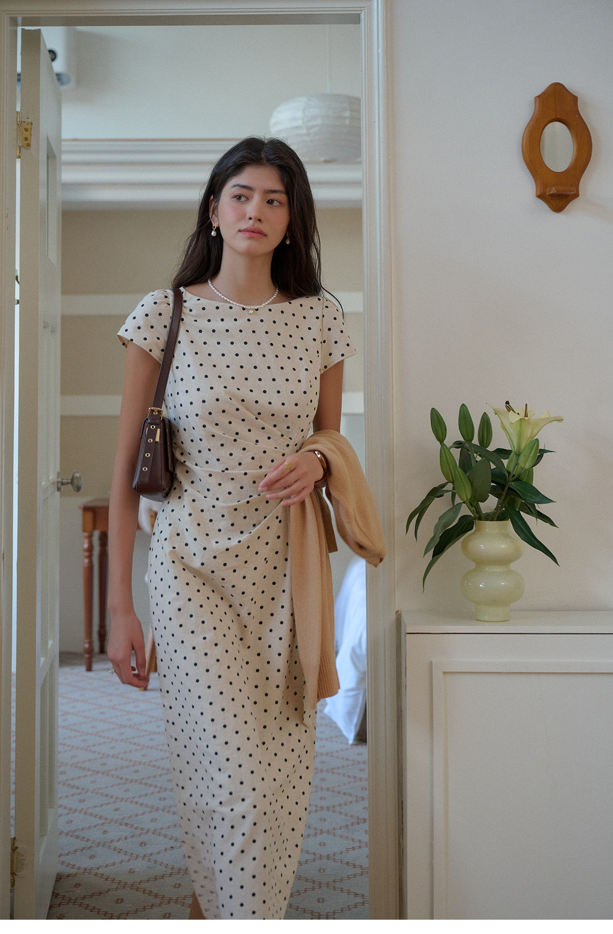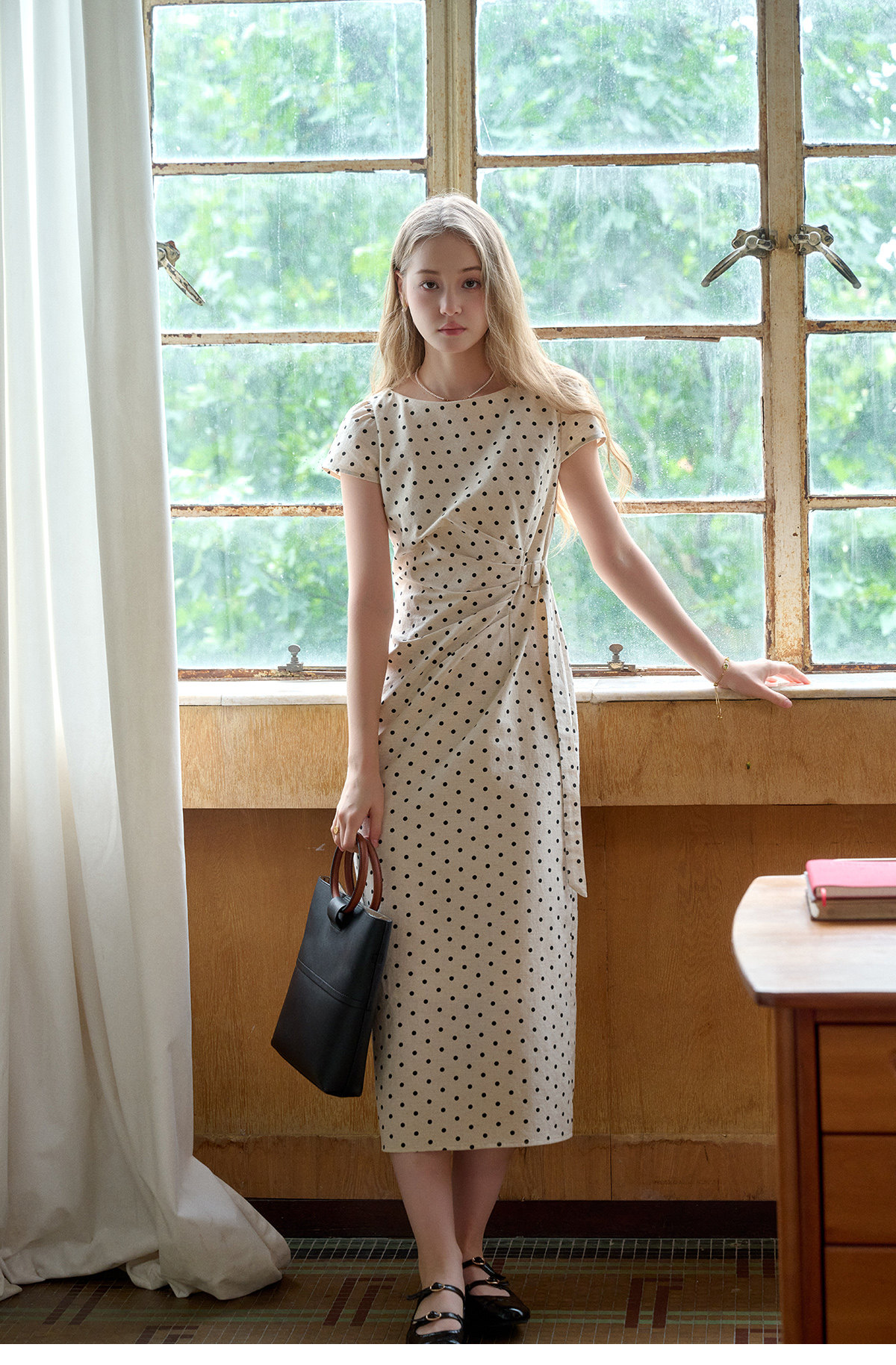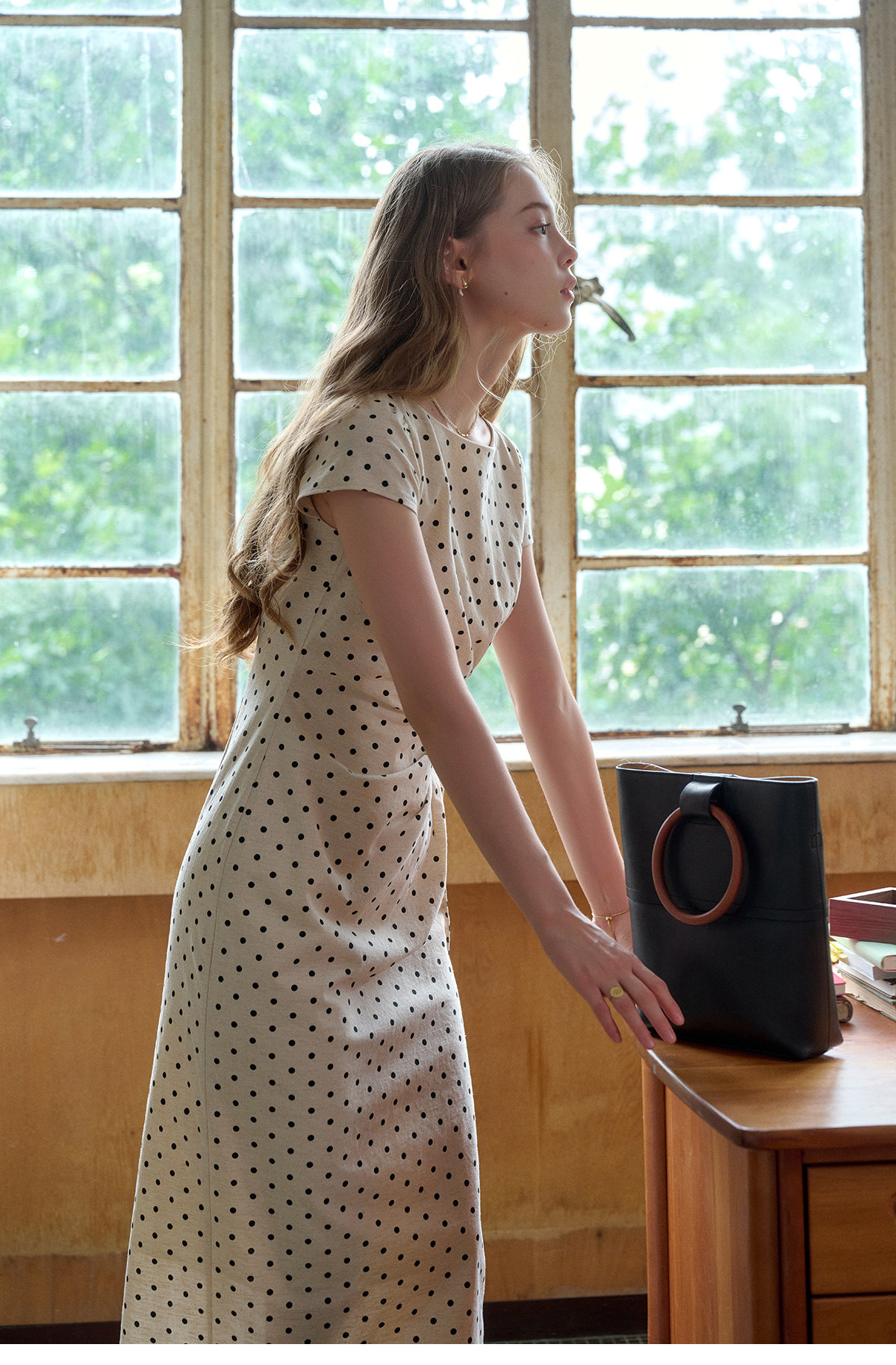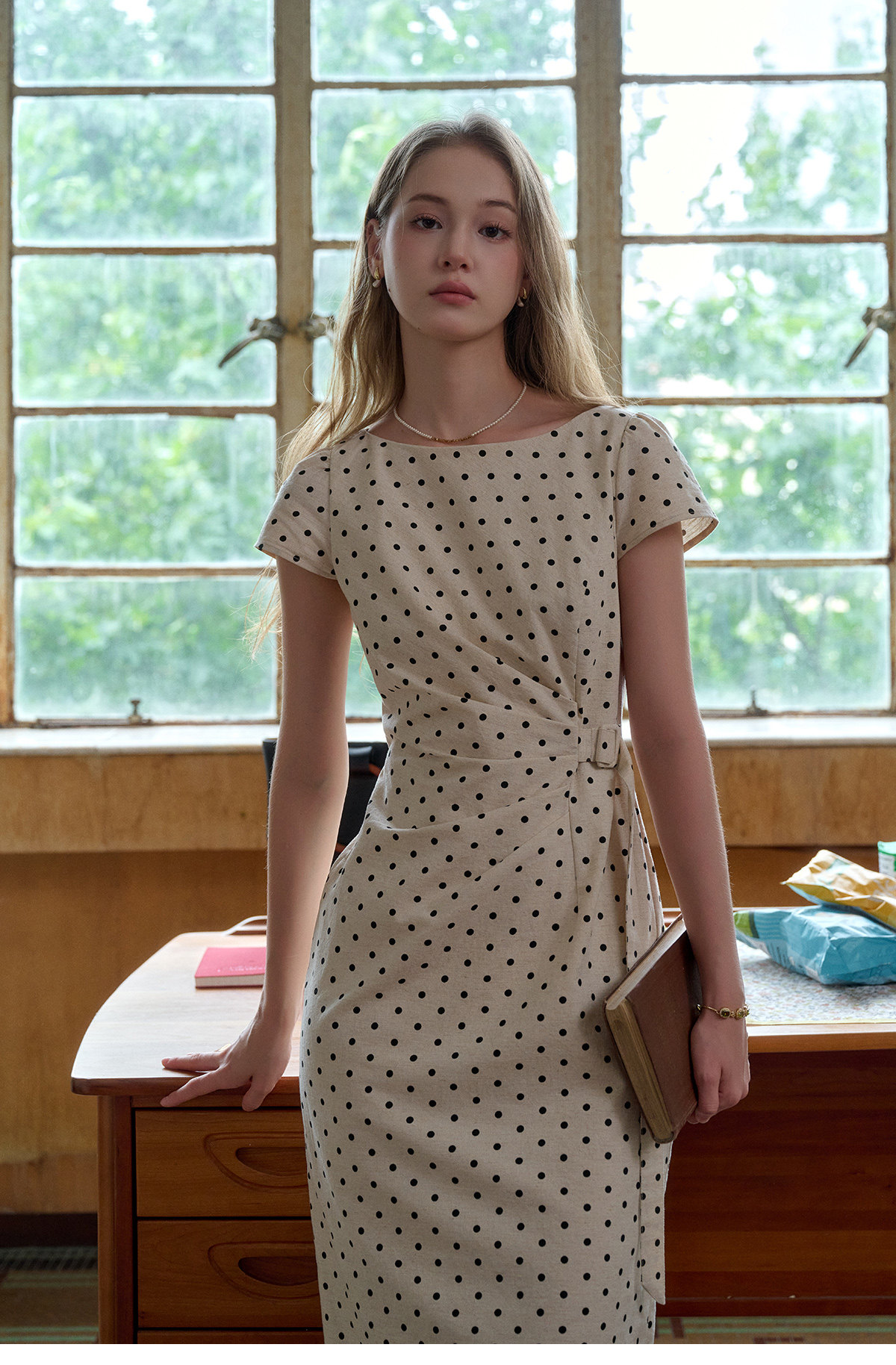 SimpleRetro白露清歌 法式简约亚麻不规则收褶可调节条纹连衣裙女