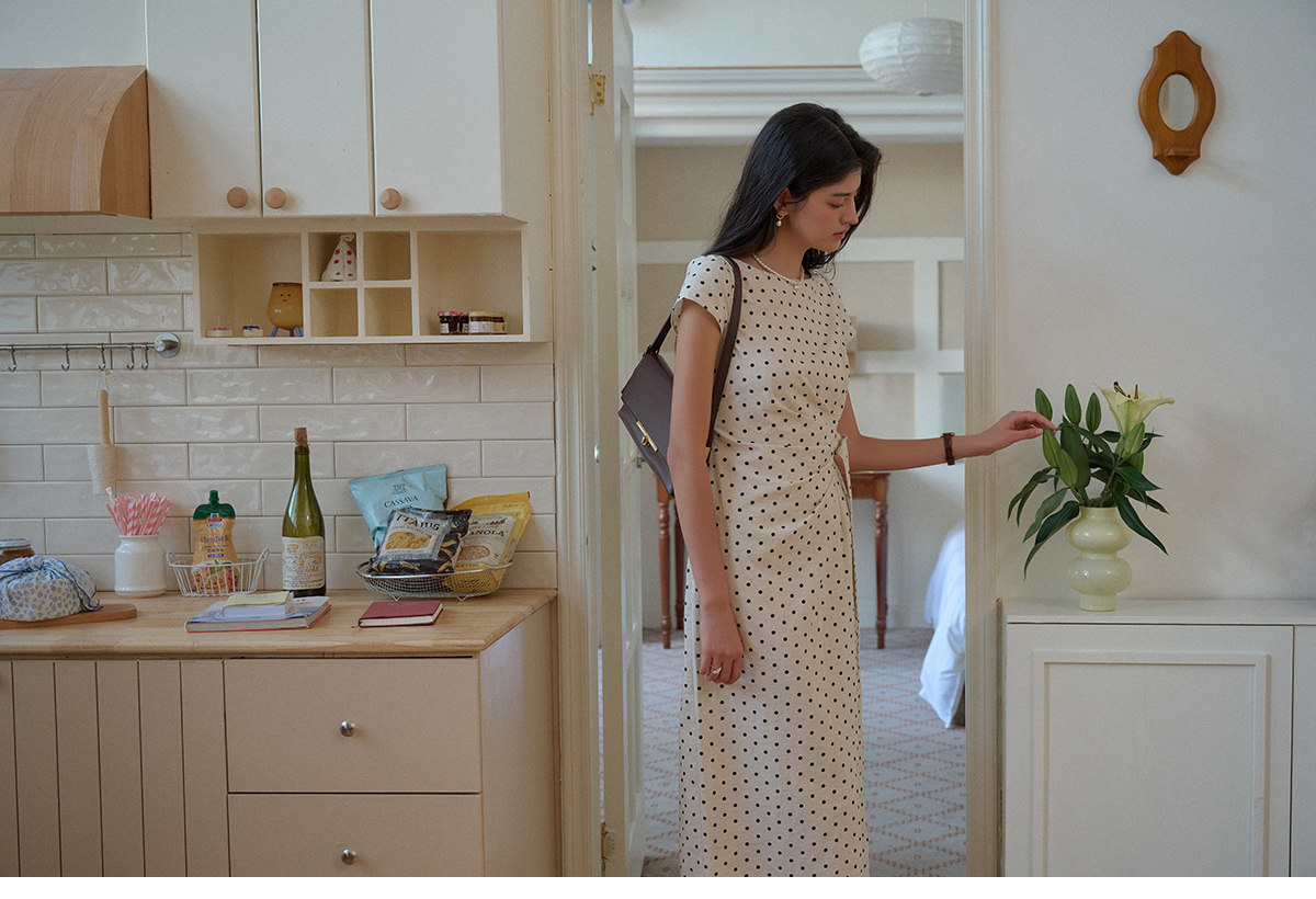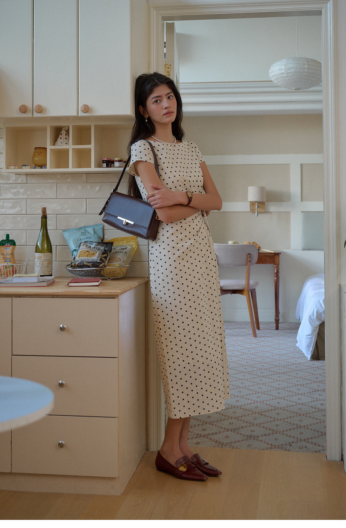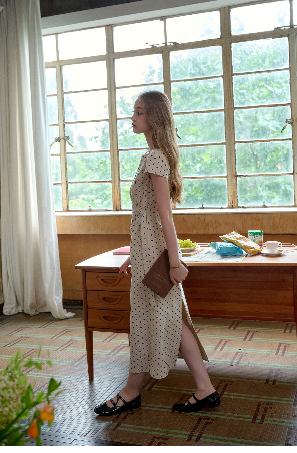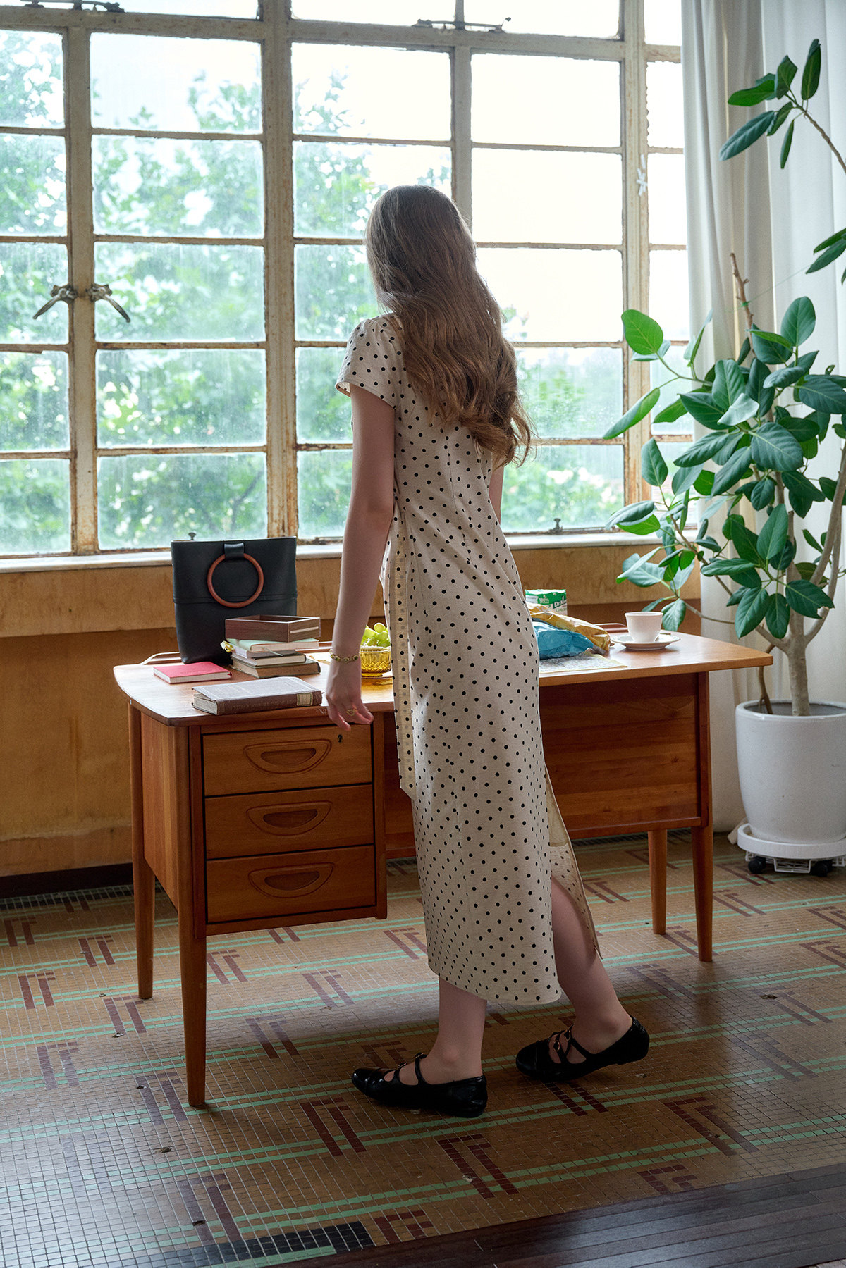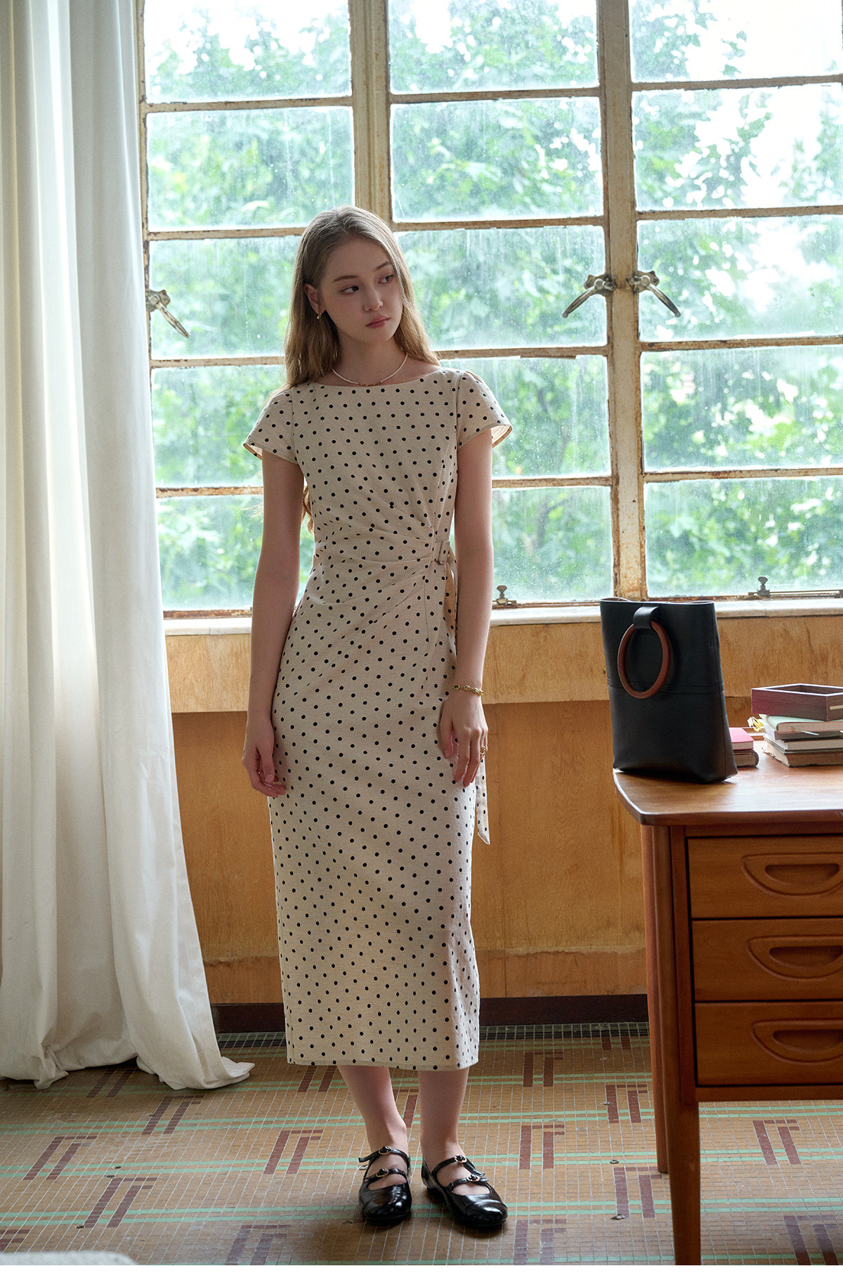 SimpleRetro白露清歌 法式简约亚麻不规则收褶可调节条纹连衣裙女