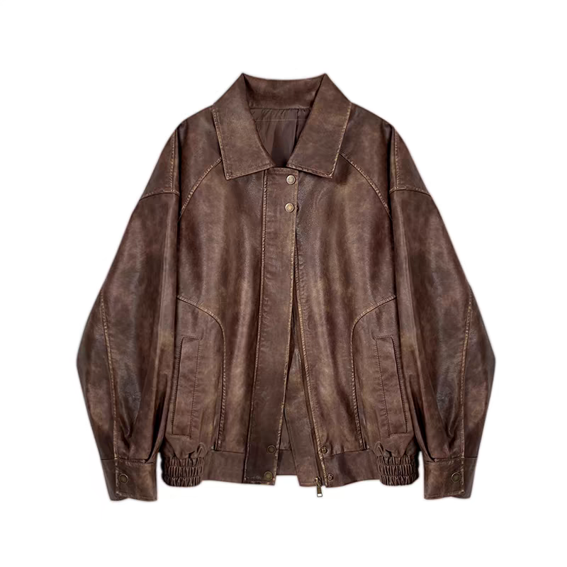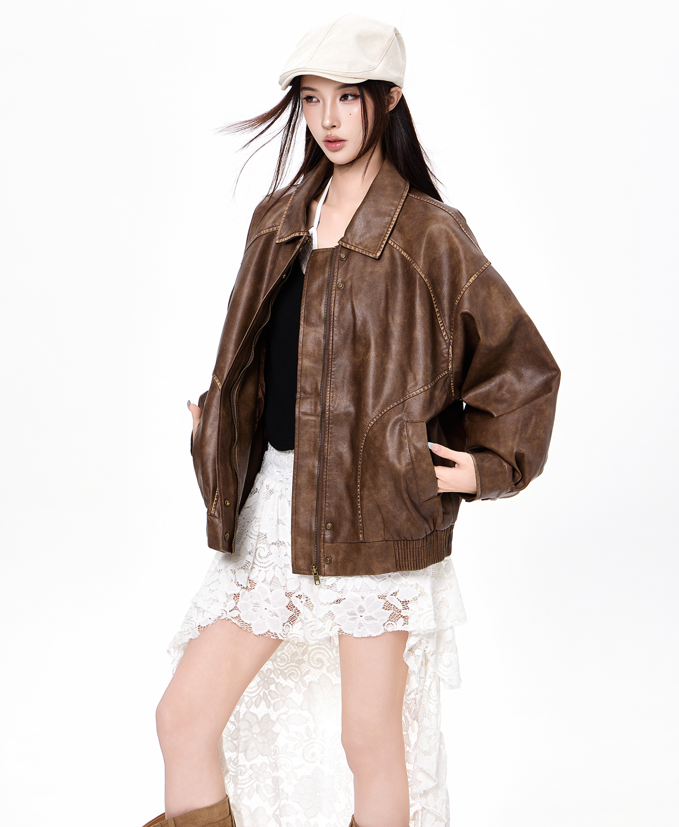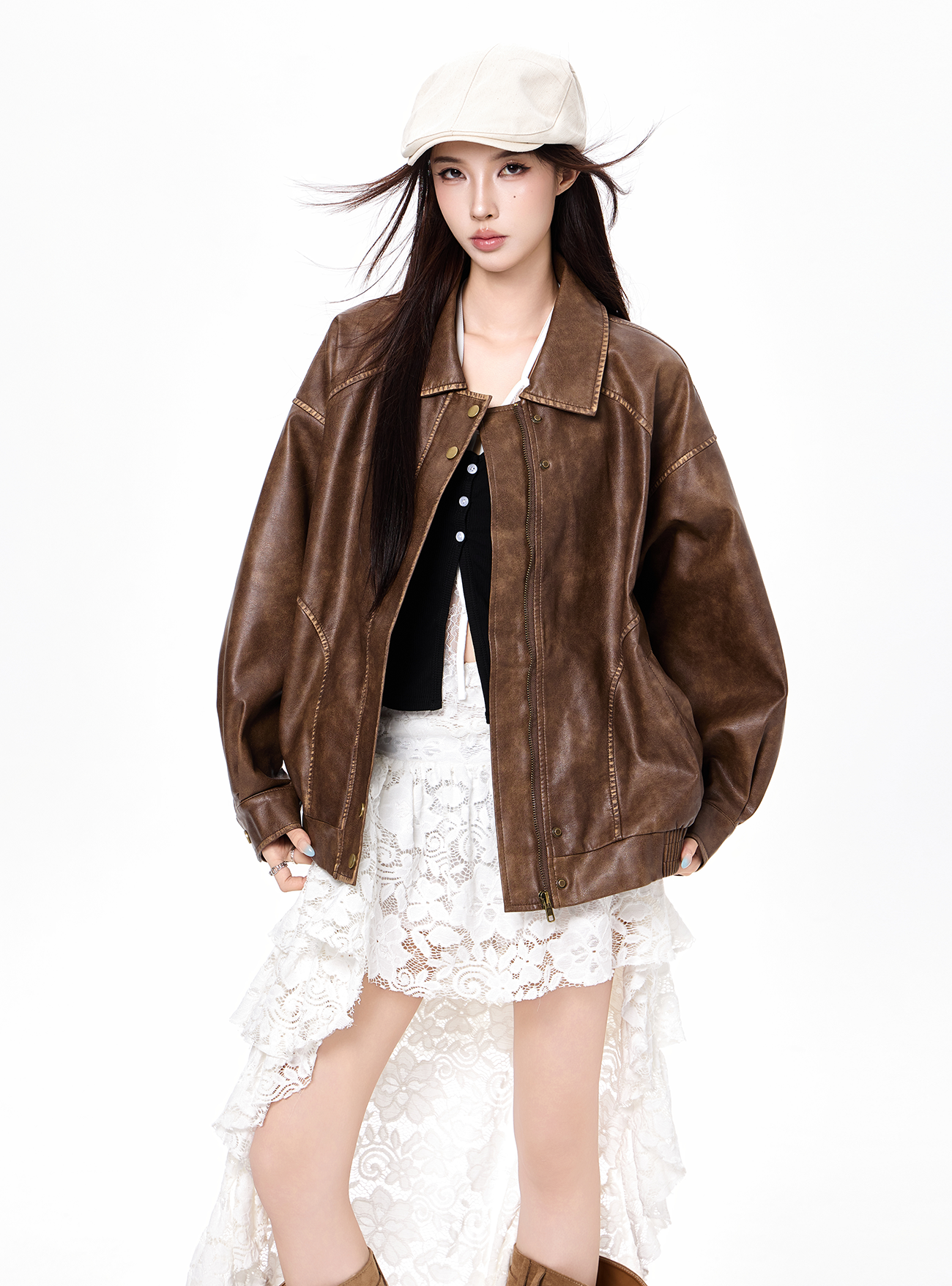 Chaqueta de cuero marrón para mujer Otoño e Invierno 2025 nueva chaqueta de cuero pu americana retro fresca y atrevida Zhong Chuxi mismo estilo