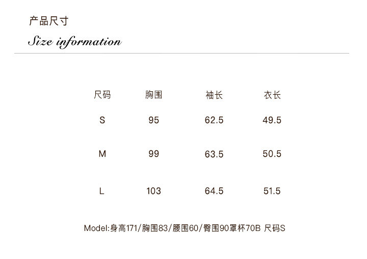 China (cm) 160-165/84-86 165-170 / 88-90 167-172 / 92-96 168-173 / 98-102 170-176 / 106-110