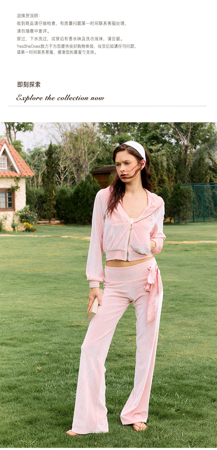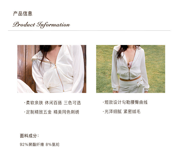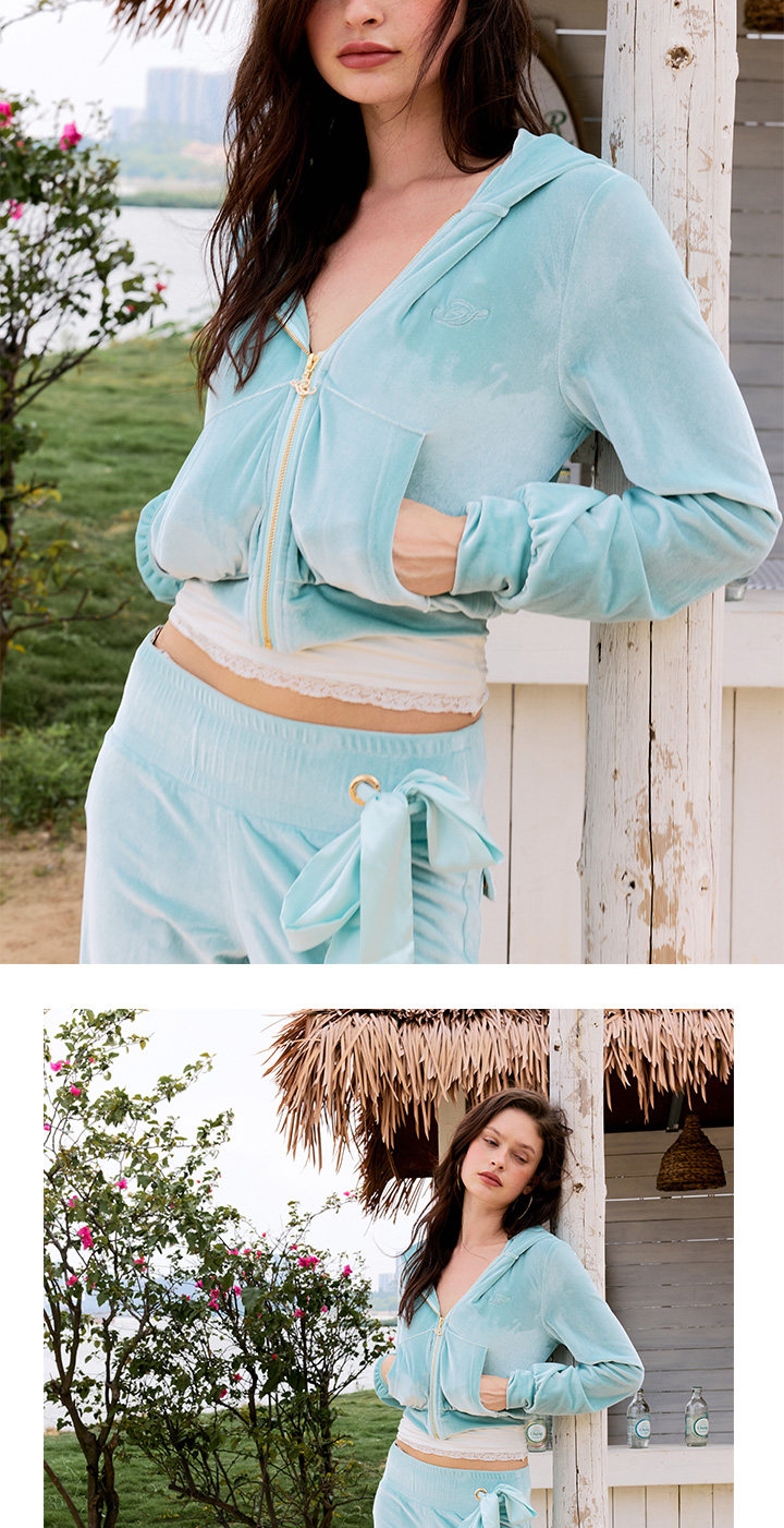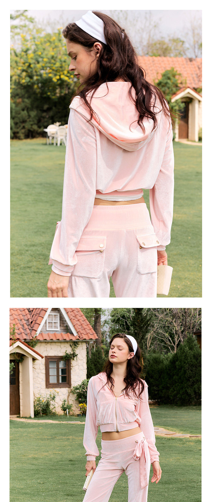 Yesshedoes Three-Color Velvet Embroidered Zipper Hooded Casual Sports Suit Short Jacket Cardigan