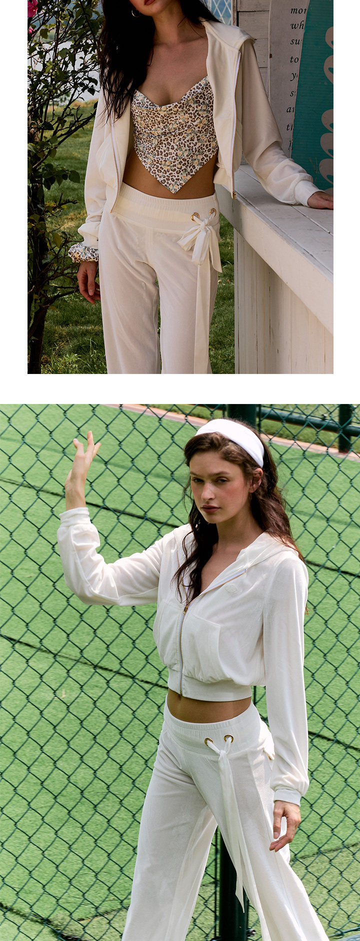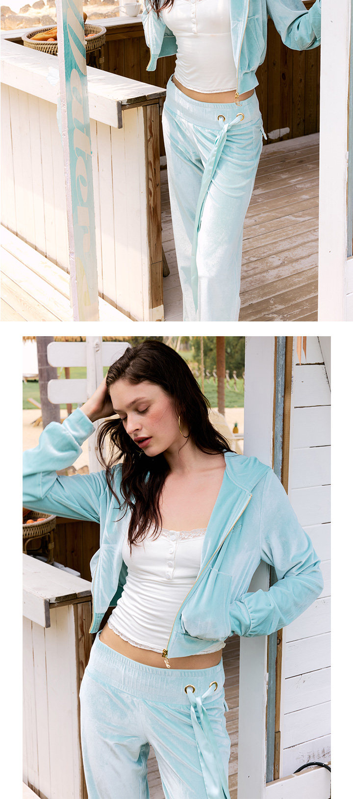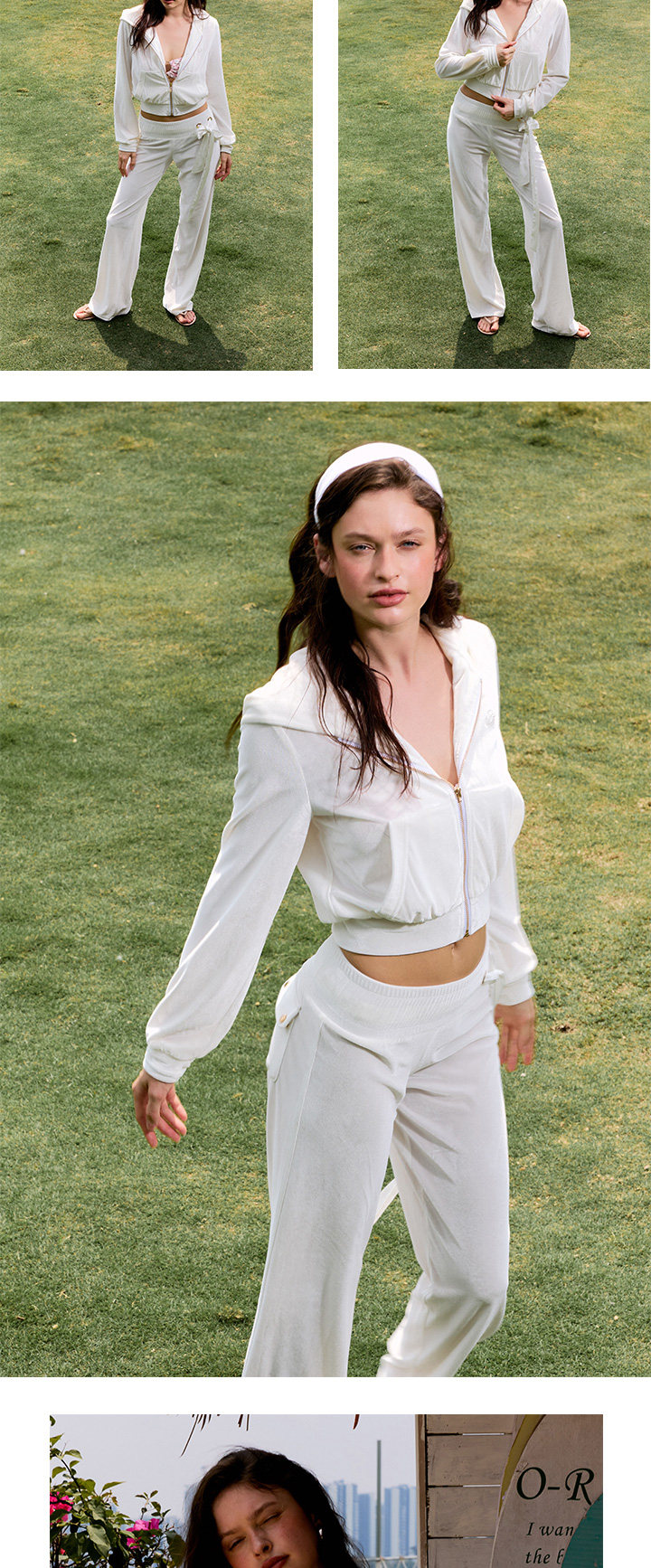 Yesshedoes Three-Color Velvet Embroidered Zipper Hooded Casual Sports Suit Short Jacket Cardigan
