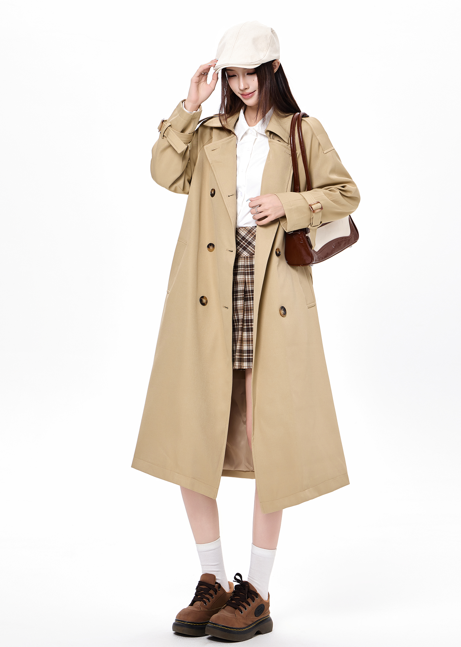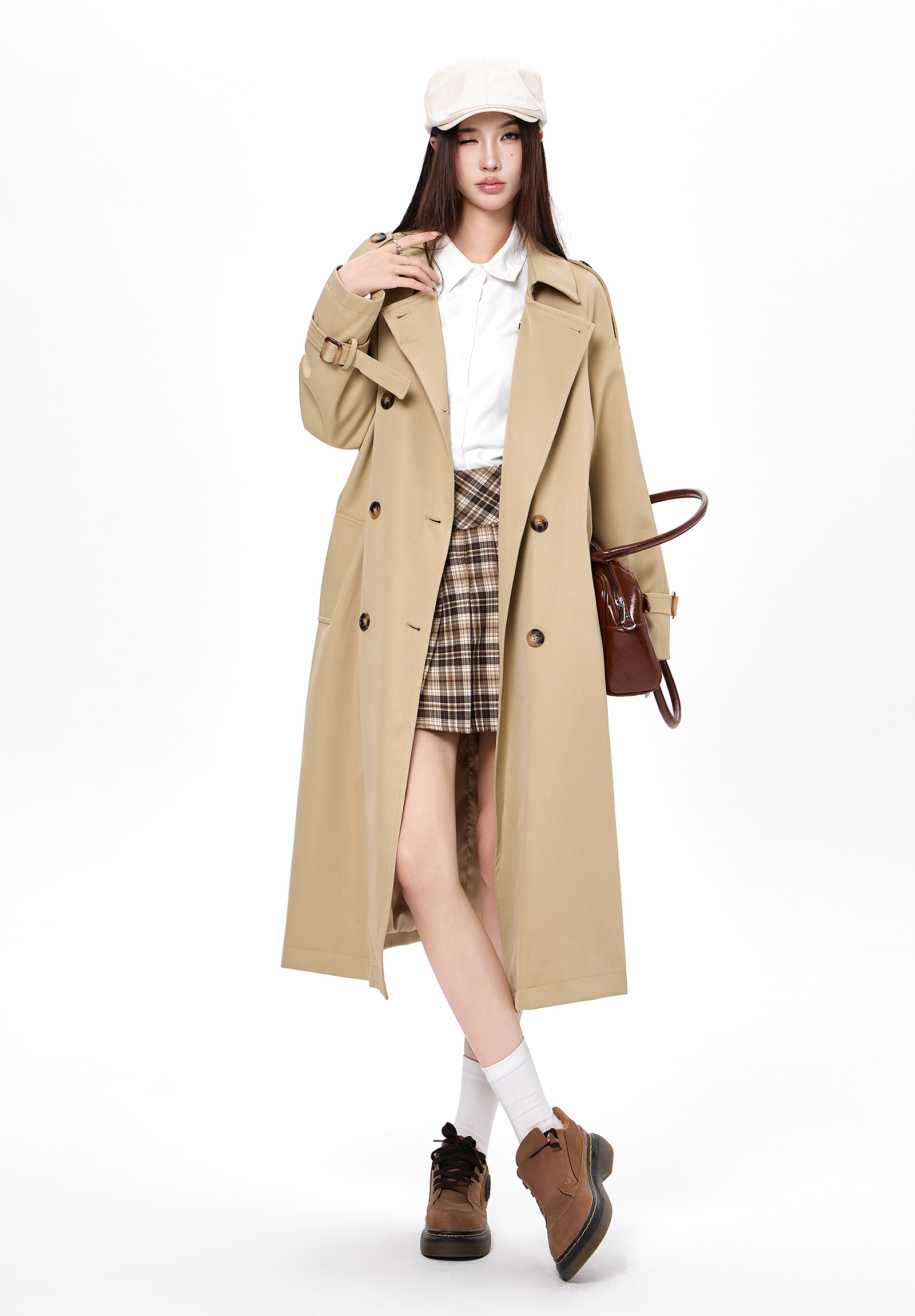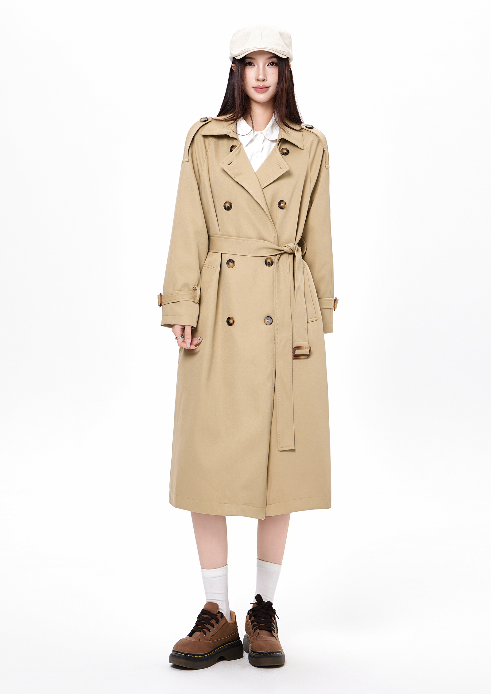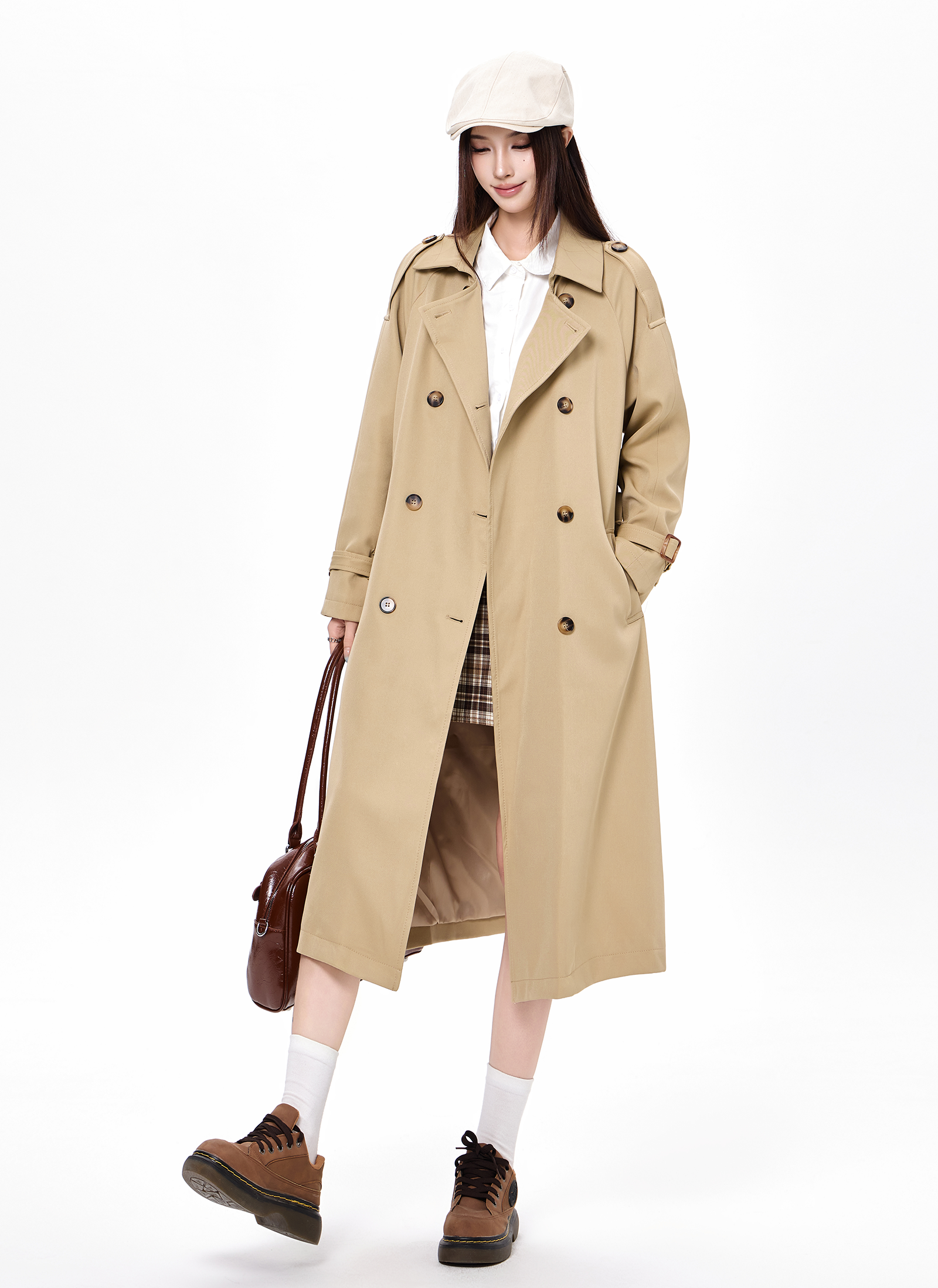 2025 new autumn and winter popular Korean khaki windbreaker coat for women preppy style small mid-length coat