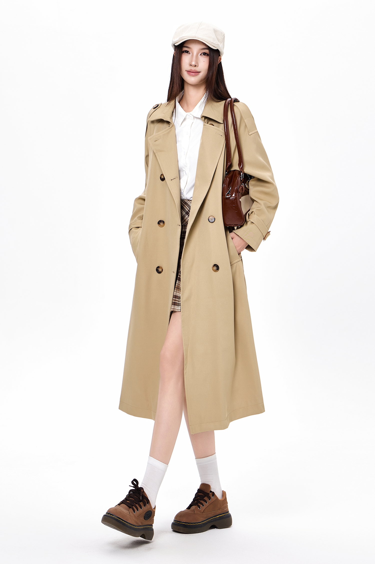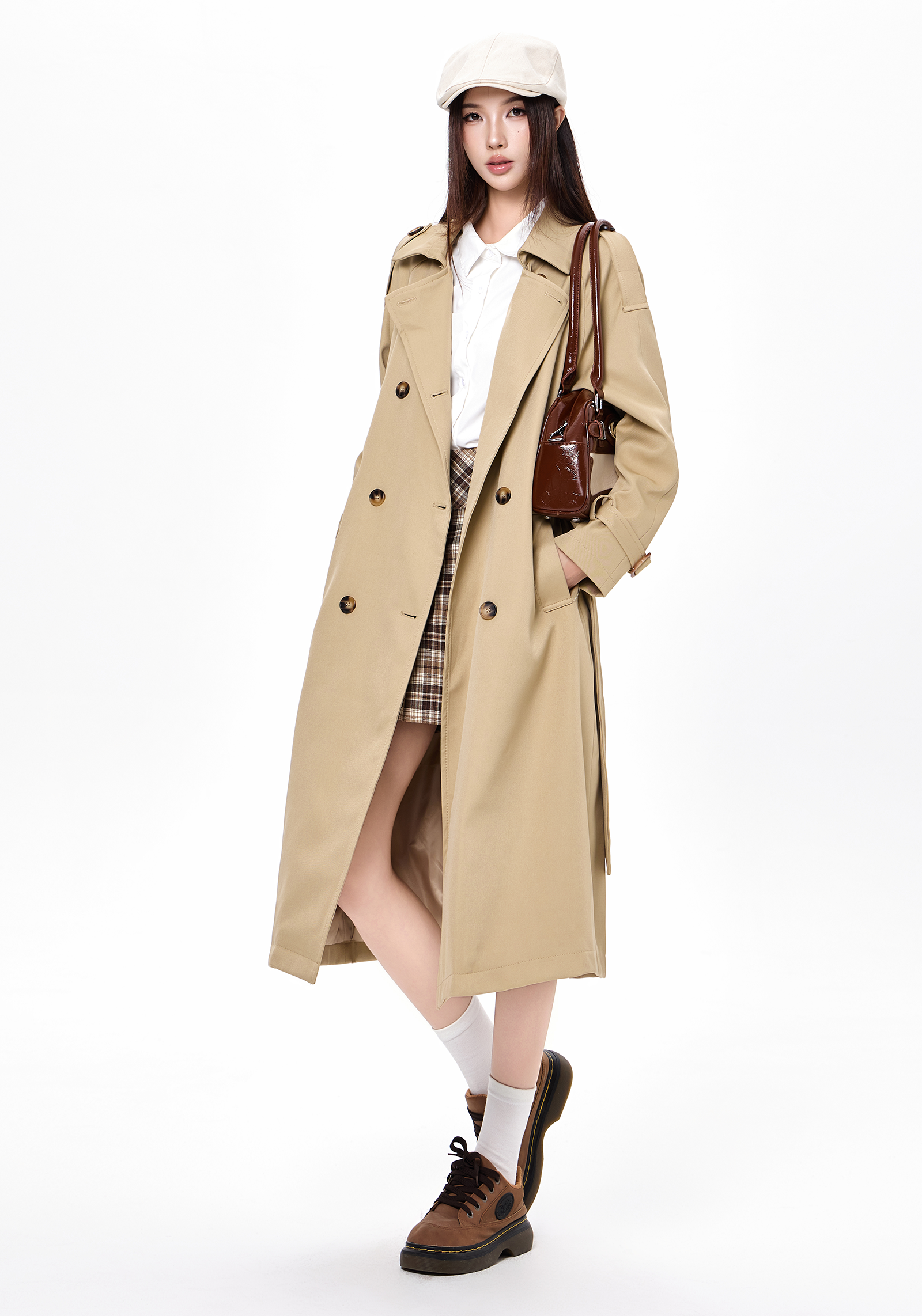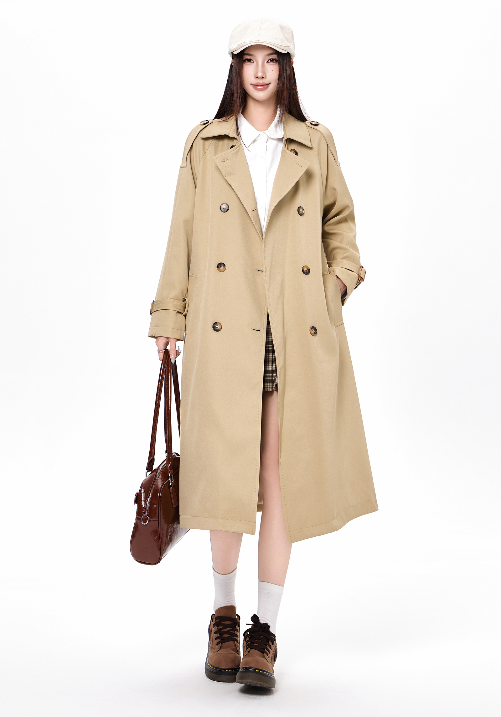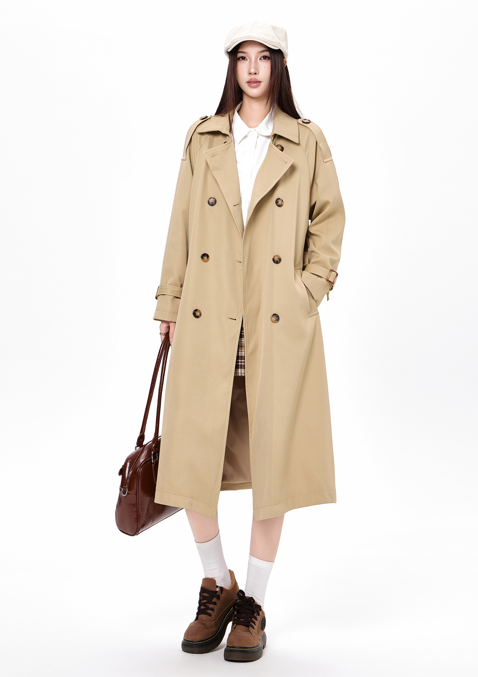 2025 new autumn and winter popular Korean khaki windbreaker coat for women preppy style small mid-length coat
