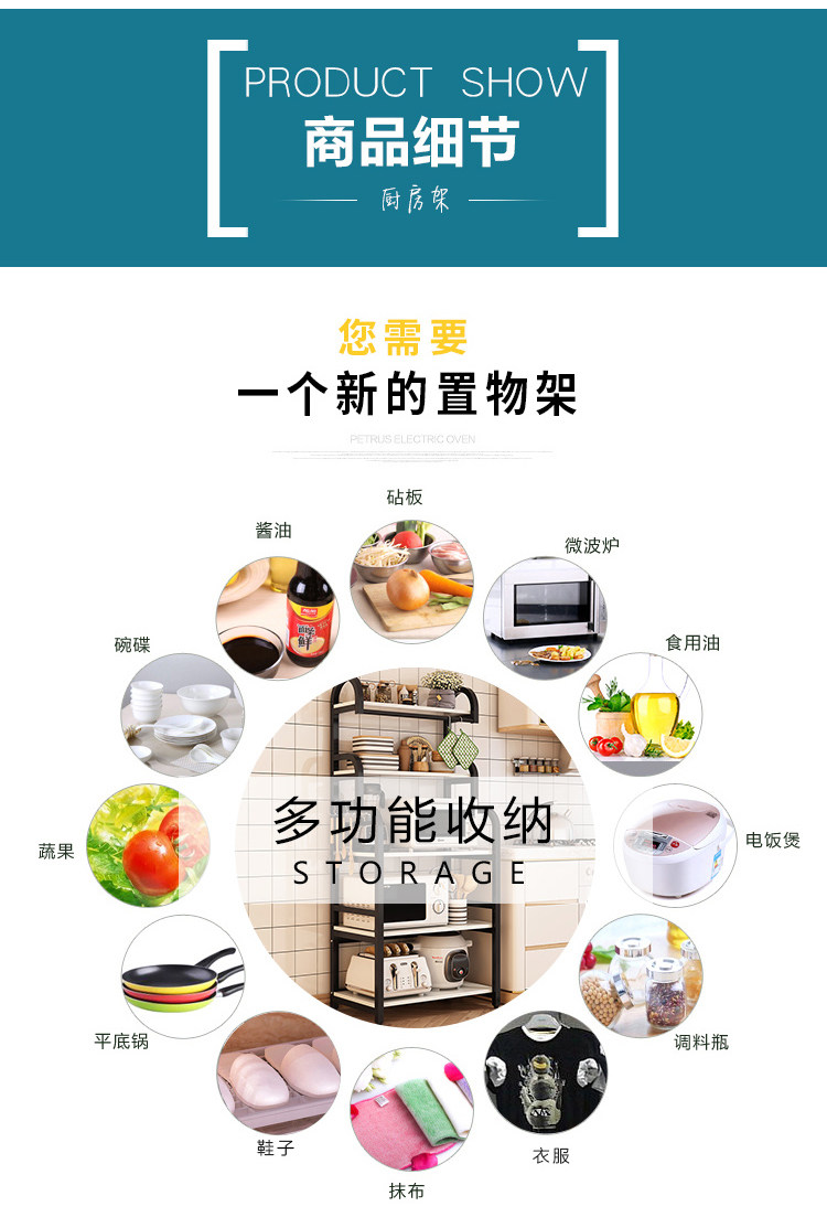 Kitchen Multi-Functional Storage Rack, Dedicated for Appliances Like Microwave Ovens and Rice Cookers, Integrated Wall-Mounted Floor-Standing Multi-Layer Cabinet