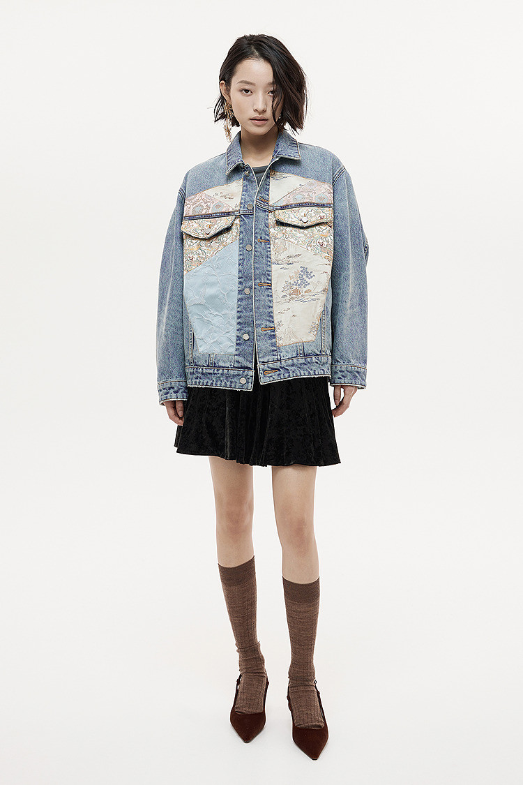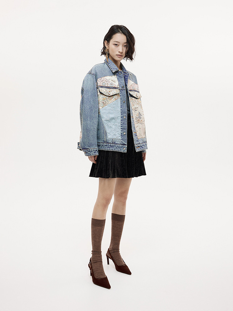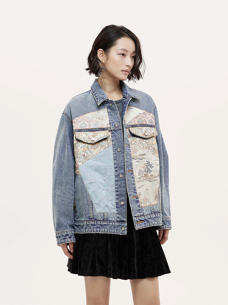 [Hot-Selling Restock] Dazzle Denim Jacket 25 Autumn and Winter New Chinese Style Jacket Women's Top