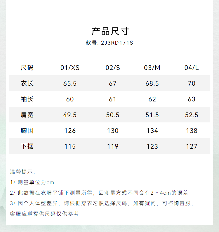 China (cm) 160-165/84-86 165-170 / 88-90 167-172 / 92-96 168-173 / 98-102 170-176 / 106-110