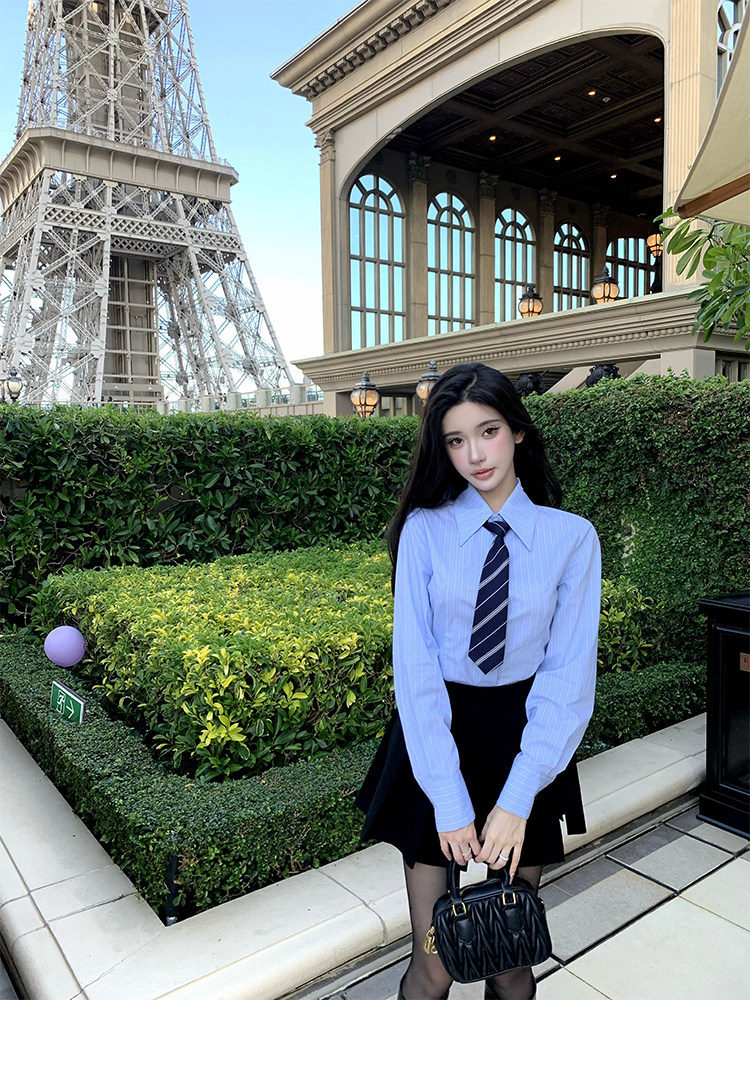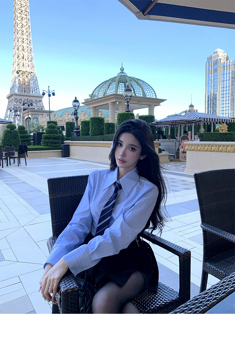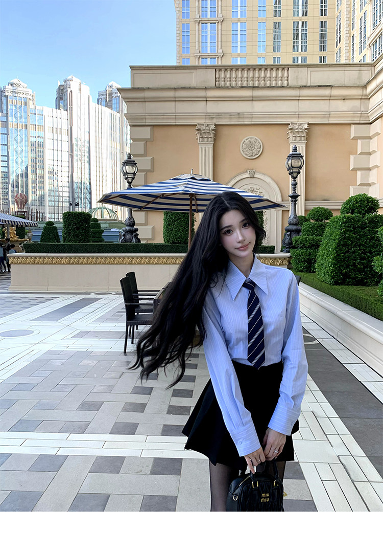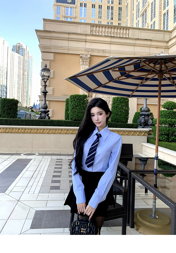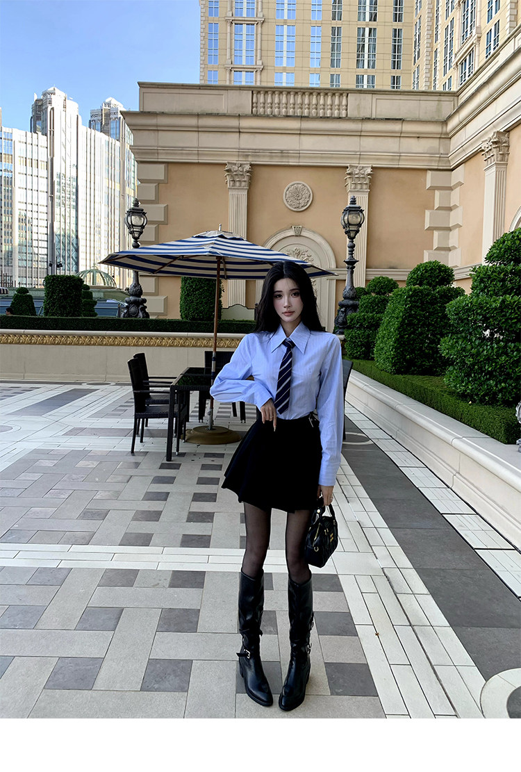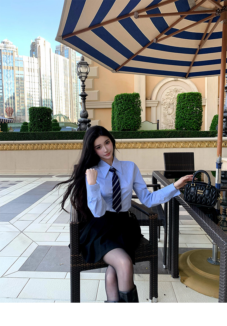 Barb Chill Preppy Style Suit for Women Early Autumn High-End Blazer Striped Shirt Pencil Skirt Three-Piece Set
