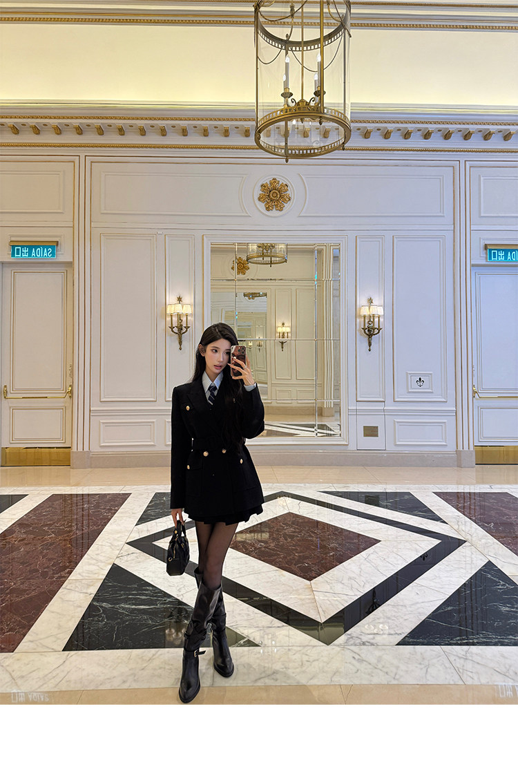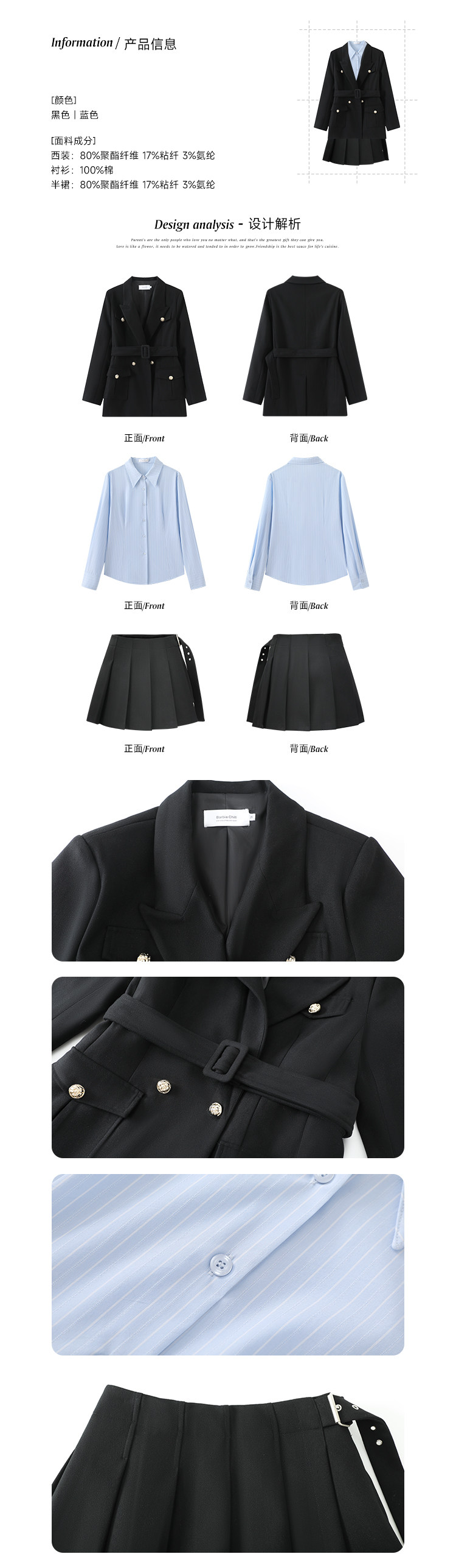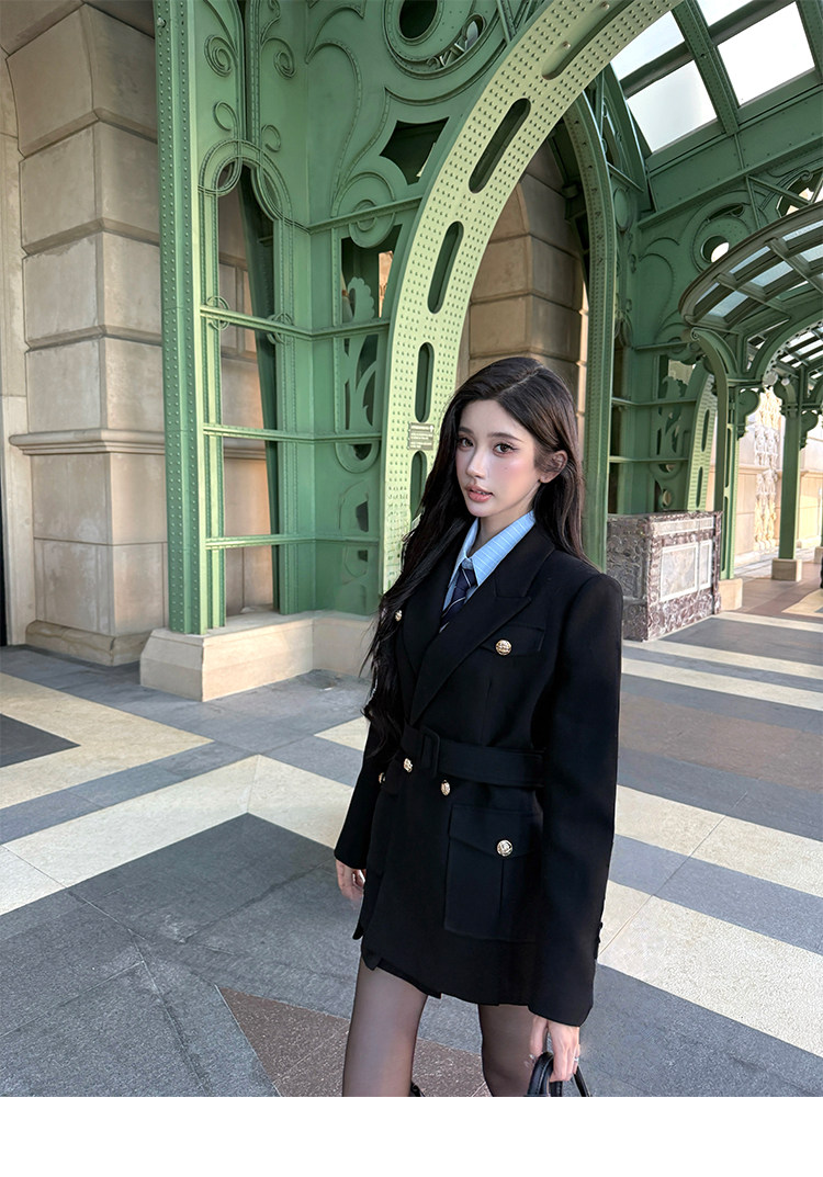 Color Classification Black Jacket,Blue Stripes,Black Skirt,Black Coat,Blue Stripes,Black Skirt