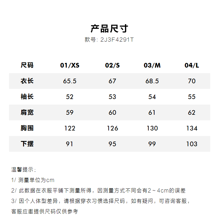 Size 01/XS,02/S,03/M,04/L