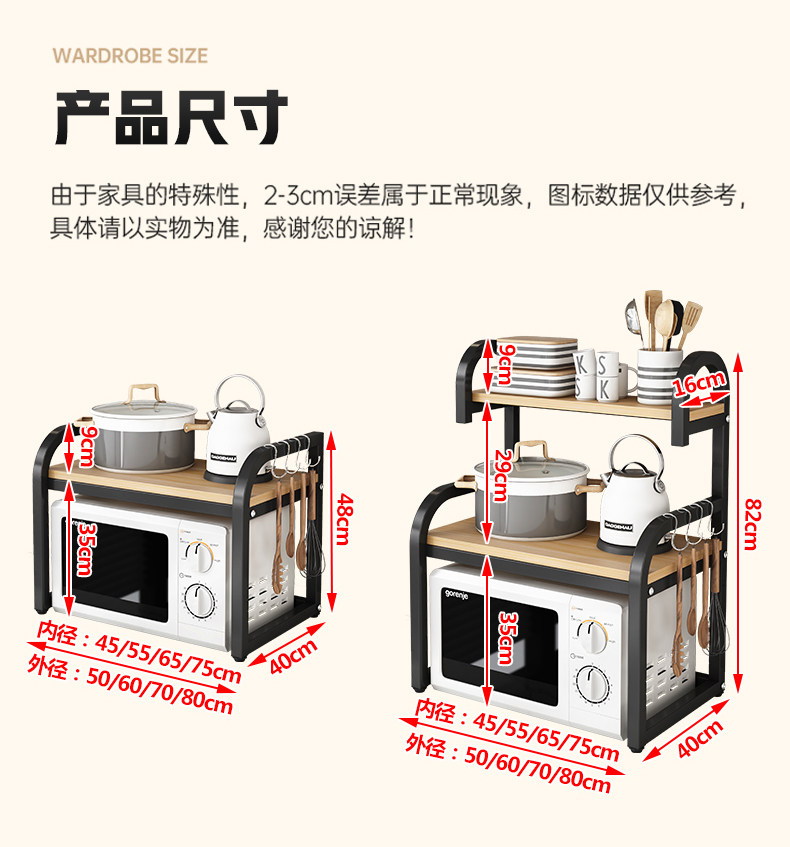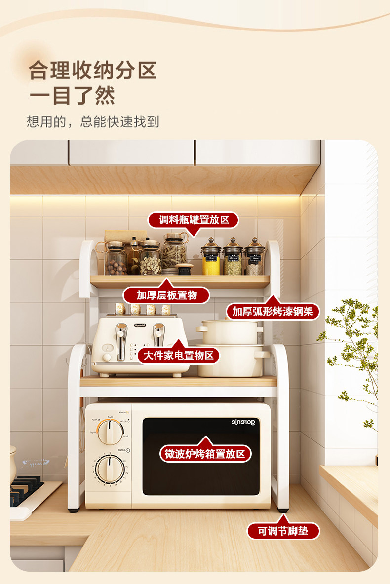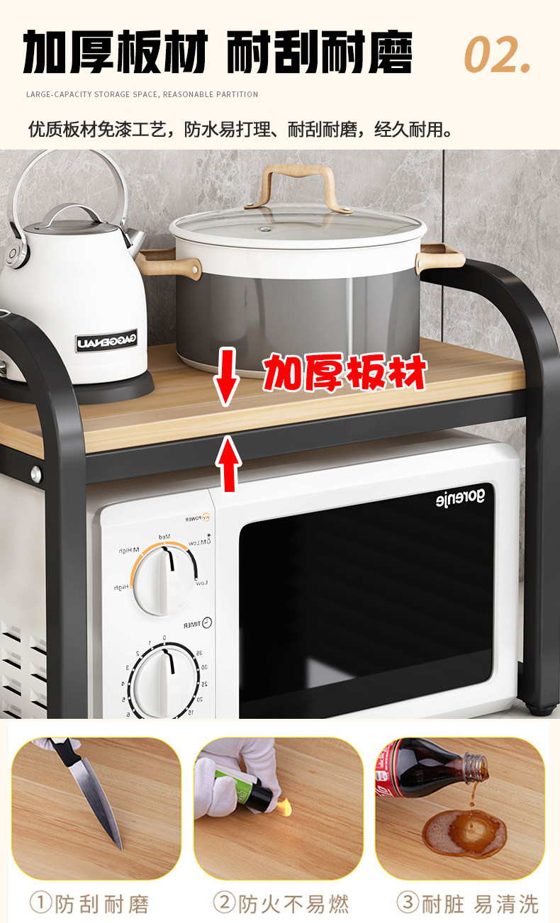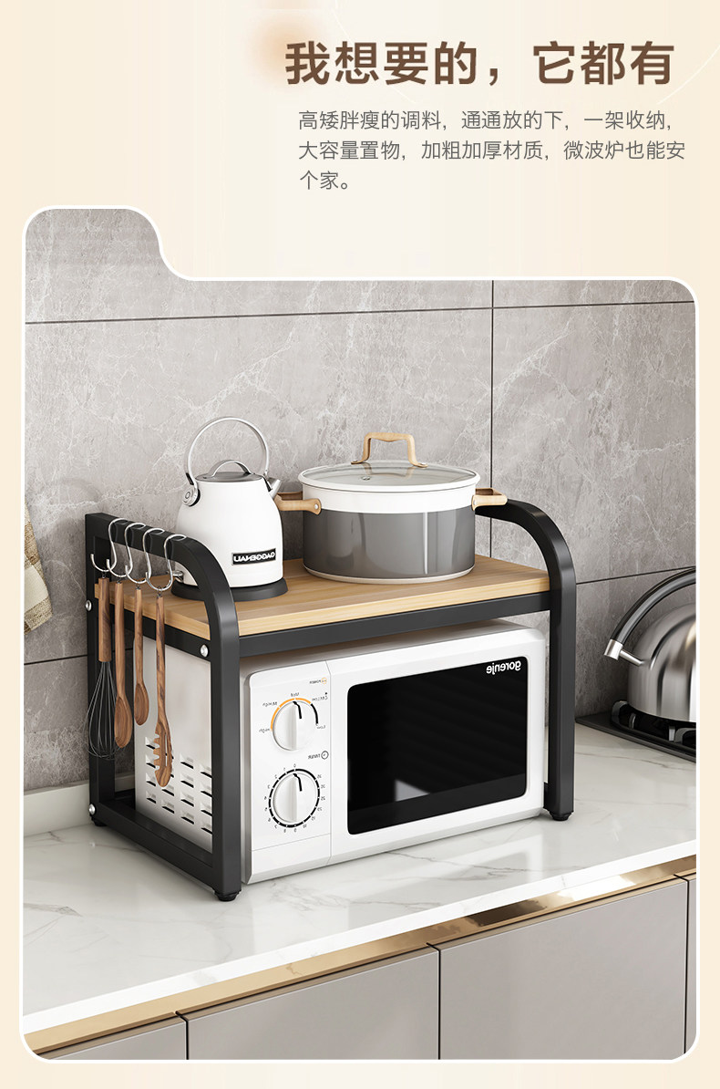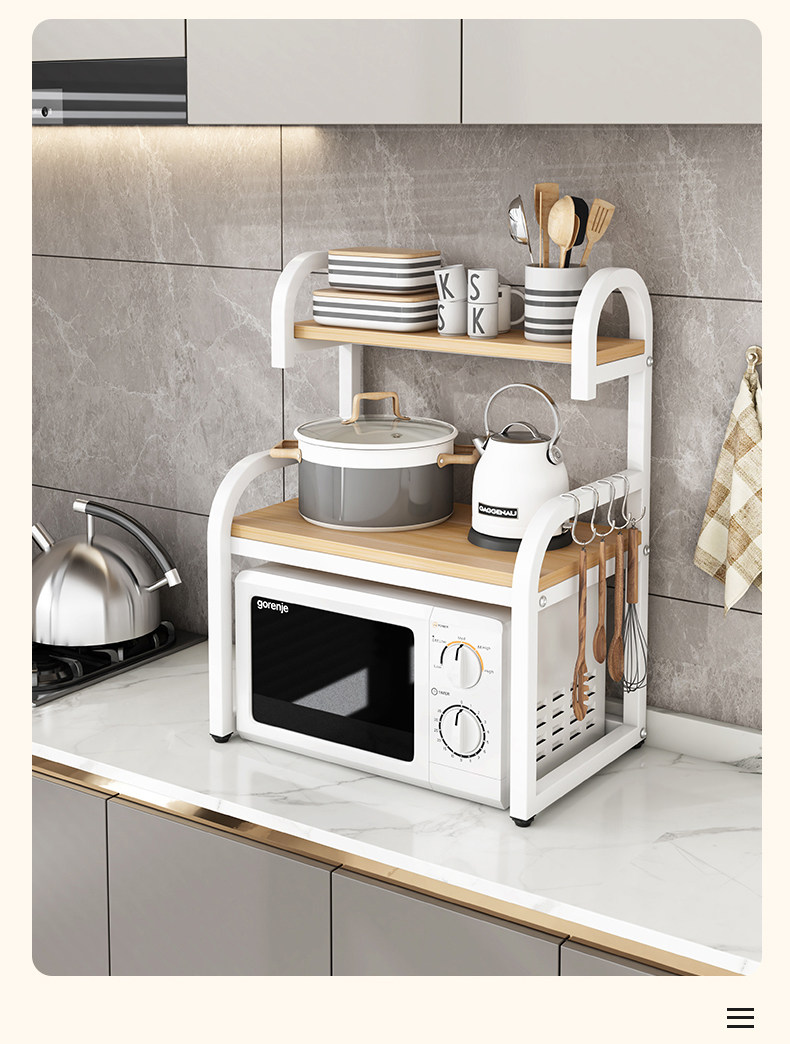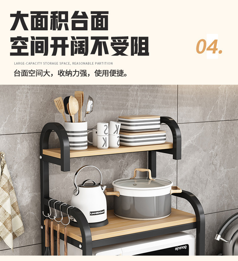 Küchenlagerregal, Arbeitsplatte, multifunktionale Gewürze, dreischichtiges Mikrowellenherd, Reiskocher, zweischichtiges kleines Regal