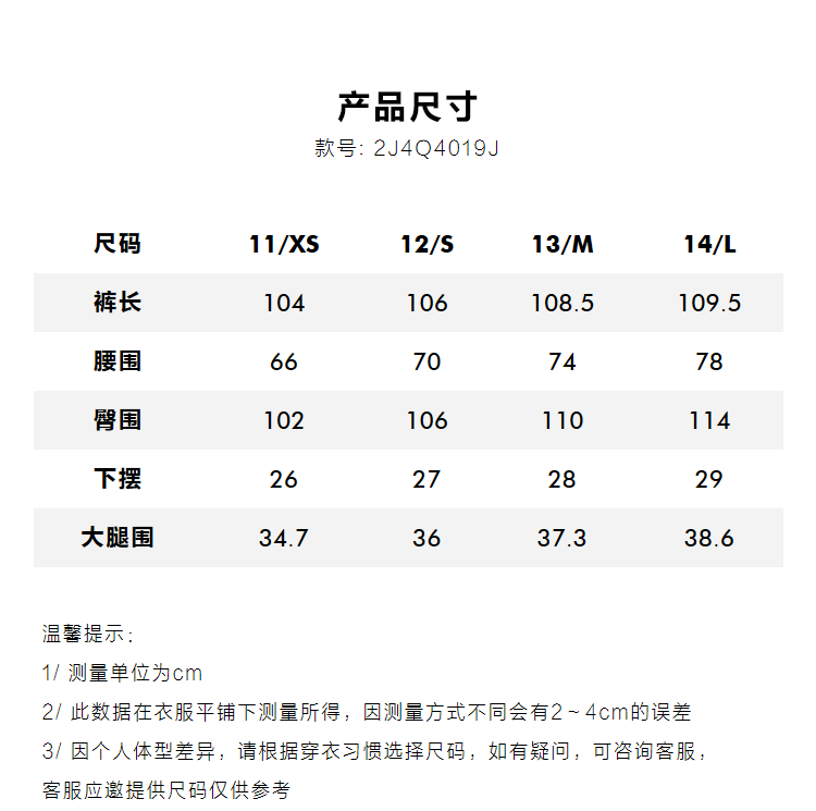 Outseam (cm) 99 cm 101.5 cm 104 cm 106.5 cm 109 cm