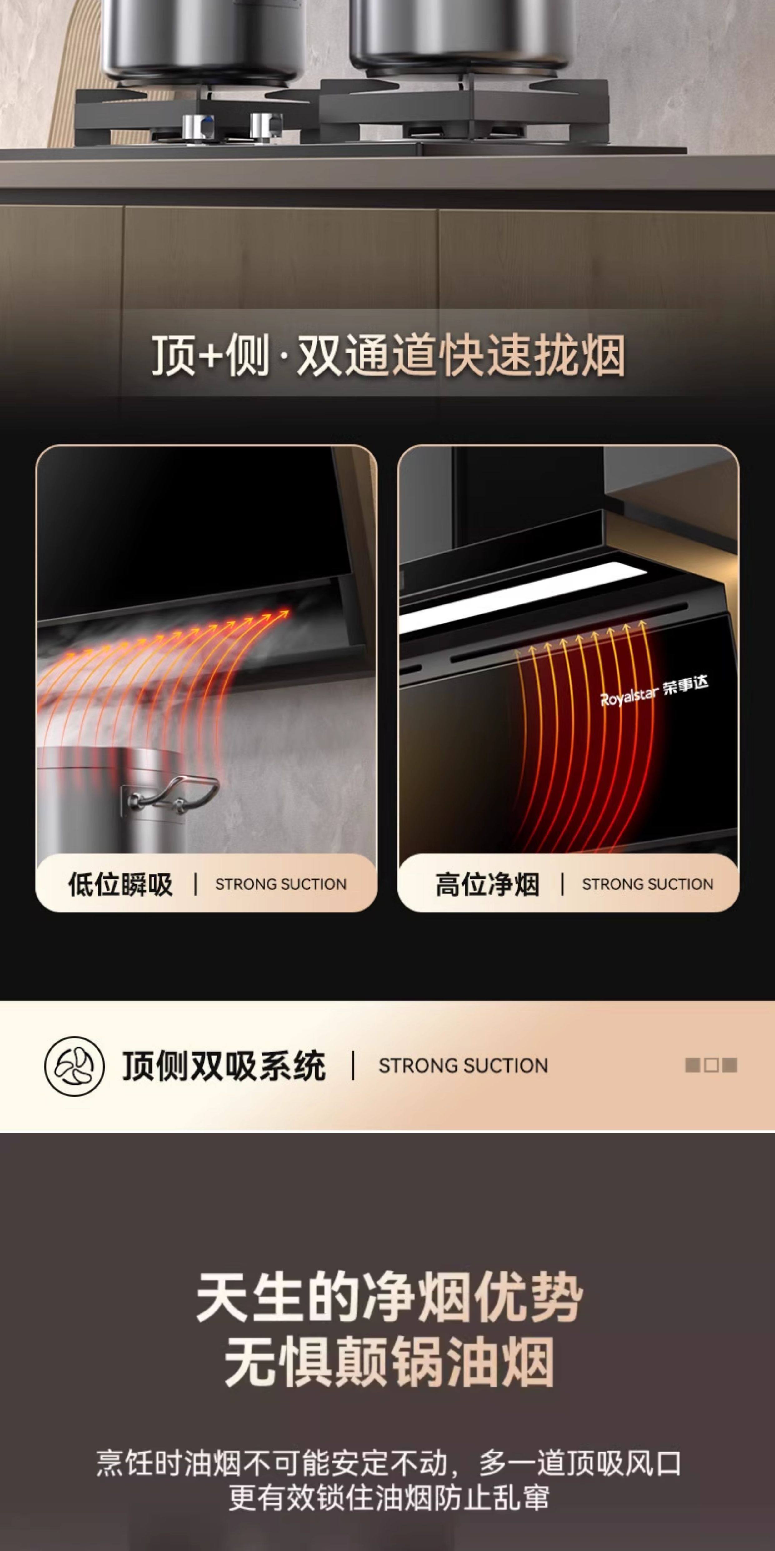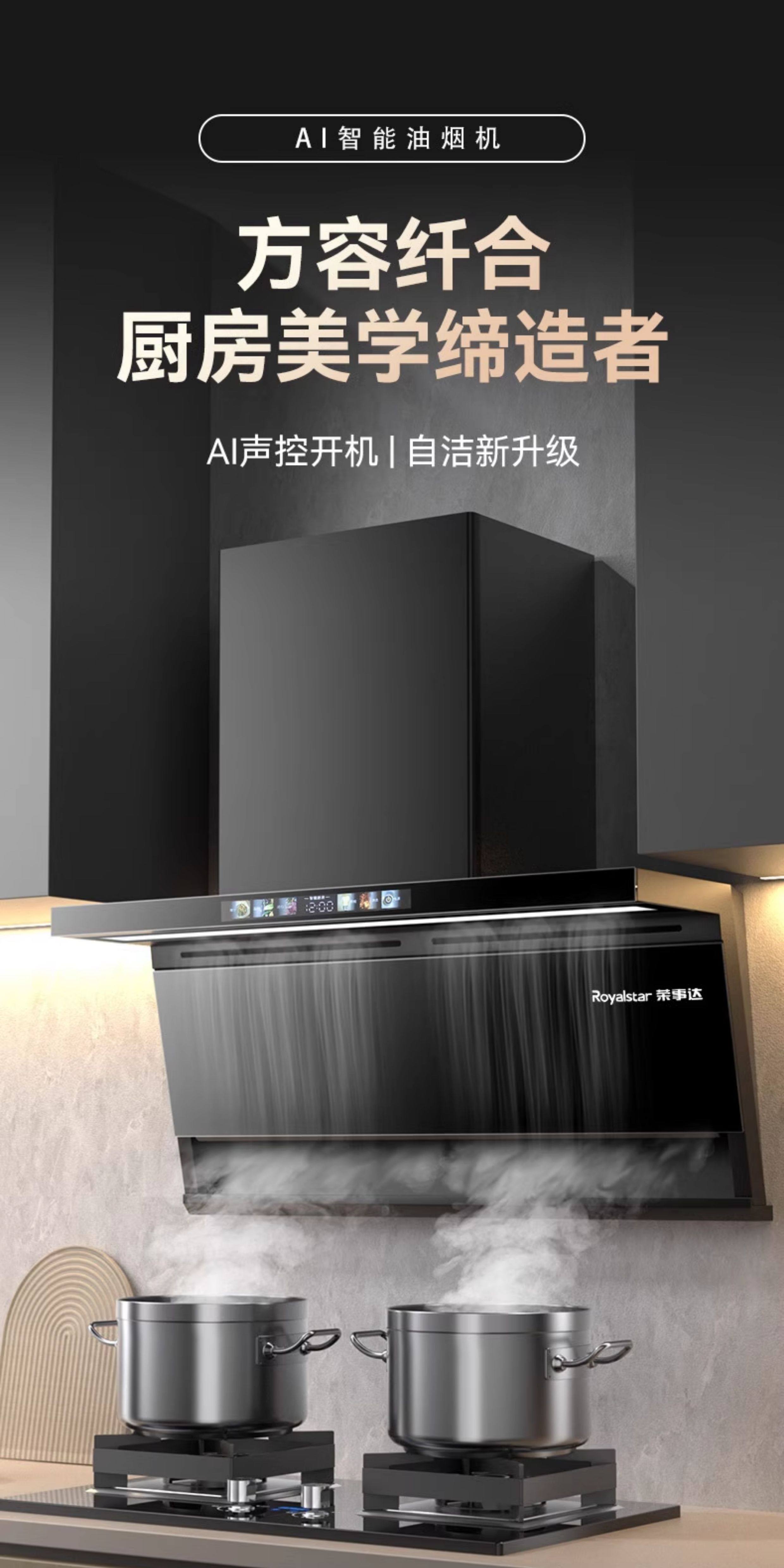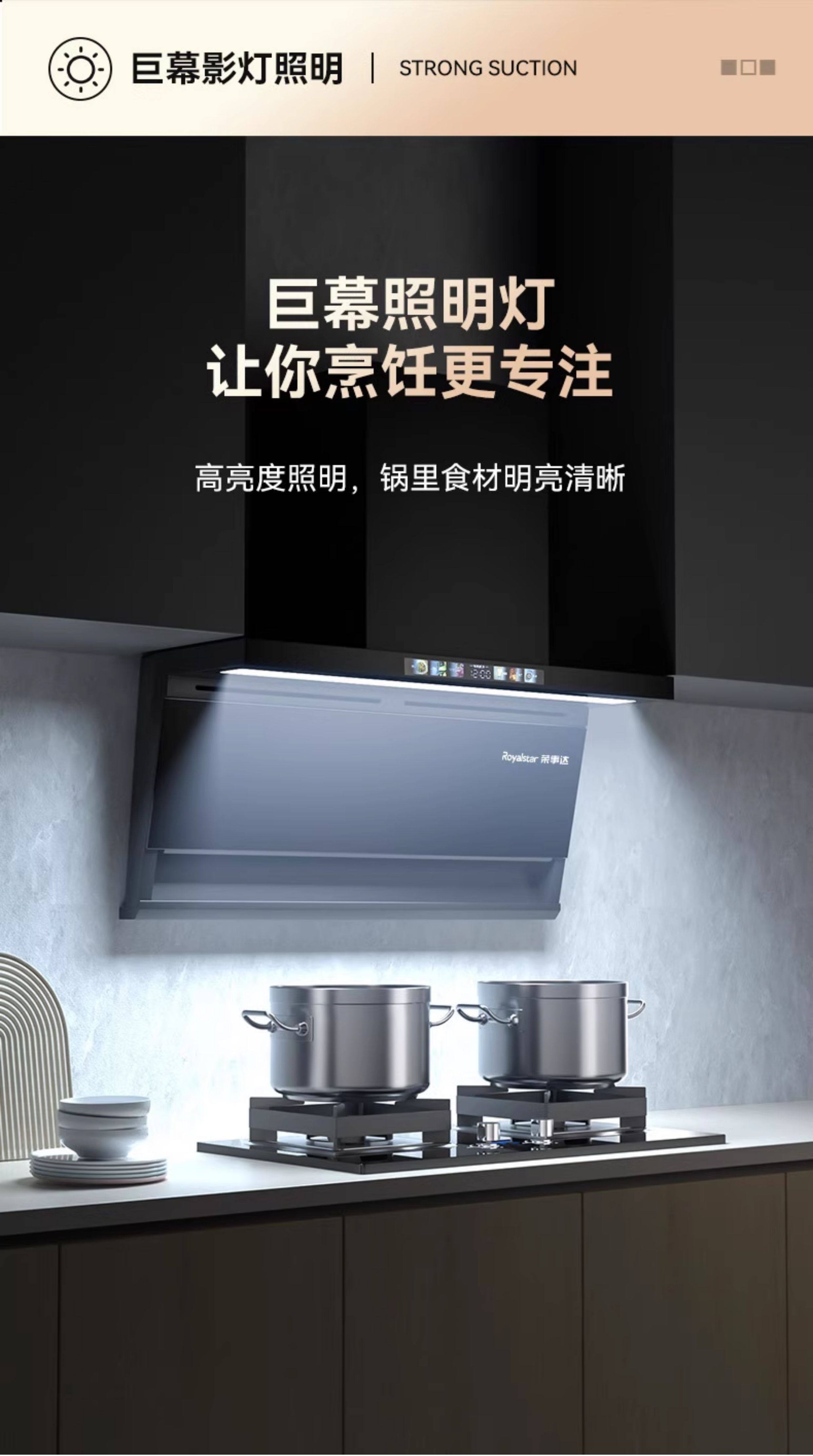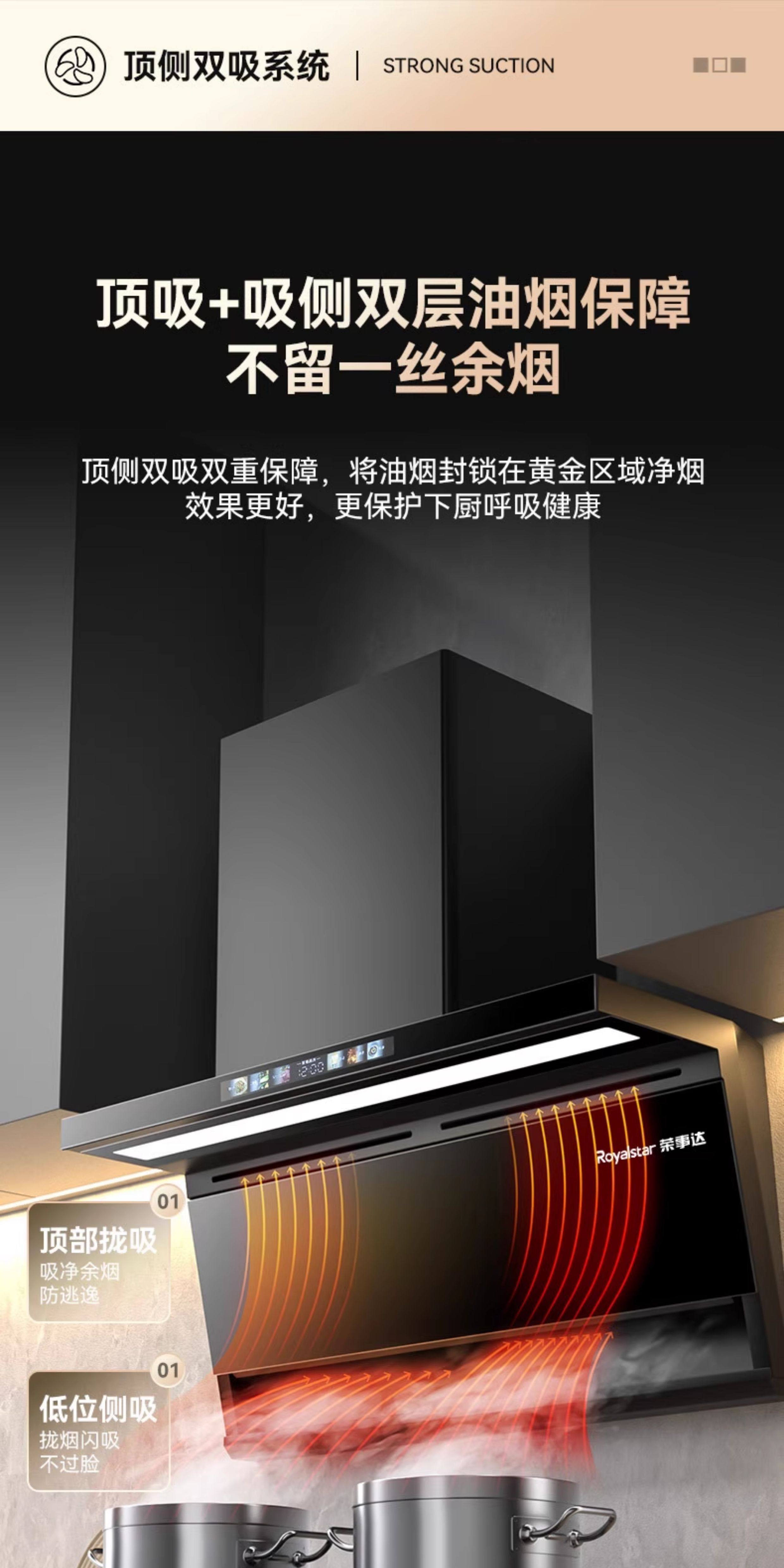 Royalstar Range Hood for Home Kitchen, Large Suction Power, New Model, No Need to Disassemble for Cleaning, Small Wall-Mounted Top-Side Dual Suction Range Hood