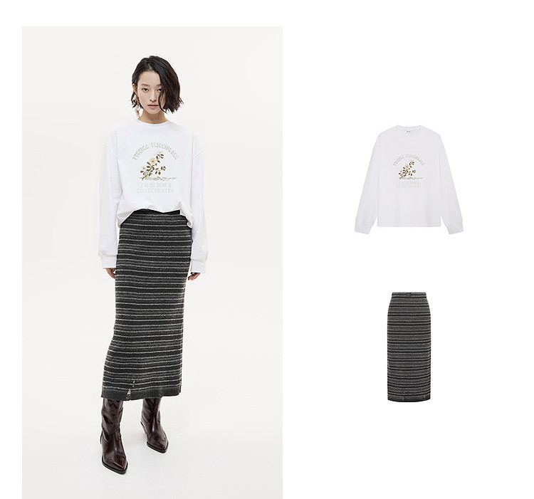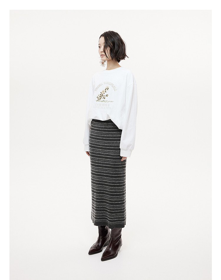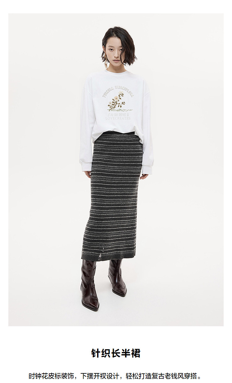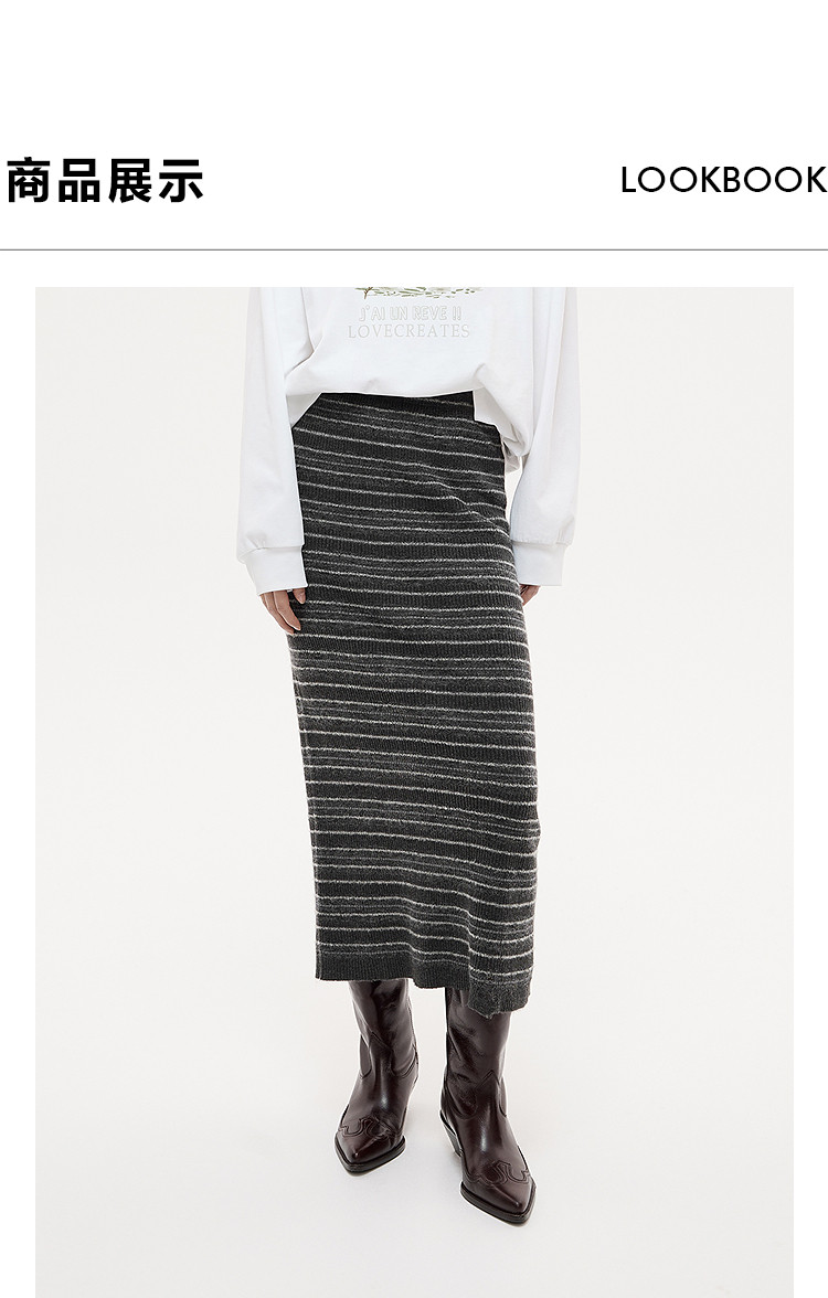 DAZZLE Falda Disu 2025 Otoño e Invierno Falda larga de punto gris medio para mujer