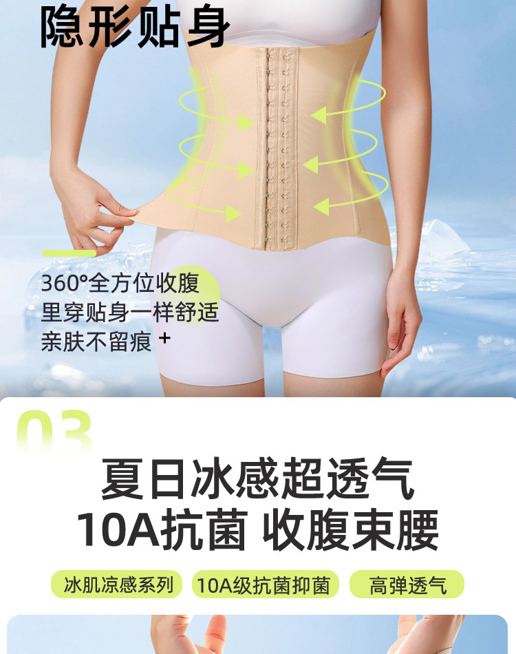 Cinturón de control abdominal Cheongsam para mujer Sensación de hielo sin costuras Verano Controlador de vientre ultrafino Cinturón para adelgazar Modelar la cintura Modelar el cuerpo