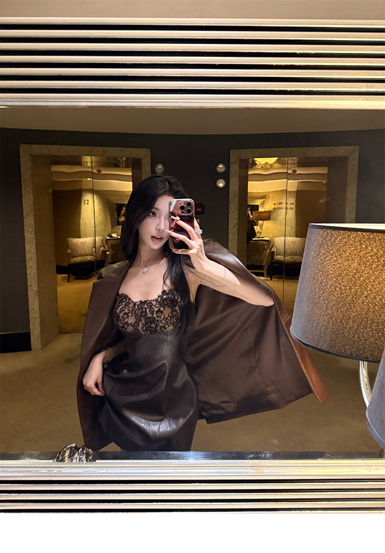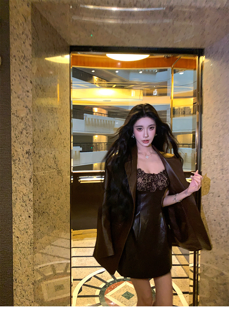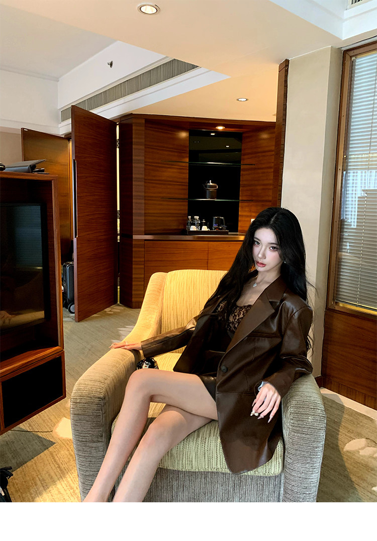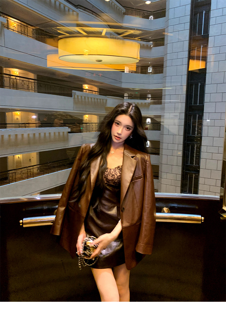 Barb Chill Coffee-Colored Cool and Stylish Leather Jacket for Women, Early Autumn, High-End American Retro Loose Shoulder Jacket