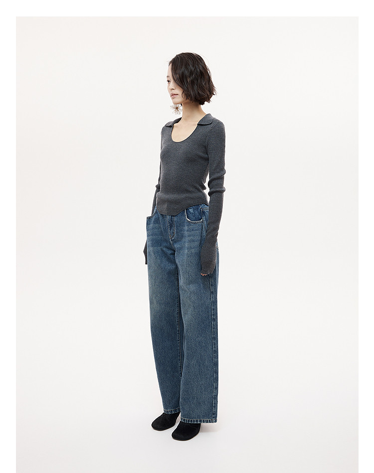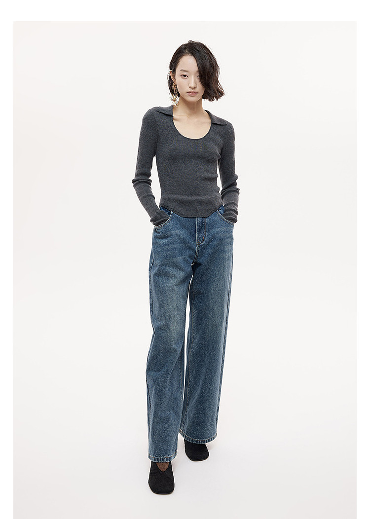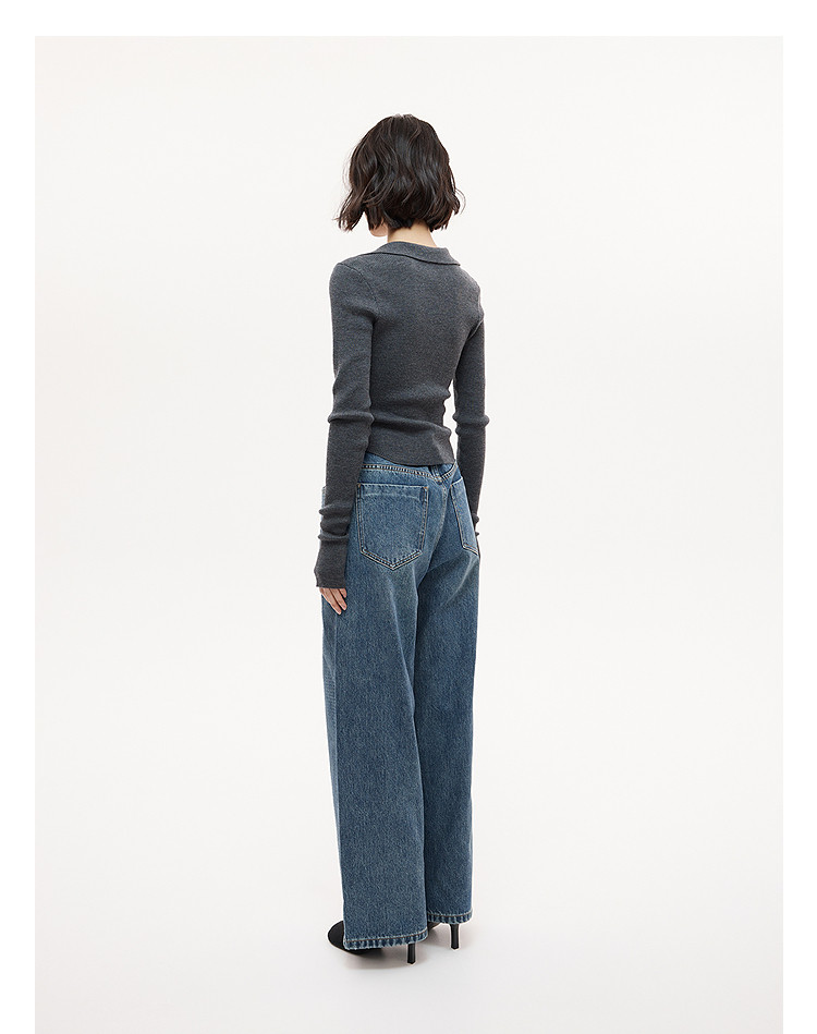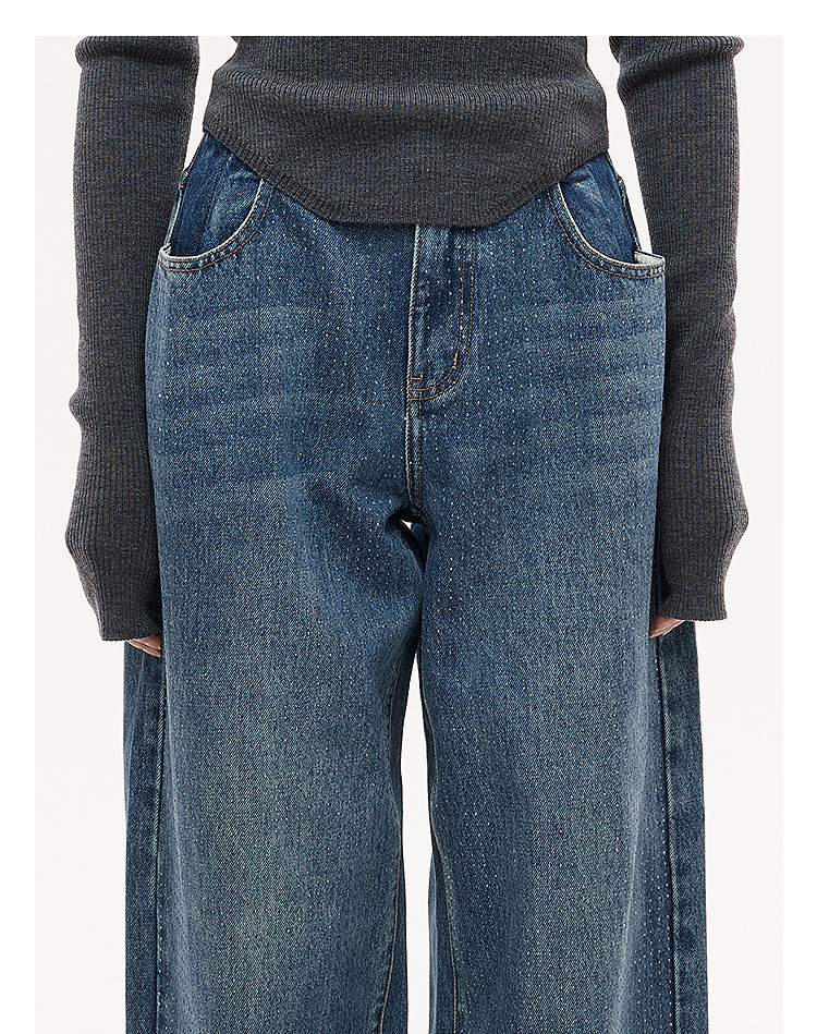DAZZLE jeans women's 25 autumn and winter loose retro blue wide-leg pants