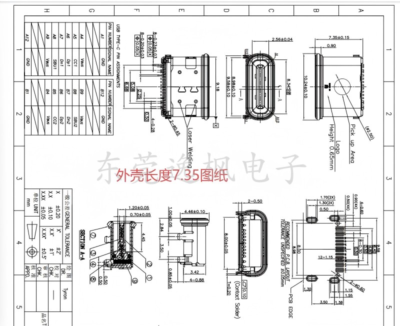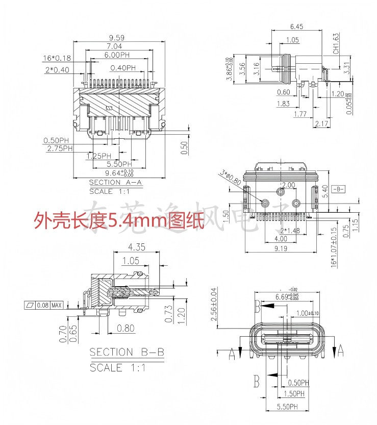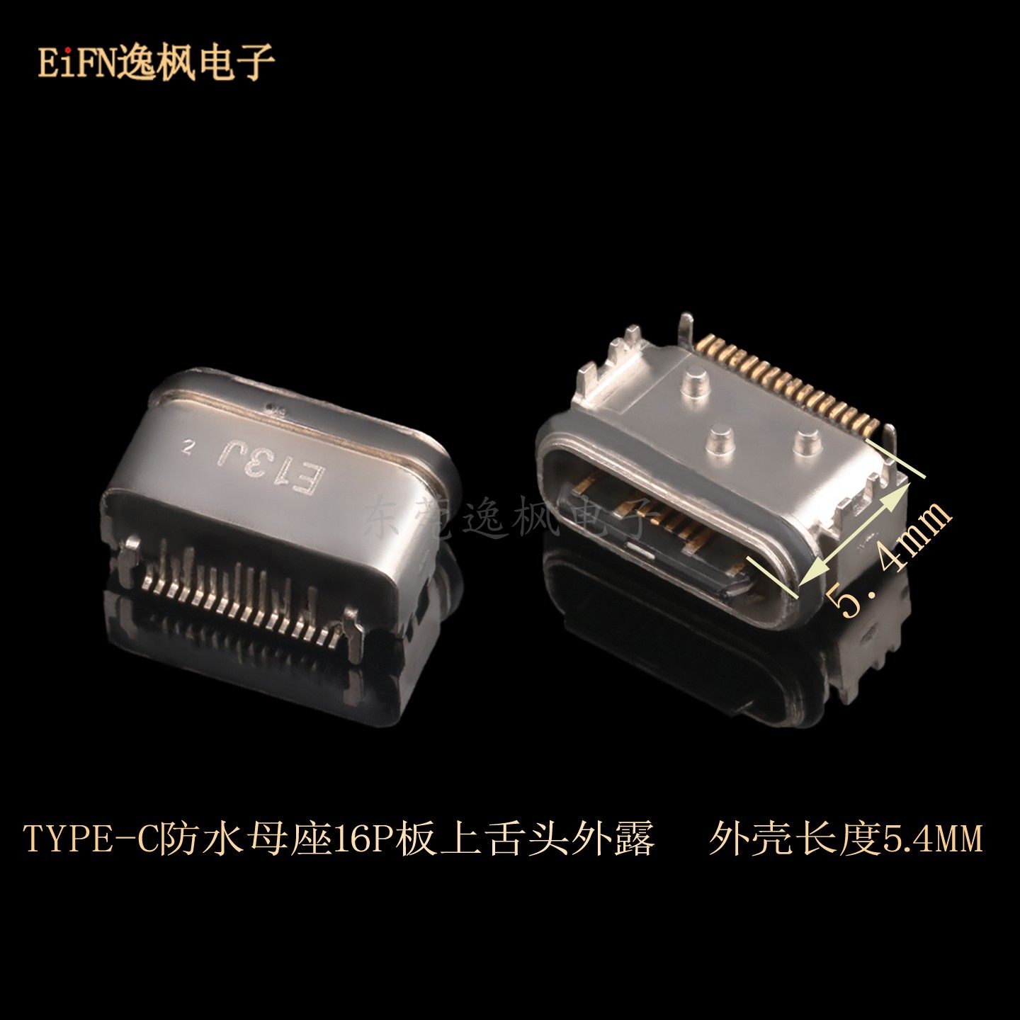 Color Classification Type-C Waterproof Female Socket 16P on Board,Type-C Waterproof 16P Tongue Exposed