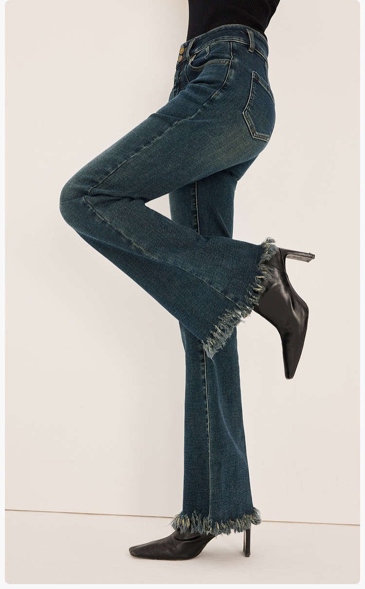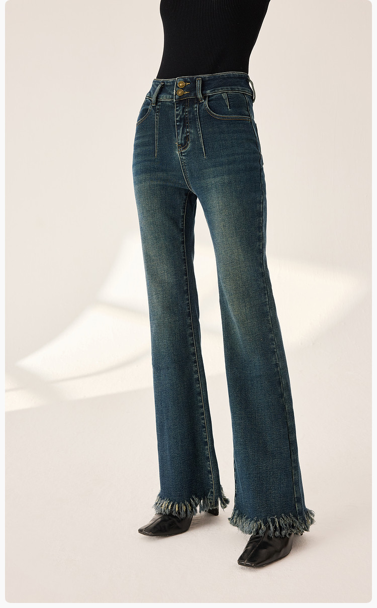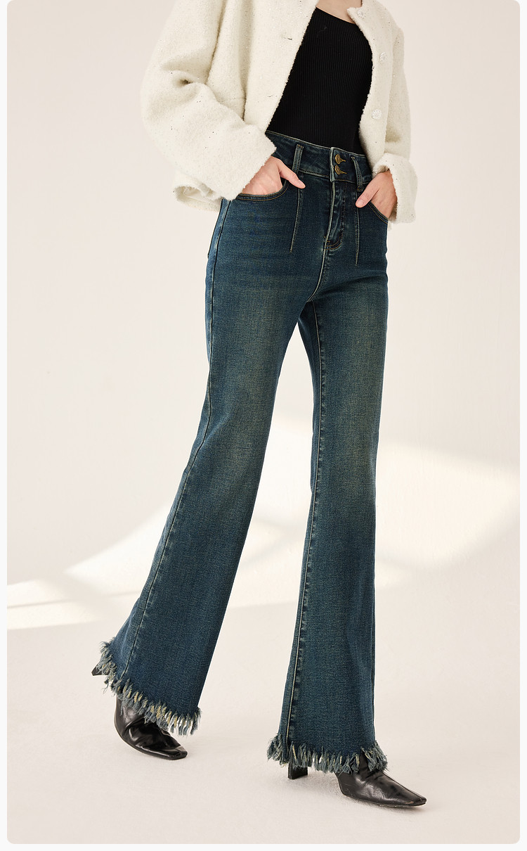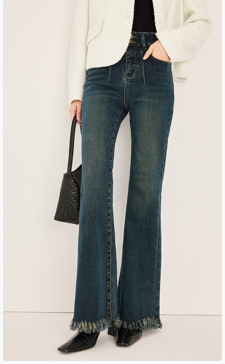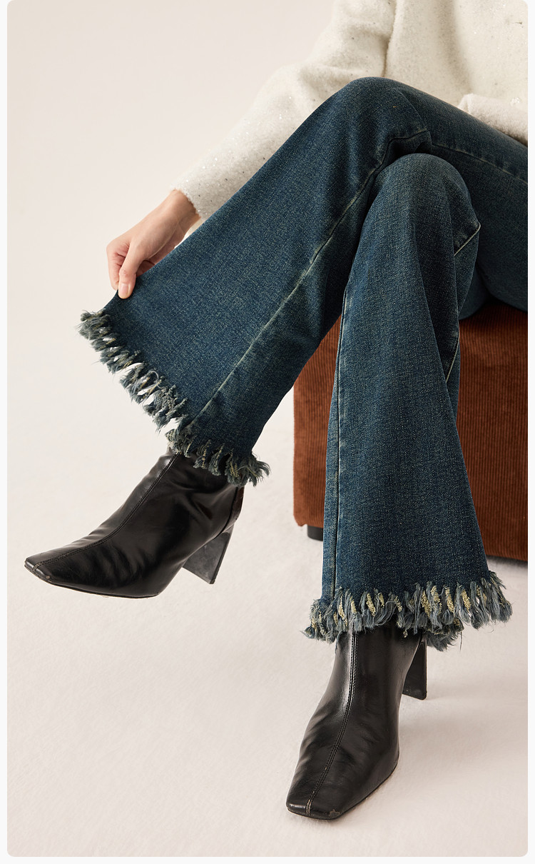 Xiangying ретро синие джинсы для женщин 2025, зима, новый стиль, с кисточками и высокой талией, потертые высокие хлопковые длинные брюки