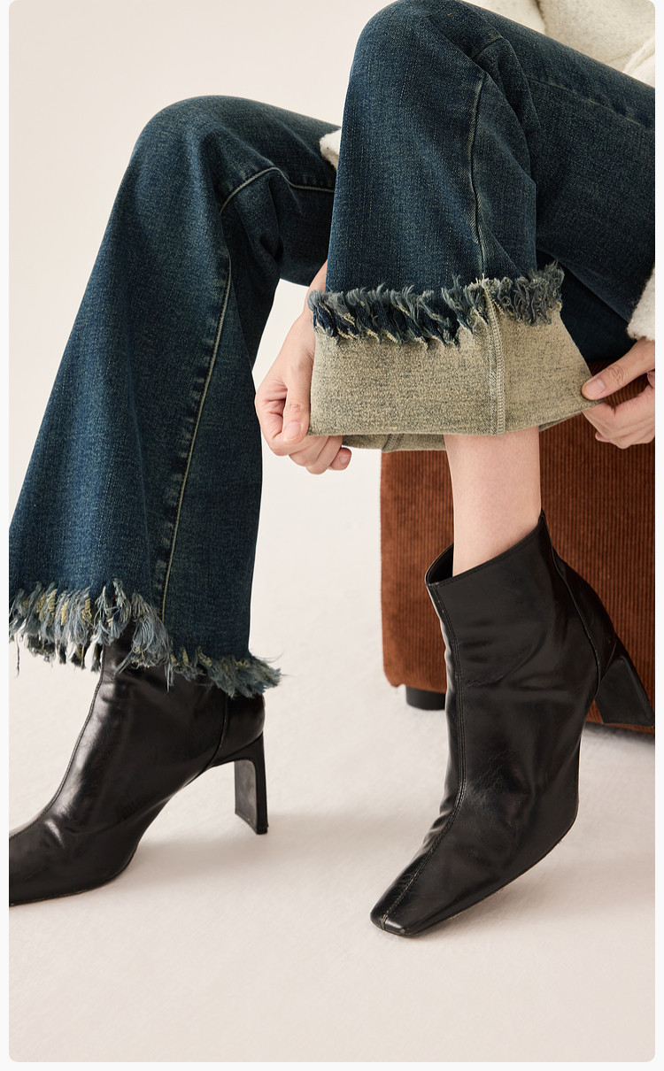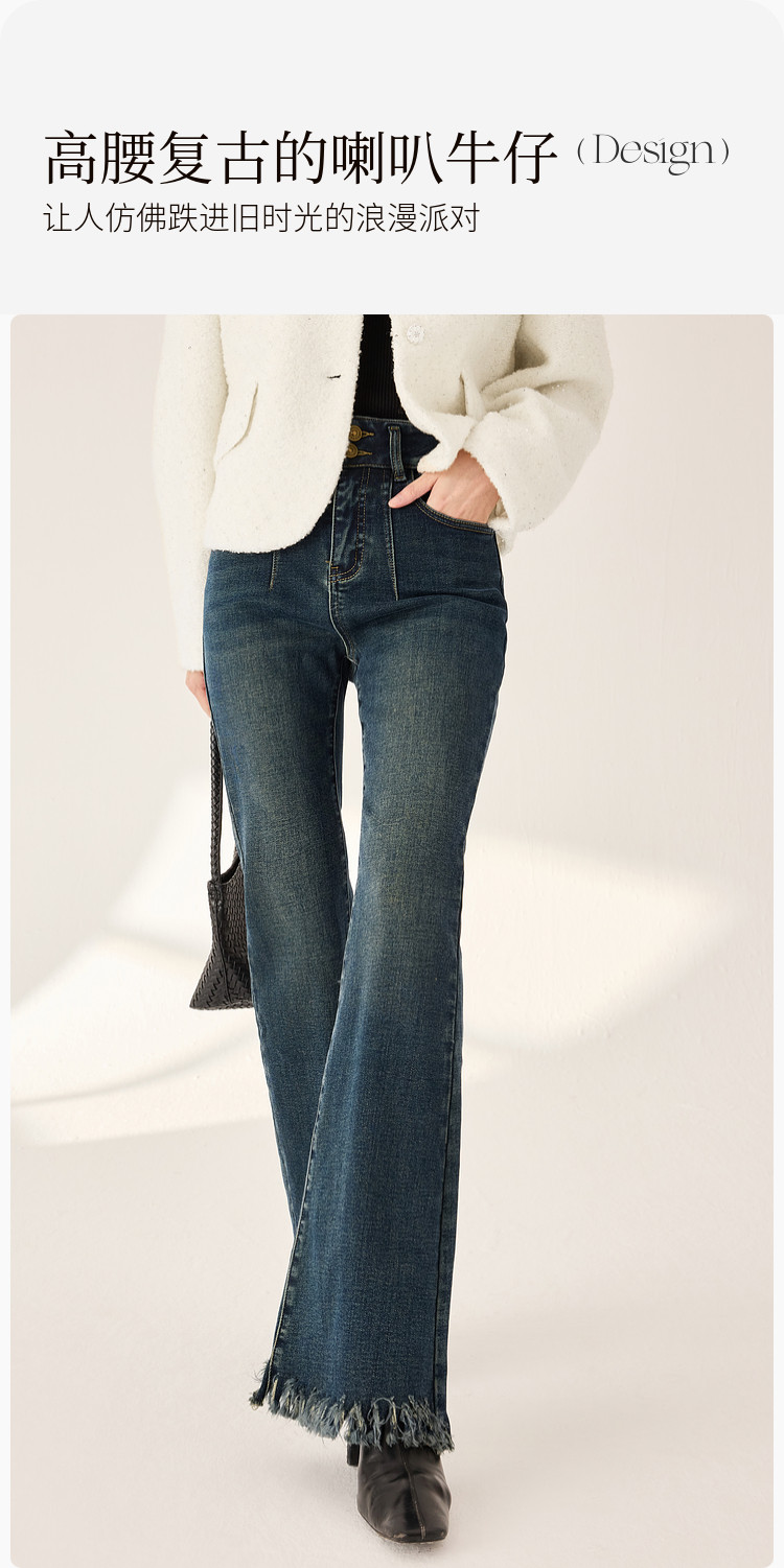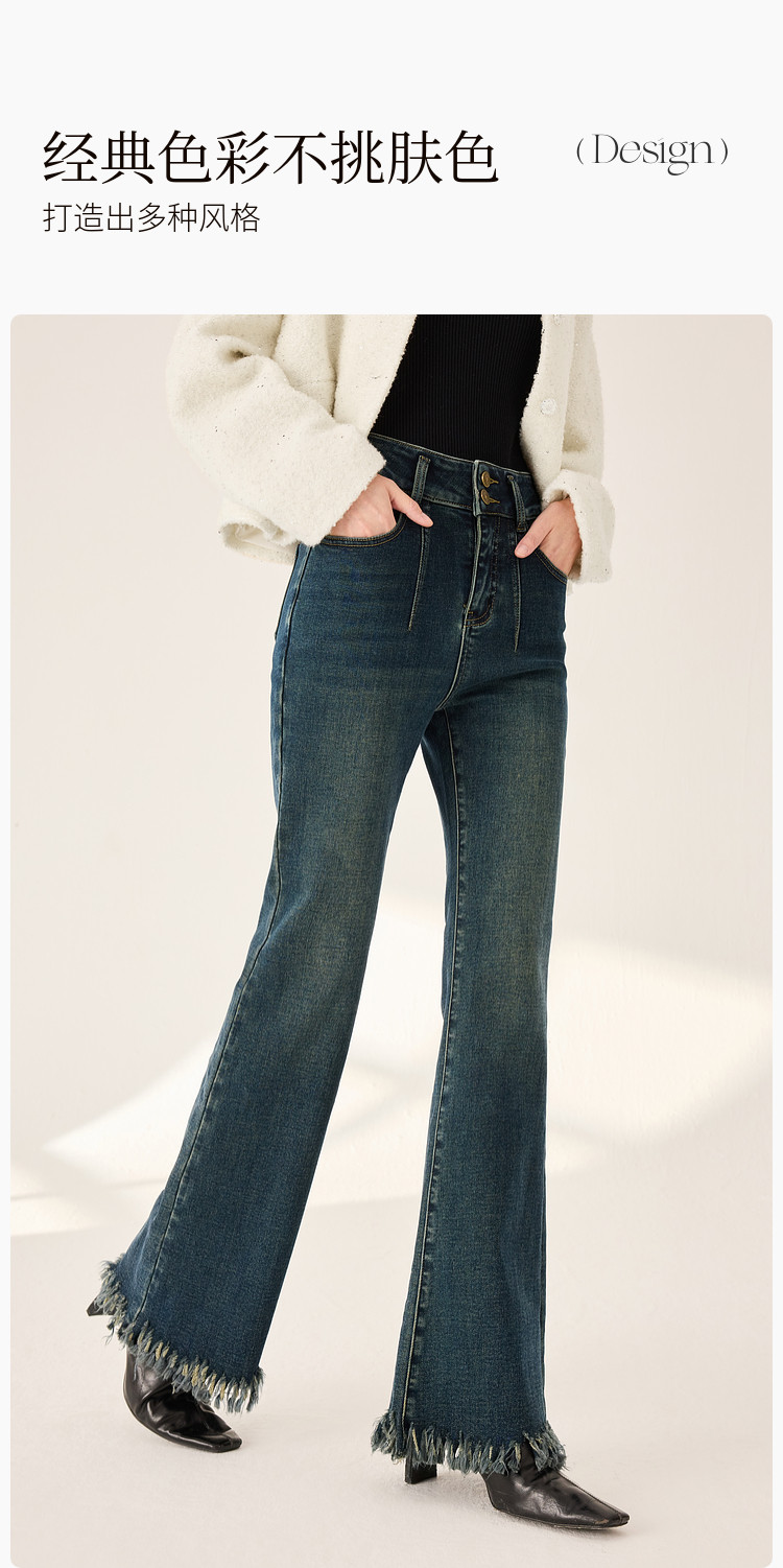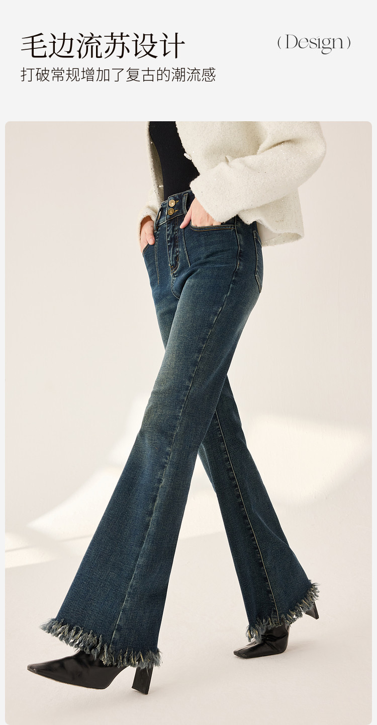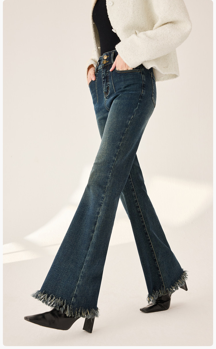 Xiangying ретро синие джинсы для женщин 2025, зима, новый стиль, с кисточками и высокой талией, потертые высокие хлопковые длинные брюки