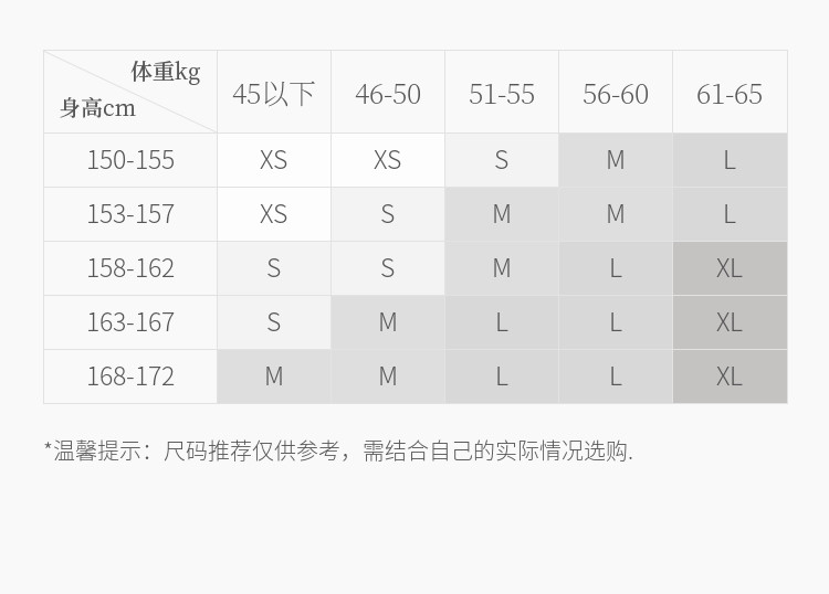 China (cm) 160-165/84-86 165-170 / 88-90 167-172 / 92-96 168-173 / 98-102 170-176 / 106-110