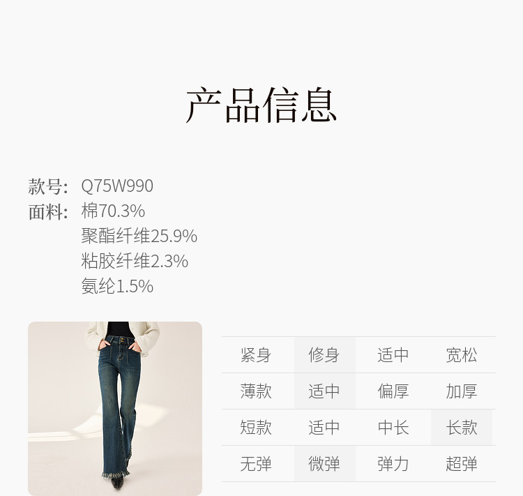 Outseam (cm) 99 cm 101.5 cm 104 cm 106.5 cm 109 cm