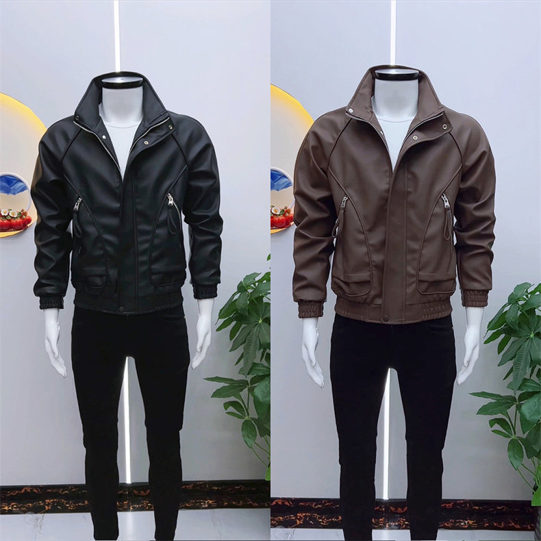 Chaqueta de cuero con cuello levantado de marca a la moda para hombre, chaqueta bonita de estilo coreano de alta gama, otoño e invierno, tops para hombre 2025