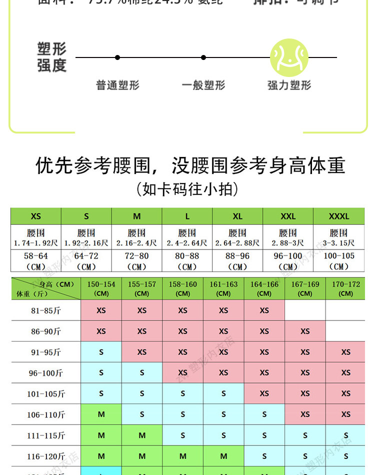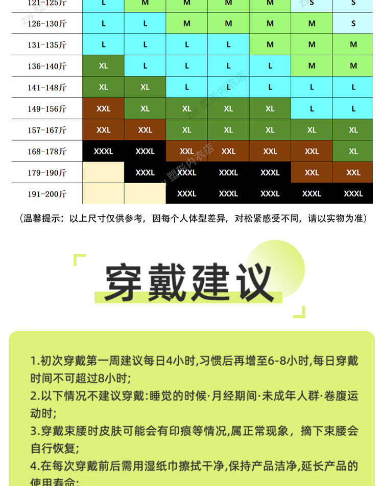 尺码 XS【体重80-96斤,腰围58-64】,S【体重96-112斤,腰围64-72】,M【体重112-128斤,腰围72-80】,L【体重128-144斤,腰围80-88】,XL【体重144-160斤,腰围88-96】,XXL【体重160-176斤,腰围96-100】,3XL【体重176-190斤,腰围100-105】