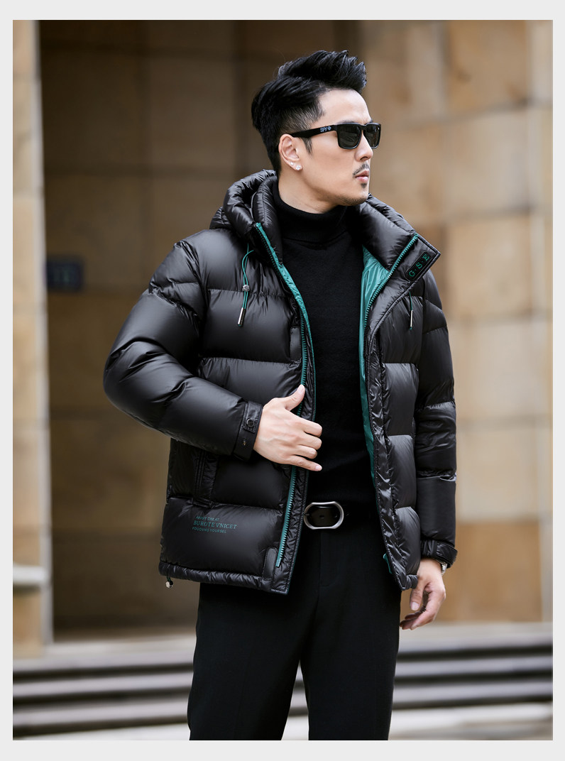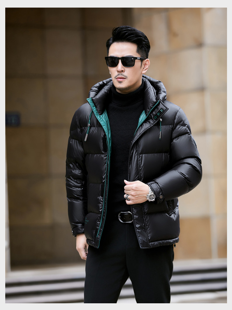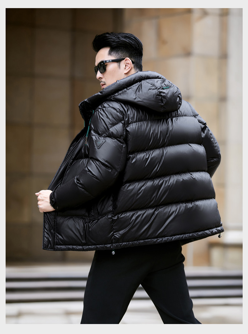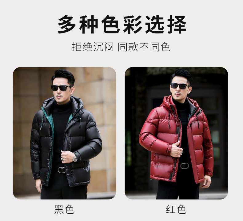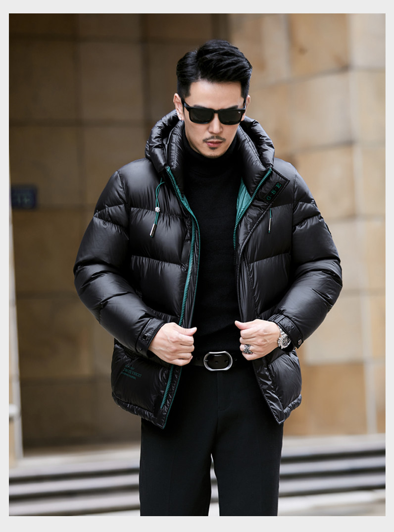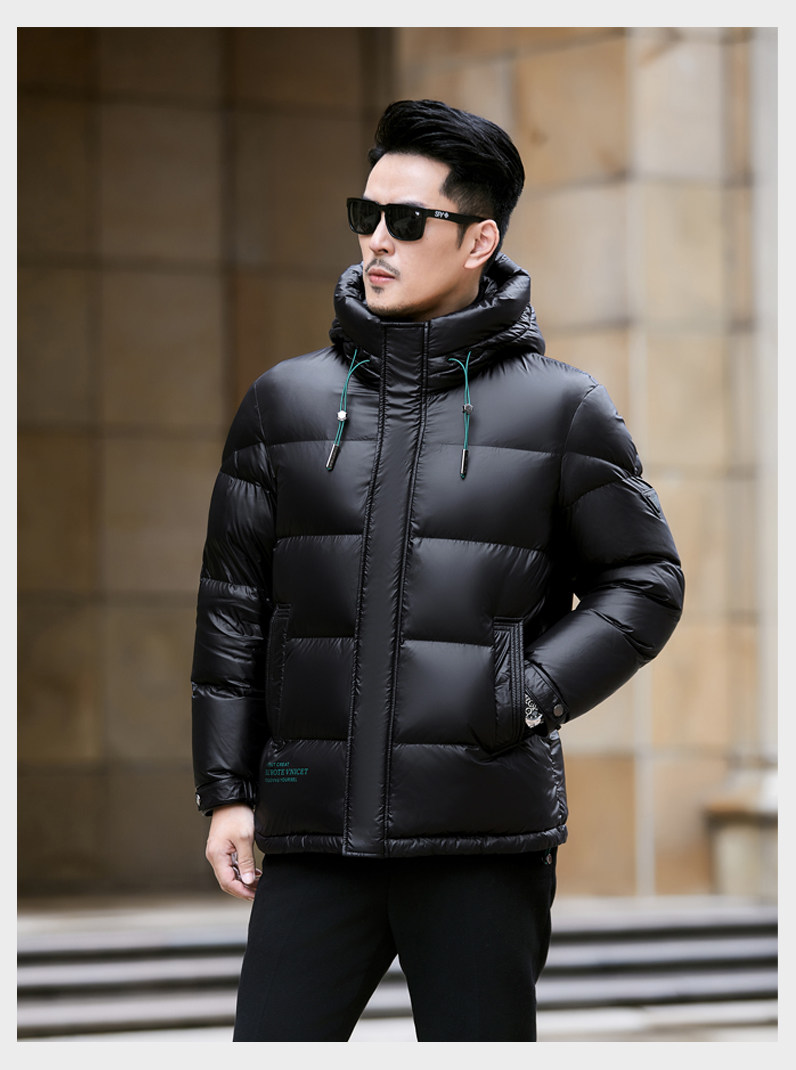 Woodpecker Winter Neue Daunenjacke Herren Shiny Black Gold Hooded Plus Samtverdickte wasserdichte No-Wash Junge und mittlere Alter C