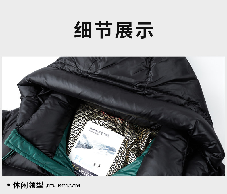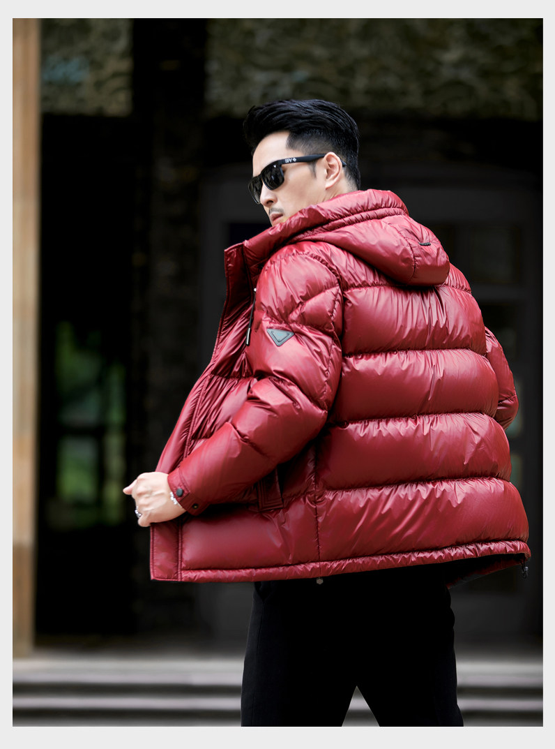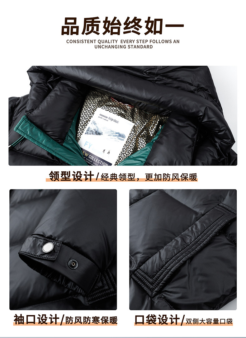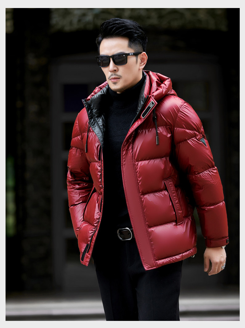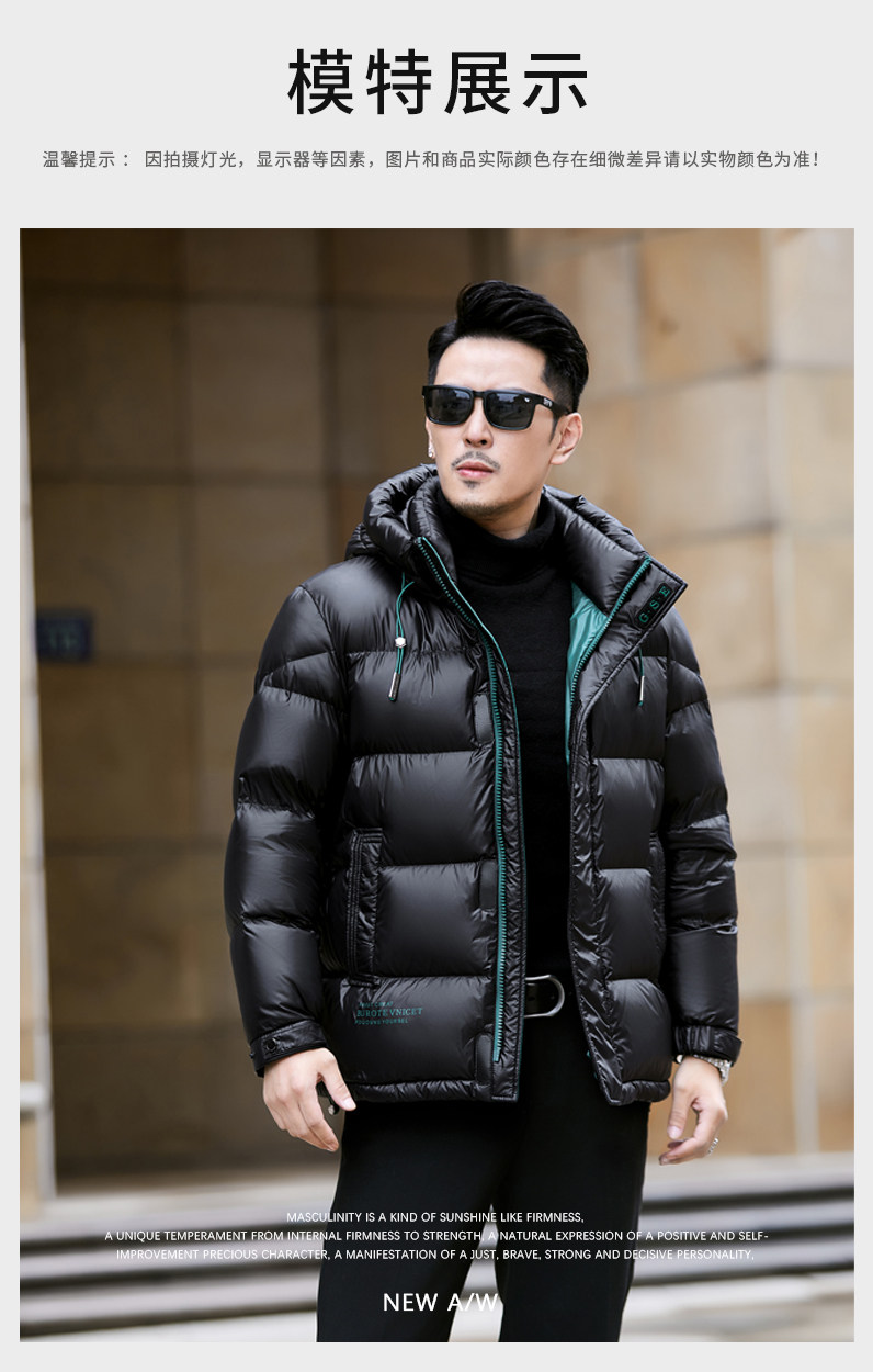 Woodpecker Winter Neue Daunenjacke Herren Shiny Black Gold Hooded Plus Samtverdickte wasserdichte No-Wash Junge und mittlere Alter C