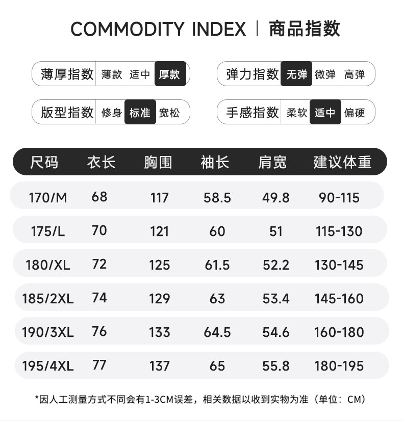 China (cm) 165 / 88-90 170 / 96-98 175 / 108-110 180 / 118-122 185 / 126-130