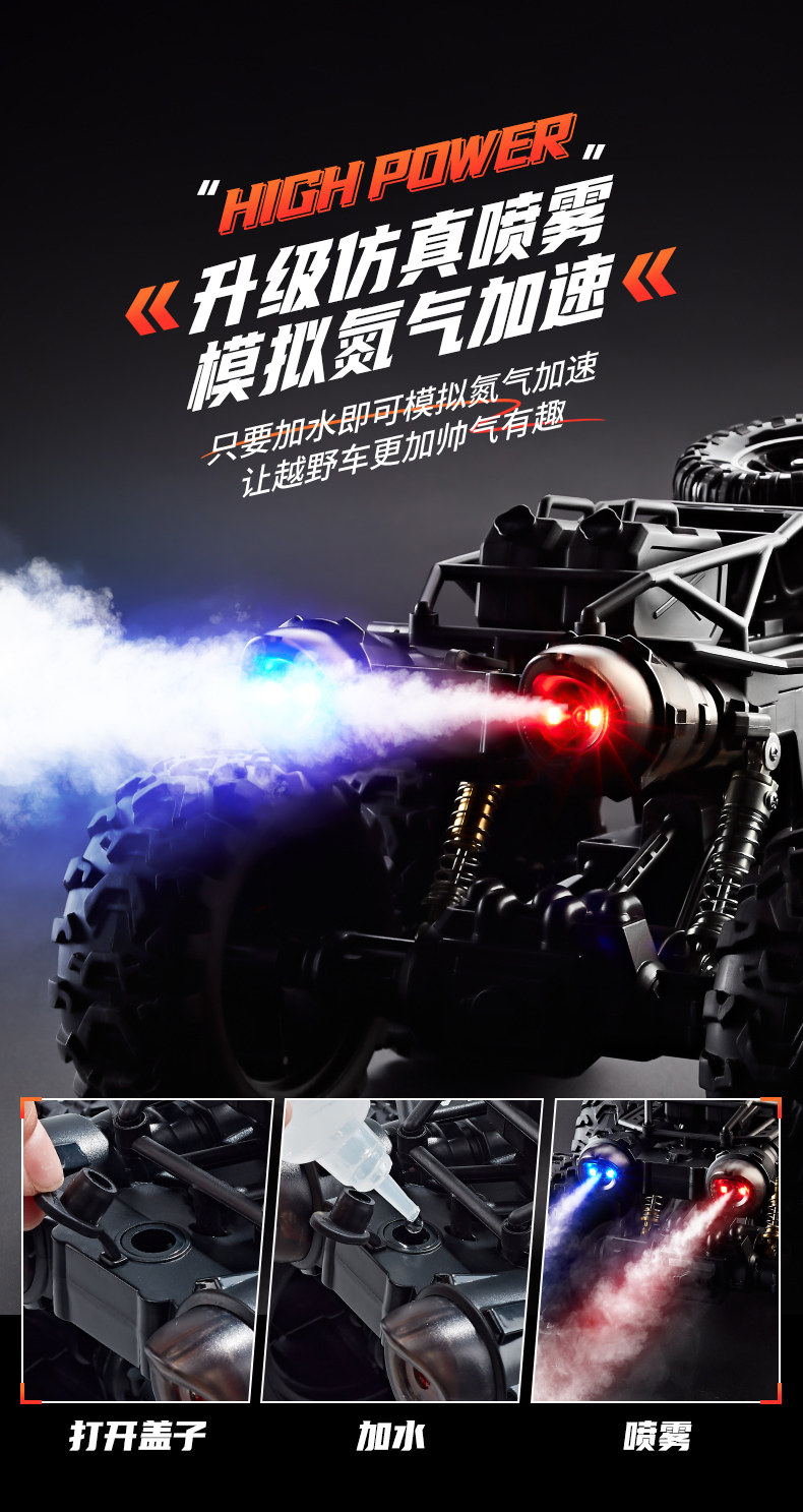Extra-Large Remote Control Off-Road Vehicle Toy Car with Water Spray, High-Speed Six-Wheel Drive Climbing Car for Boys and Children Racing