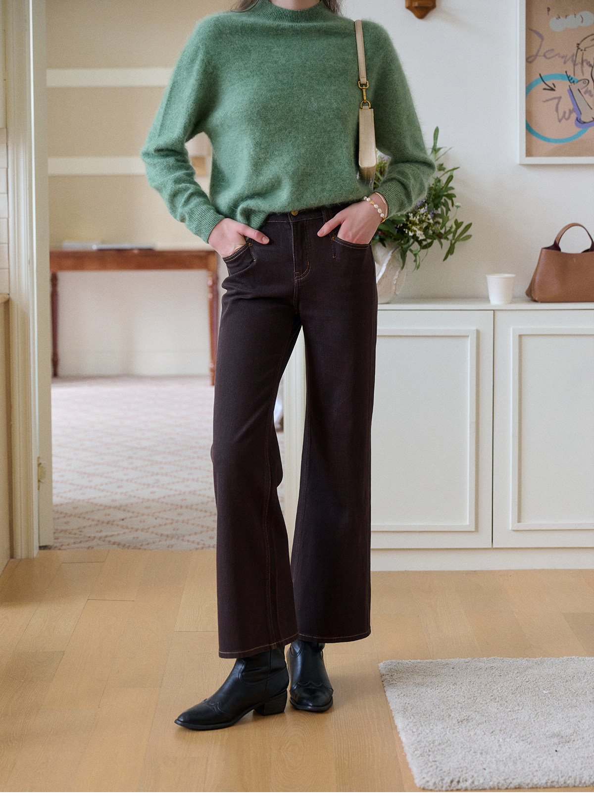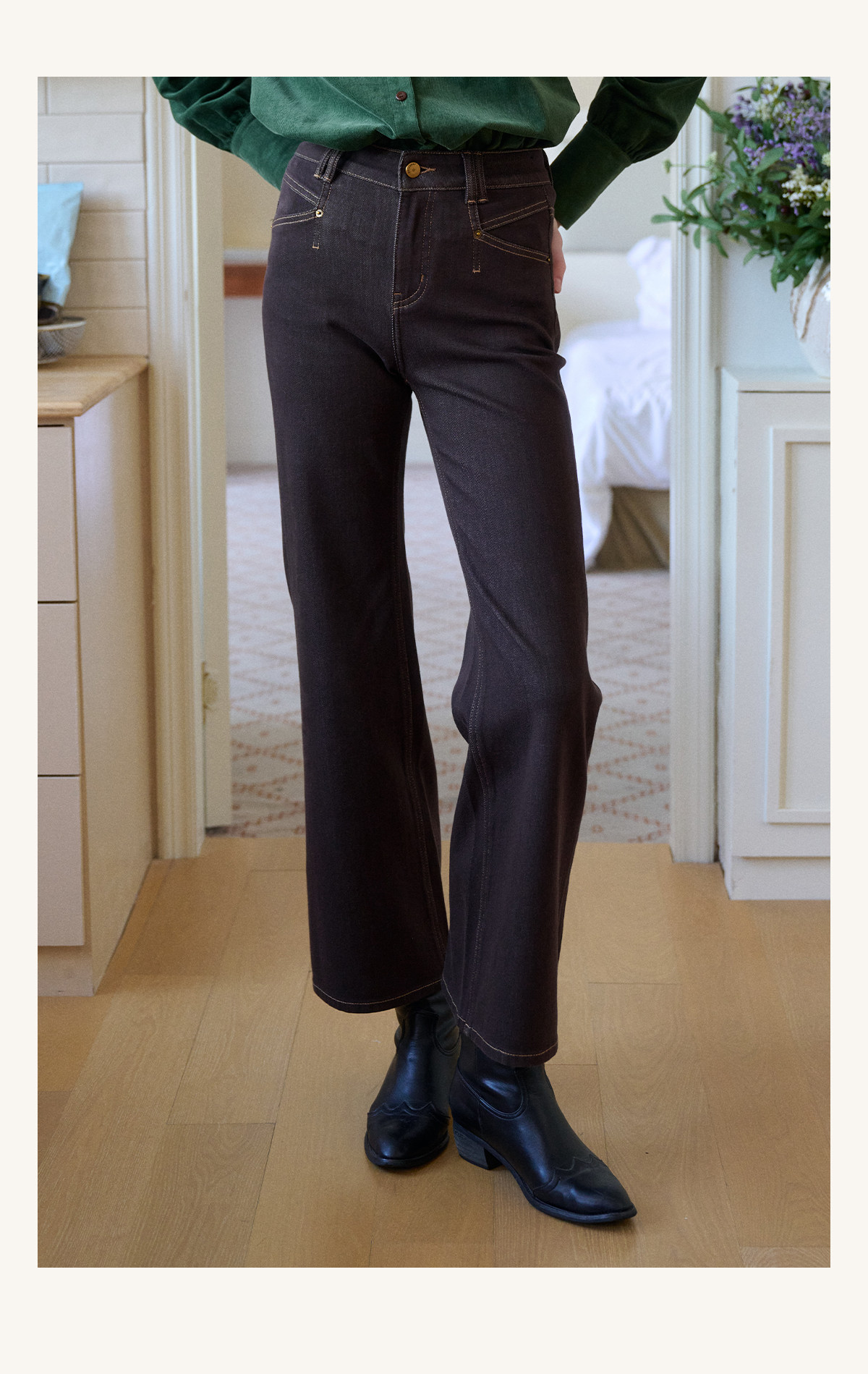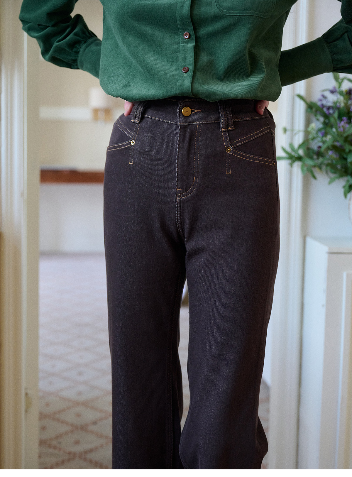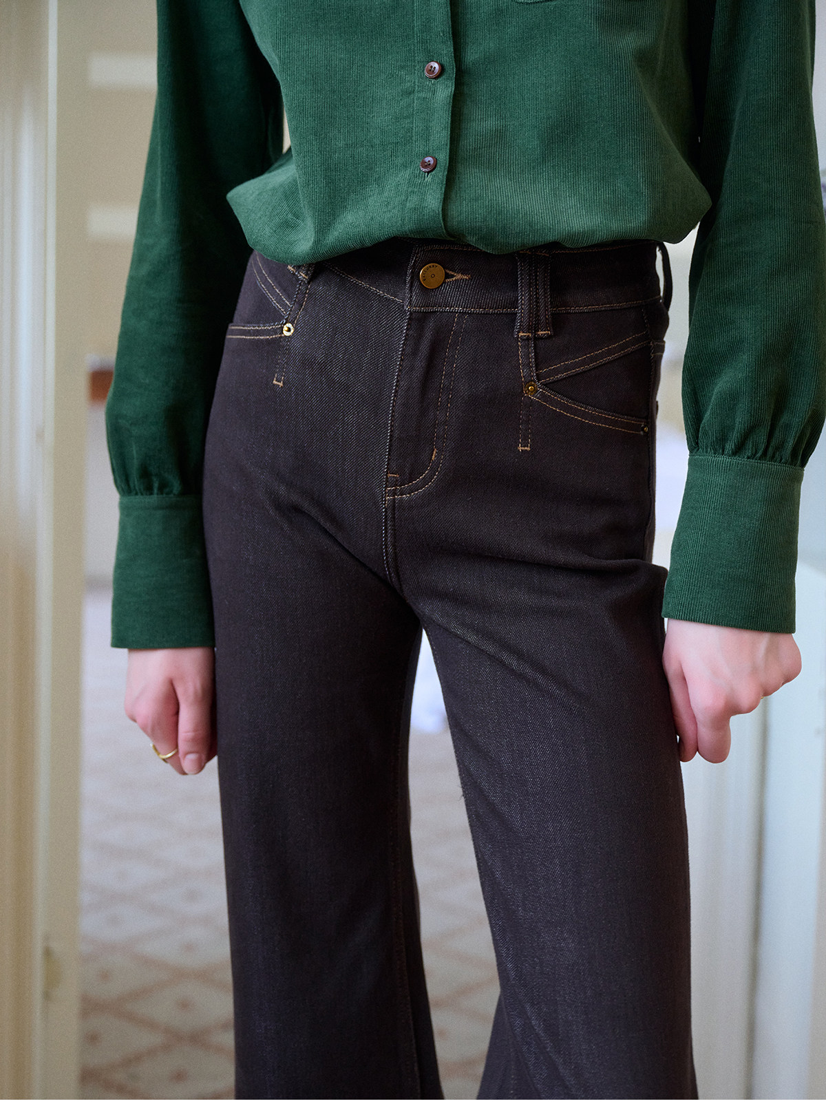SimpleRetro秋日回廊 复古高腰直筒微喇牛仔裤女秋百搭阔腿长裤子