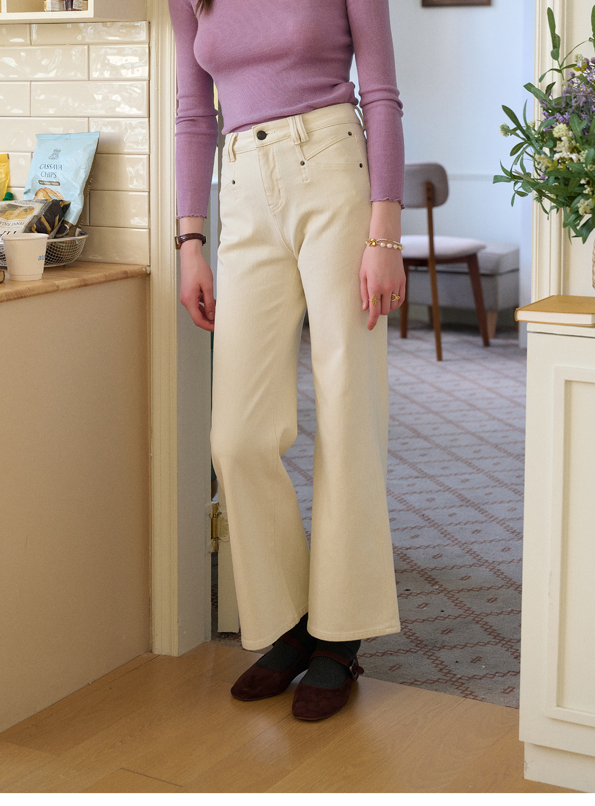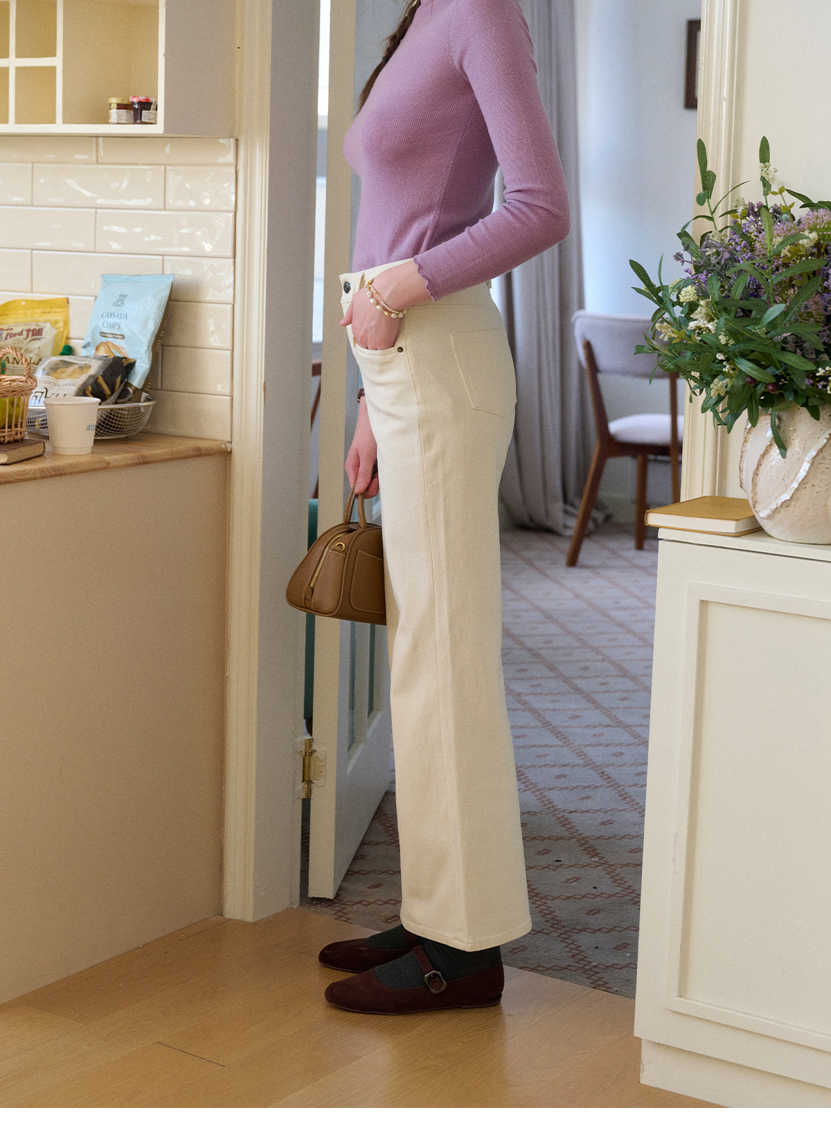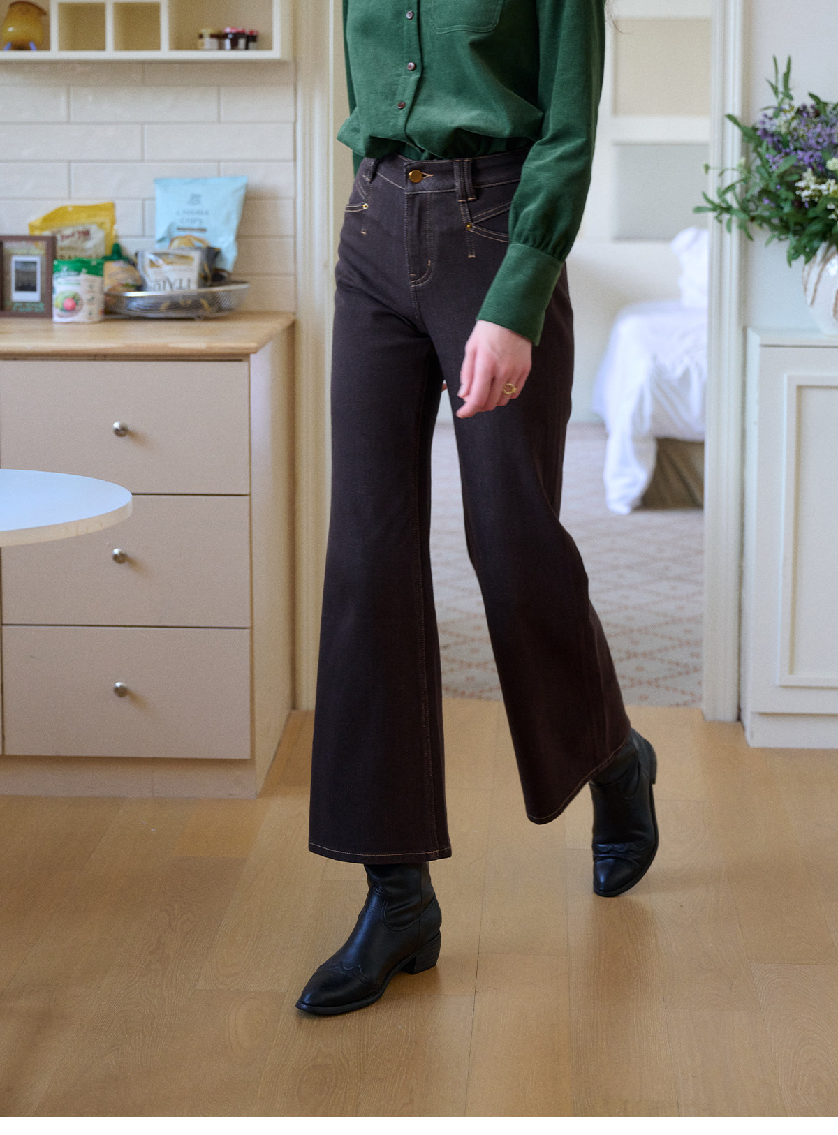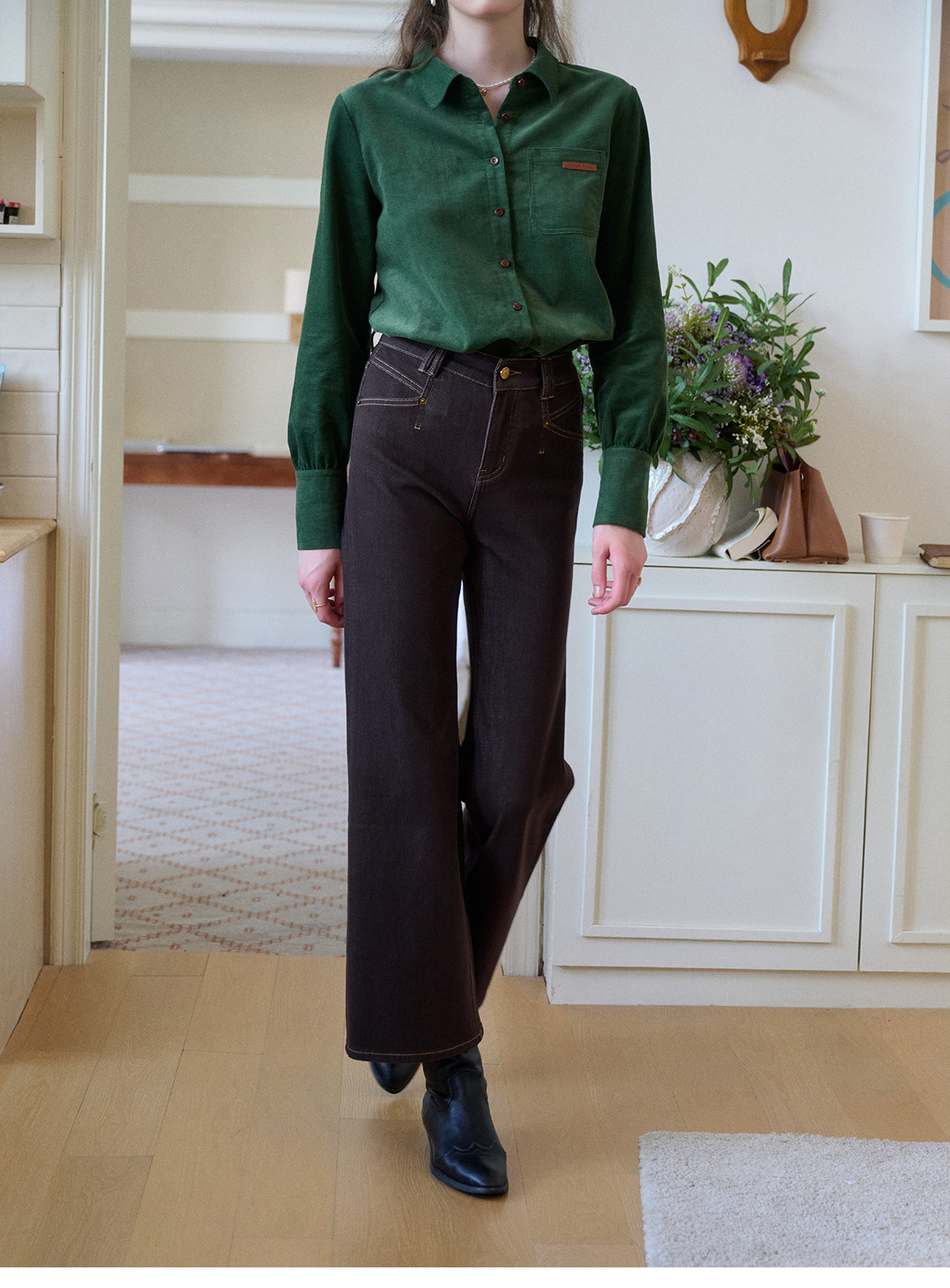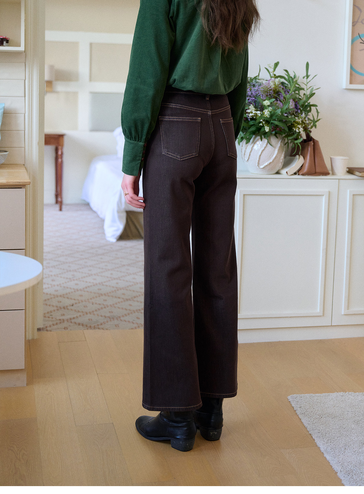 SimpleRetro秋日回廊 复古高腰直筒微喇牛仔裤女秋百搭阔腿长裤子