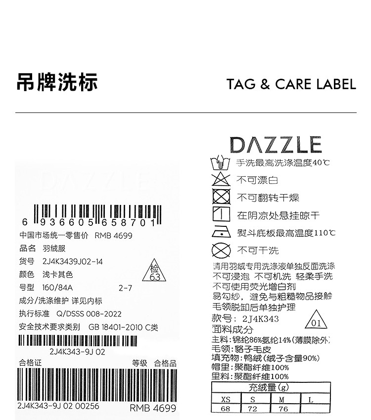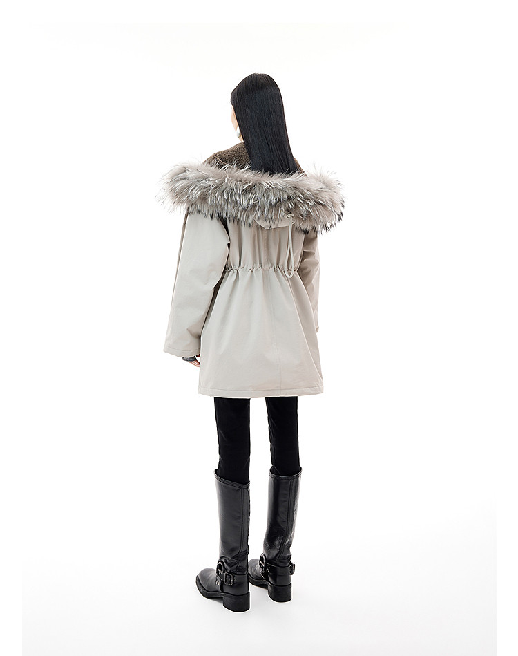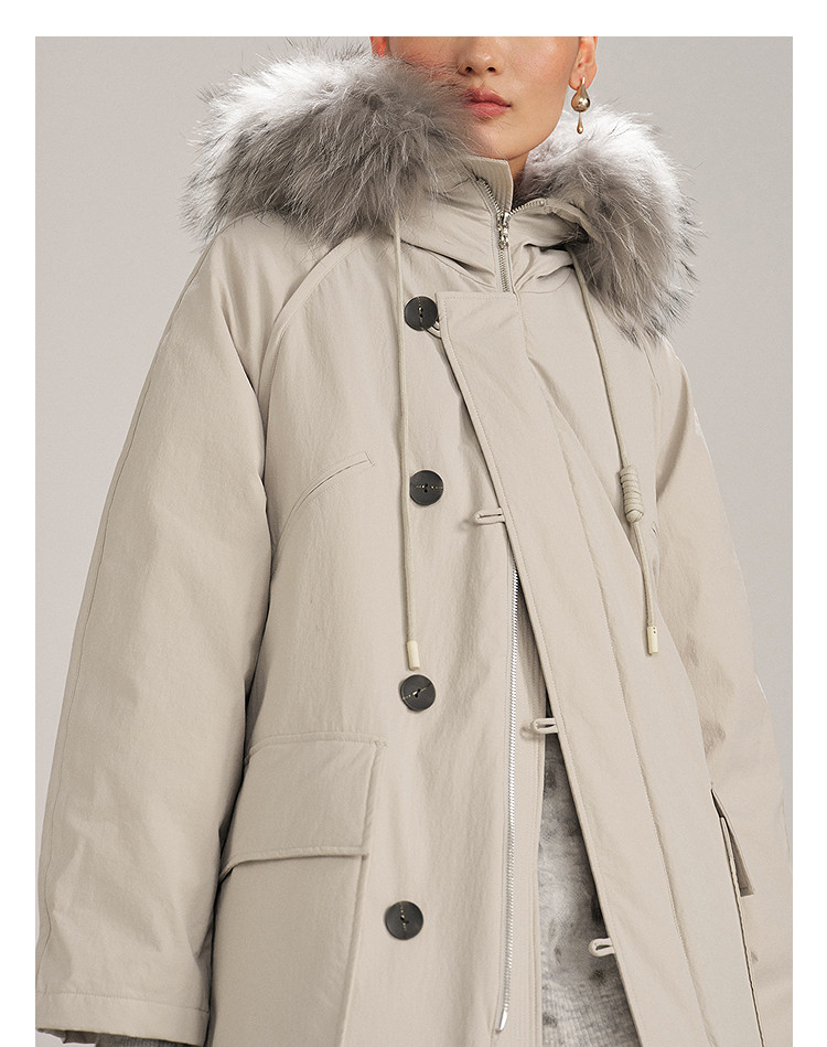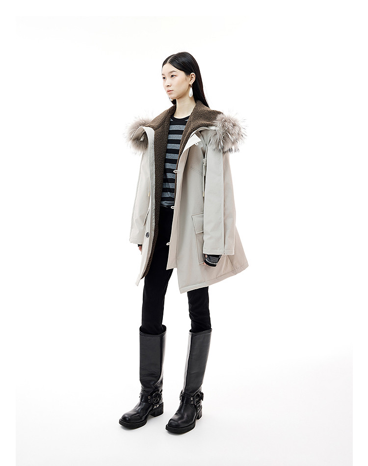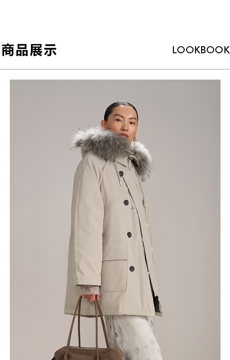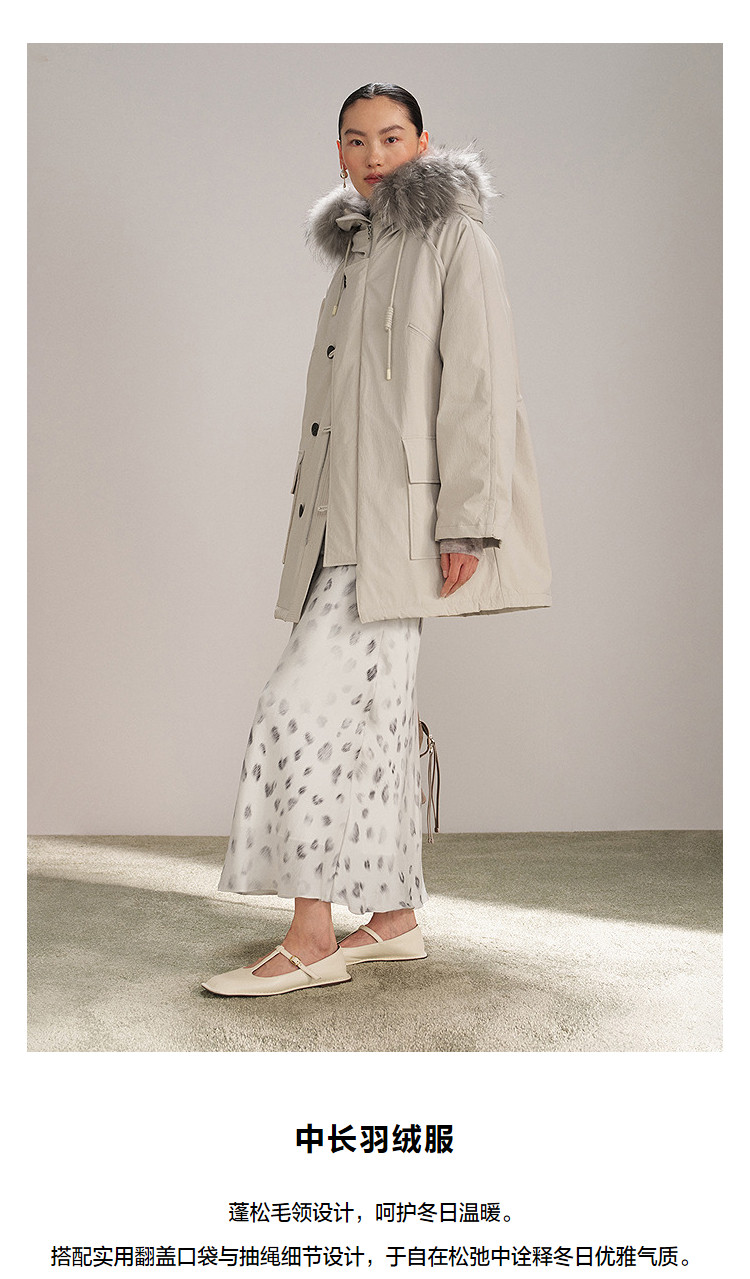 DAZZLE 2025 winter new snow leopard series fur collar hooded mid-length down jacket for women