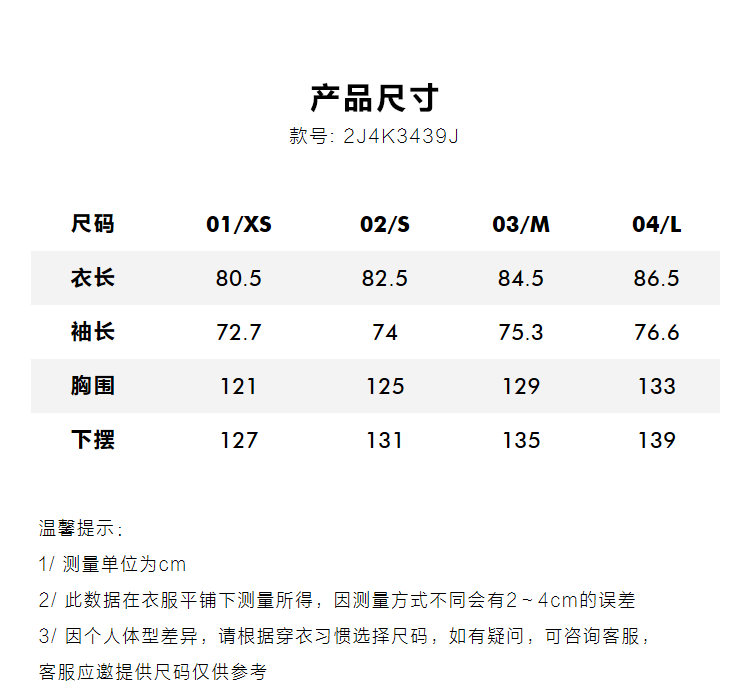Size 01/XS,02/S,03/M,04/L