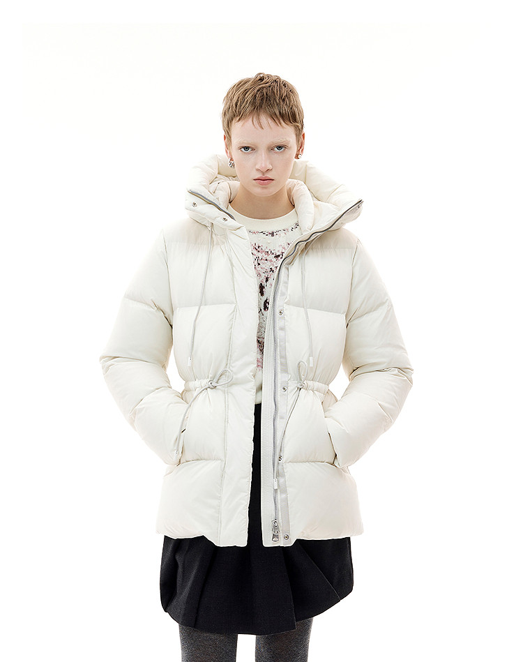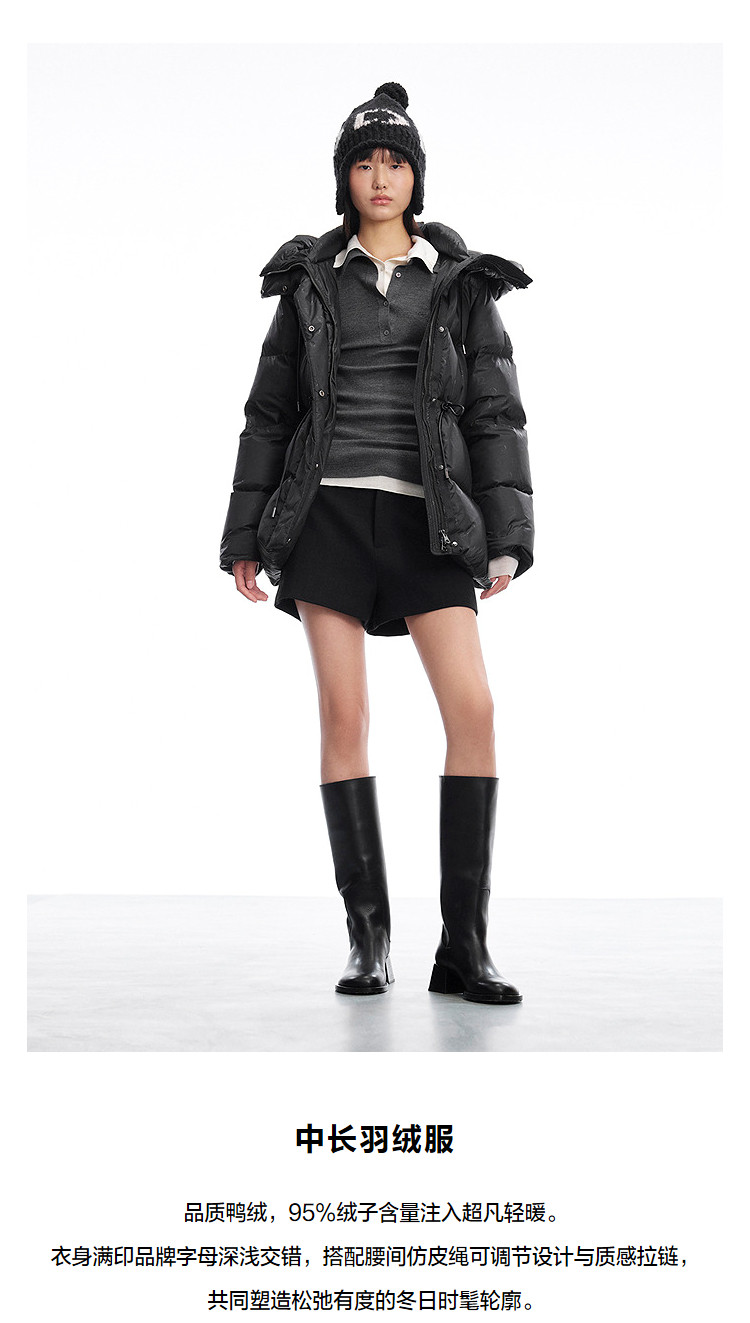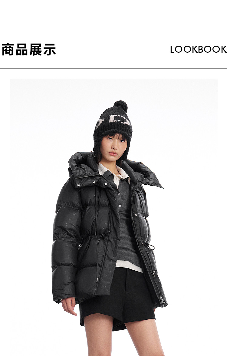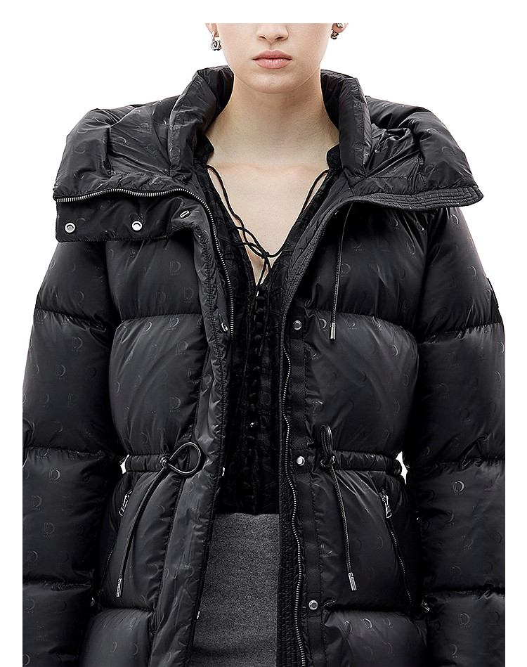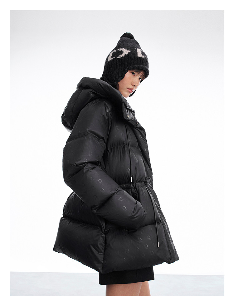 Dazzle 25Th Winter Black Waist-Tightening Drawstring Cloud Puff Mid-Length down Jacket for Women