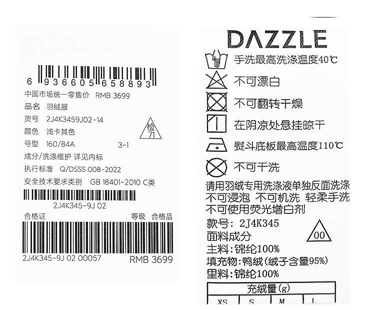 China (cm) 165 / 88-90 170 / 96-98 175 / 108-110 180 / 118-122 185 / 126-130