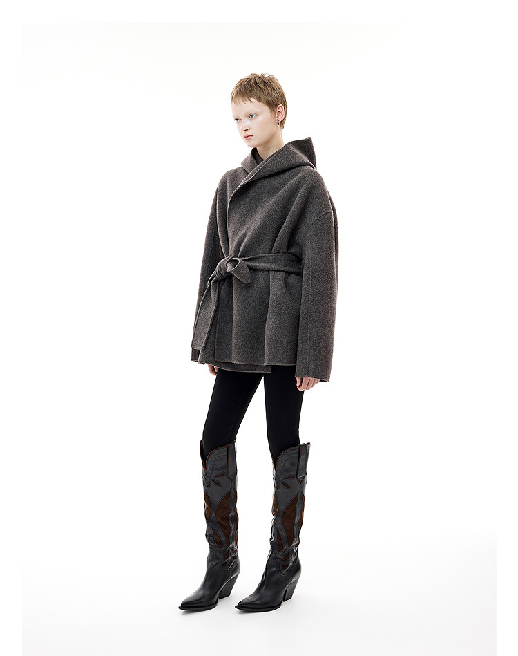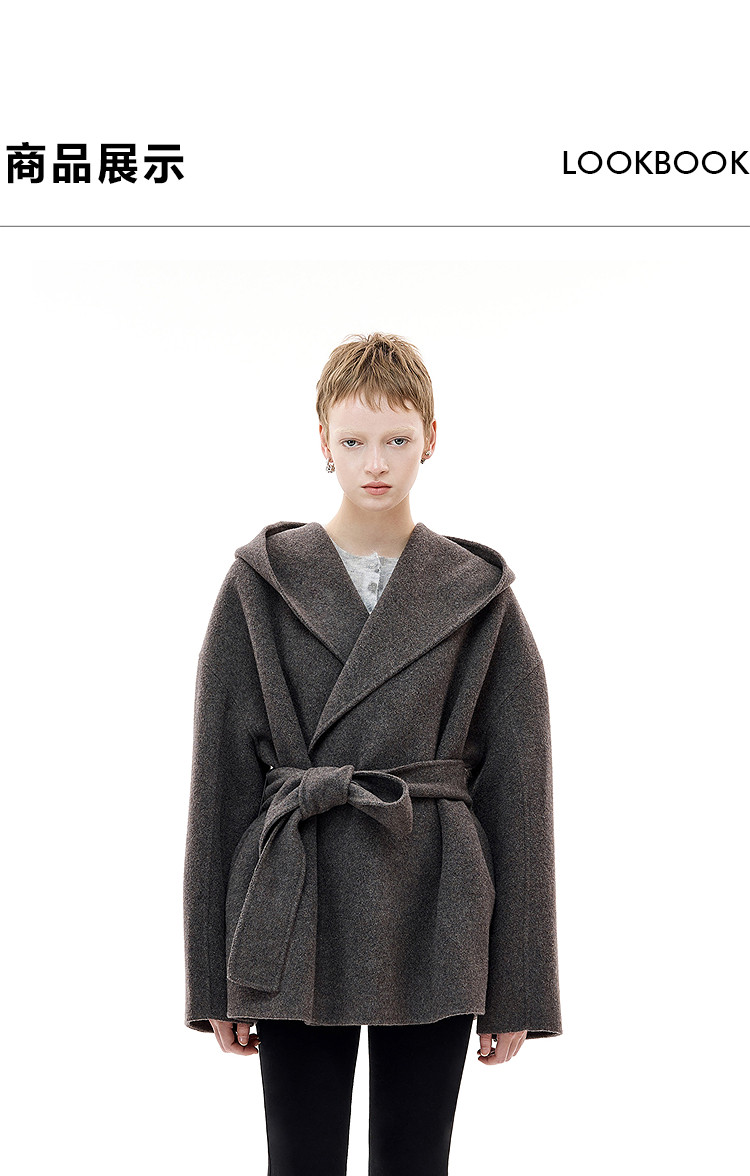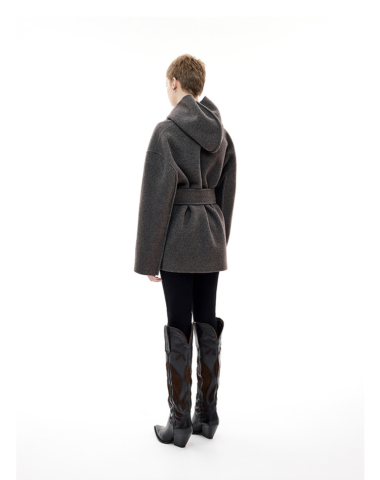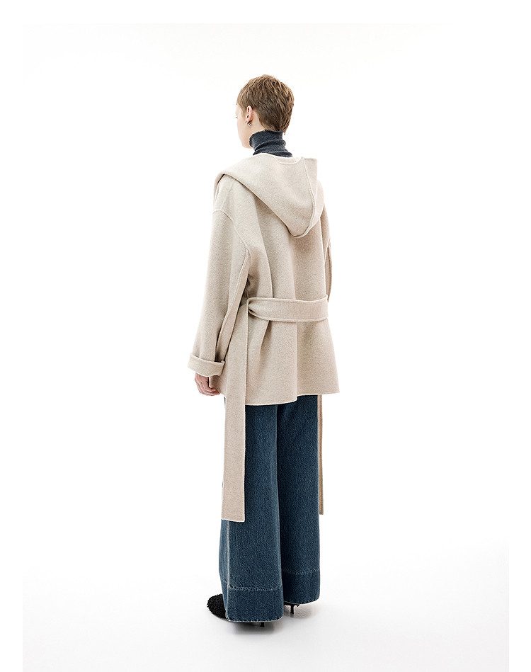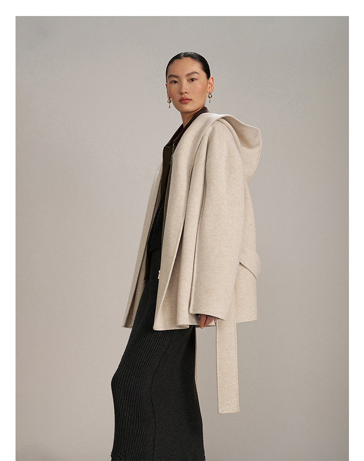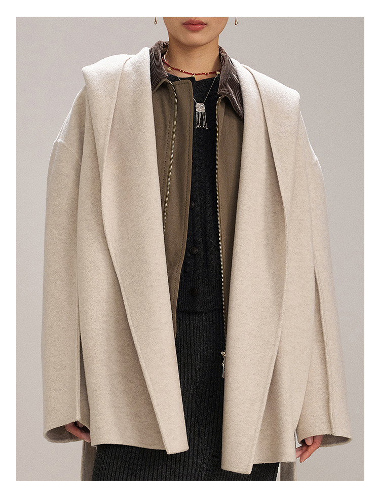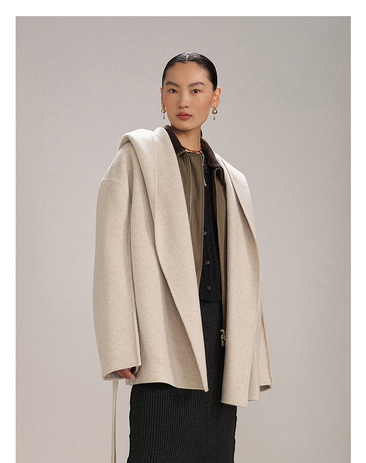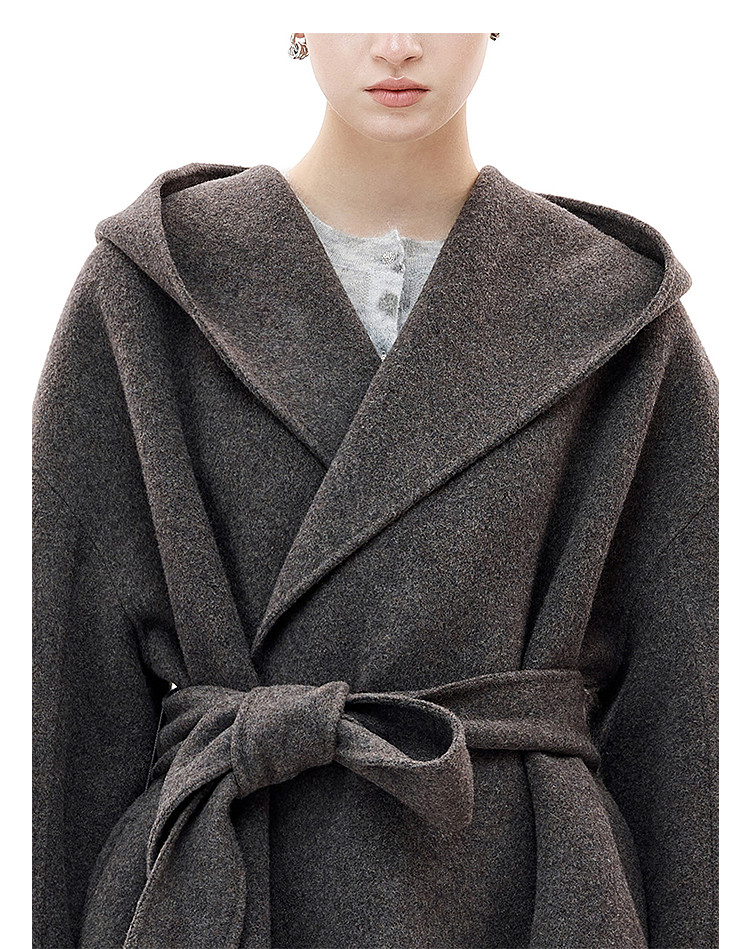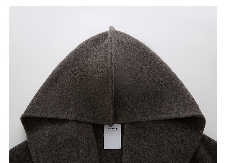 Dazzle 2025 Winter New All-Wool Hooded Mid-Length Lazy Woolen Coat