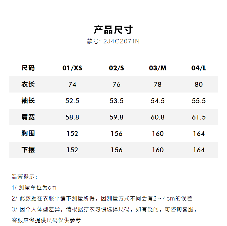 Size 01/XS ​​​​,02/S,03/ m,04/Ls