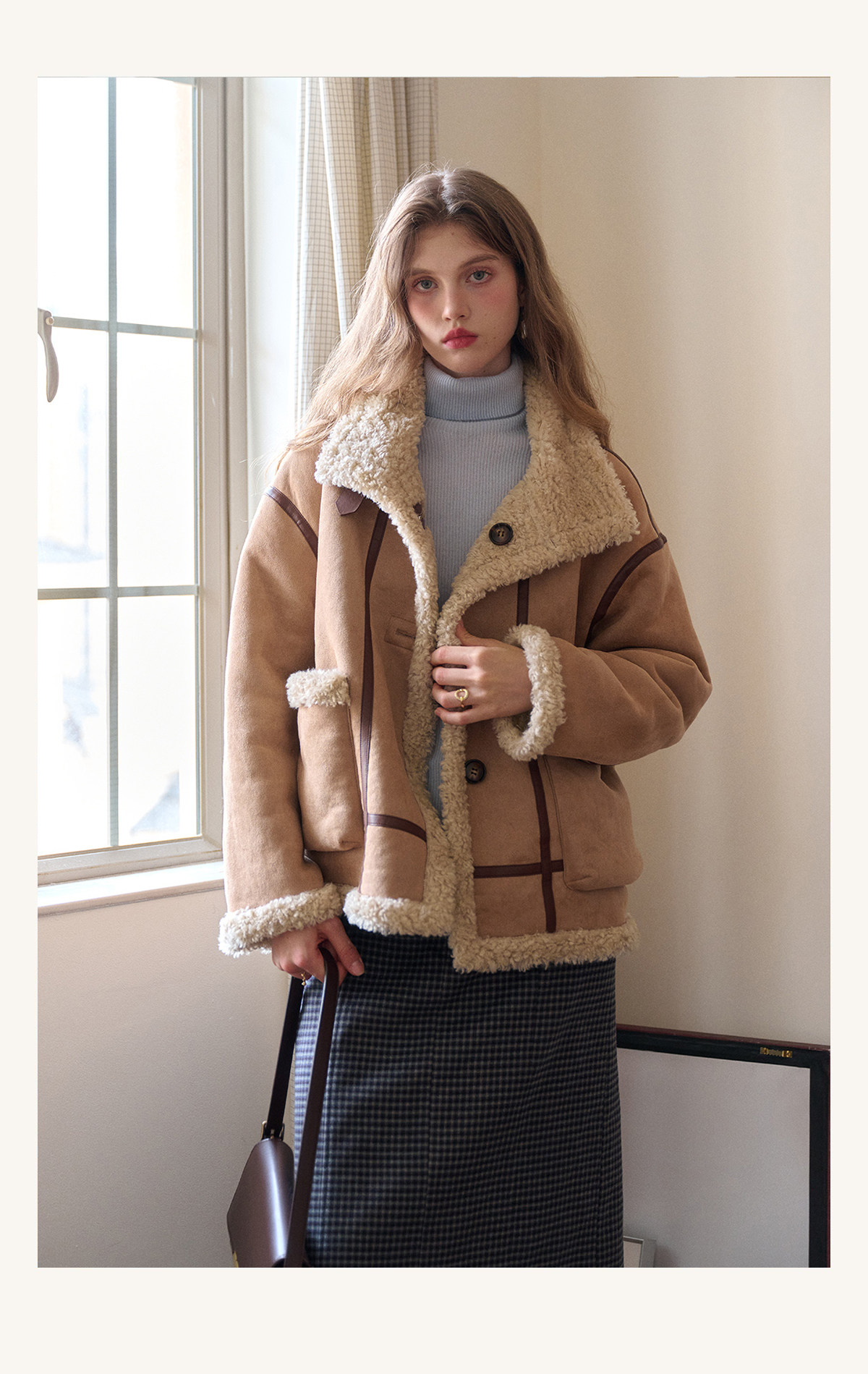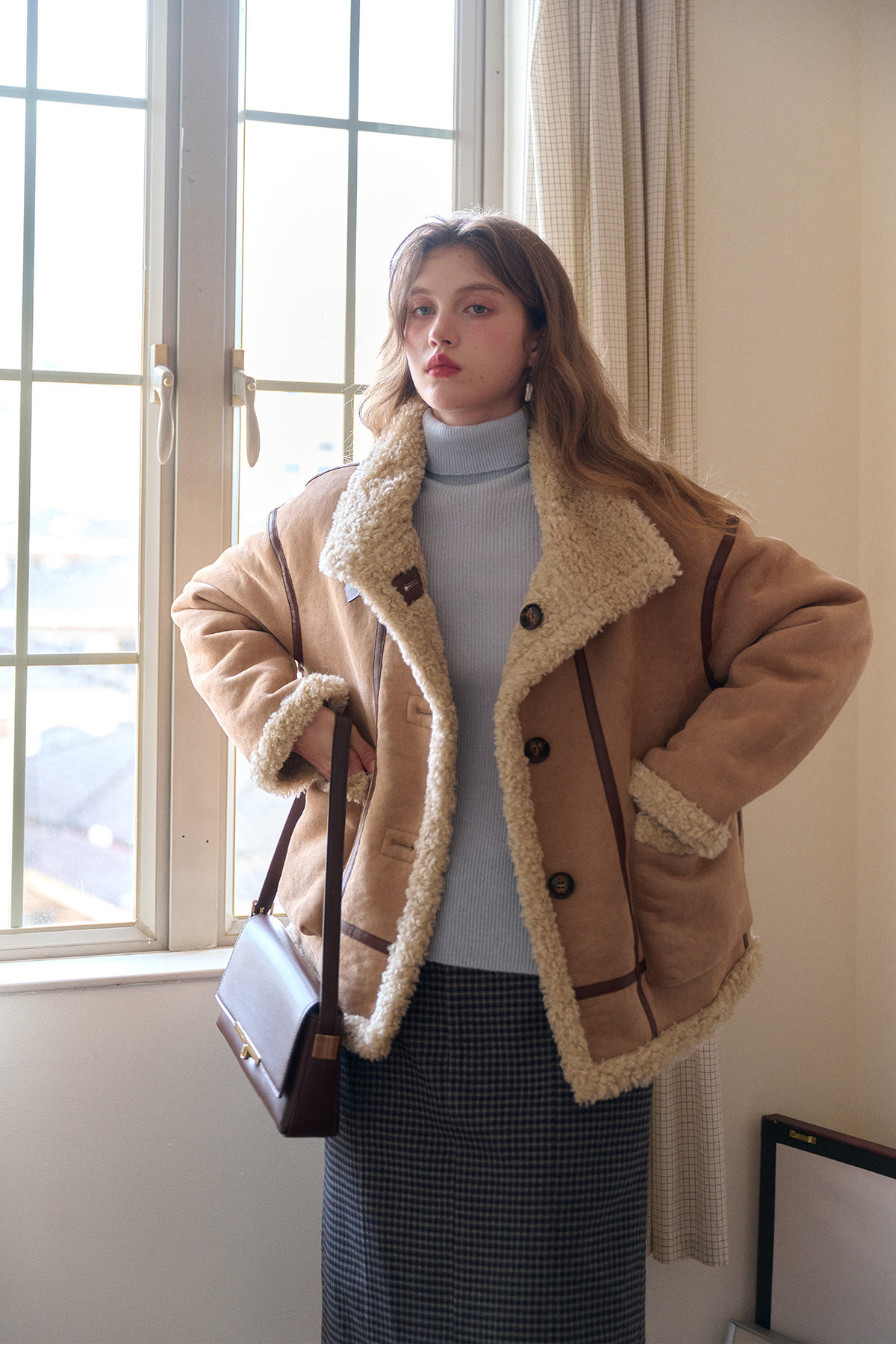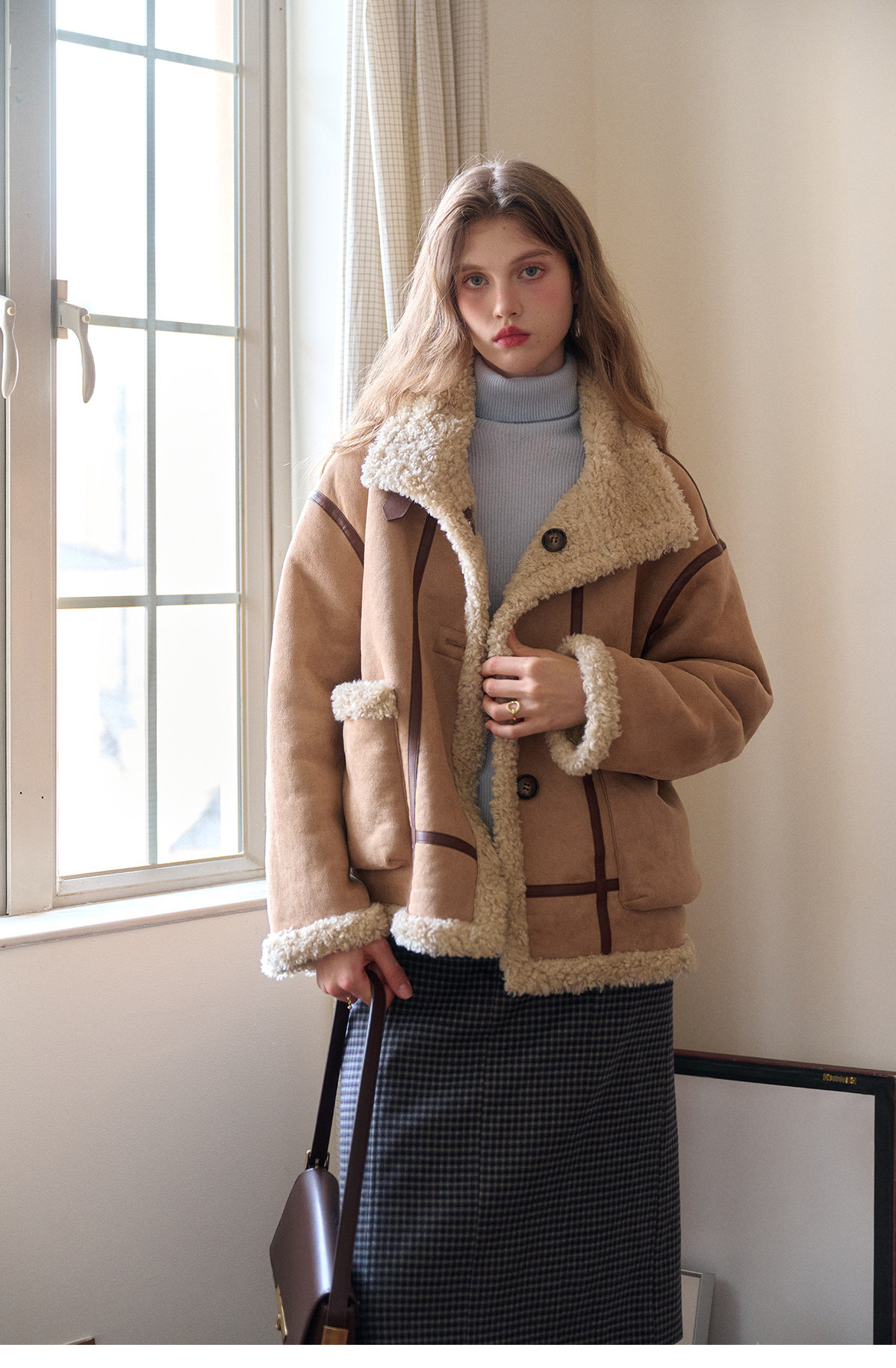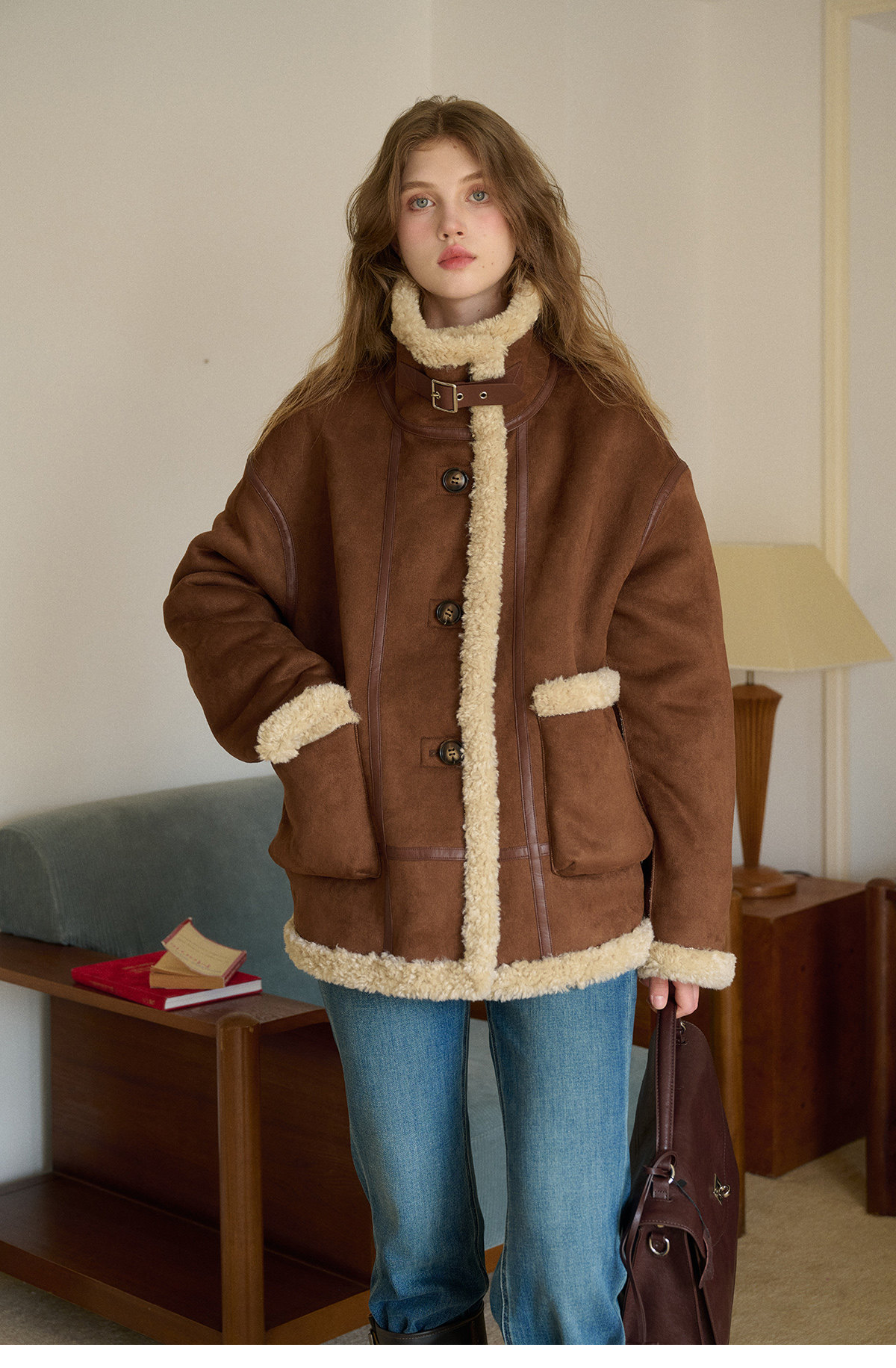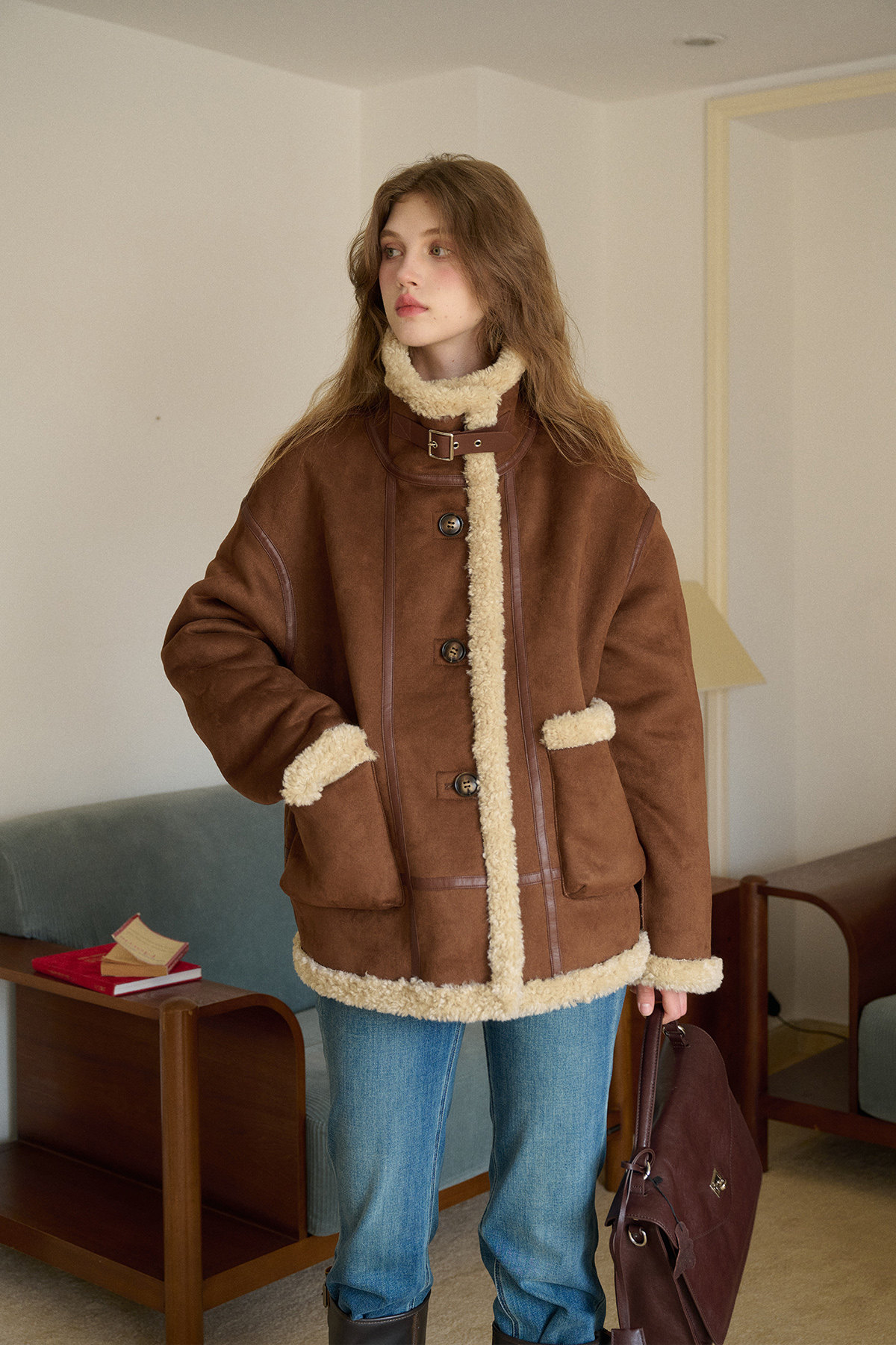 SimpleRetro Yilu Traveler chaqueta de moto todo en uno de piel francesa de dos prendas top de sherpa de imitación para mujer