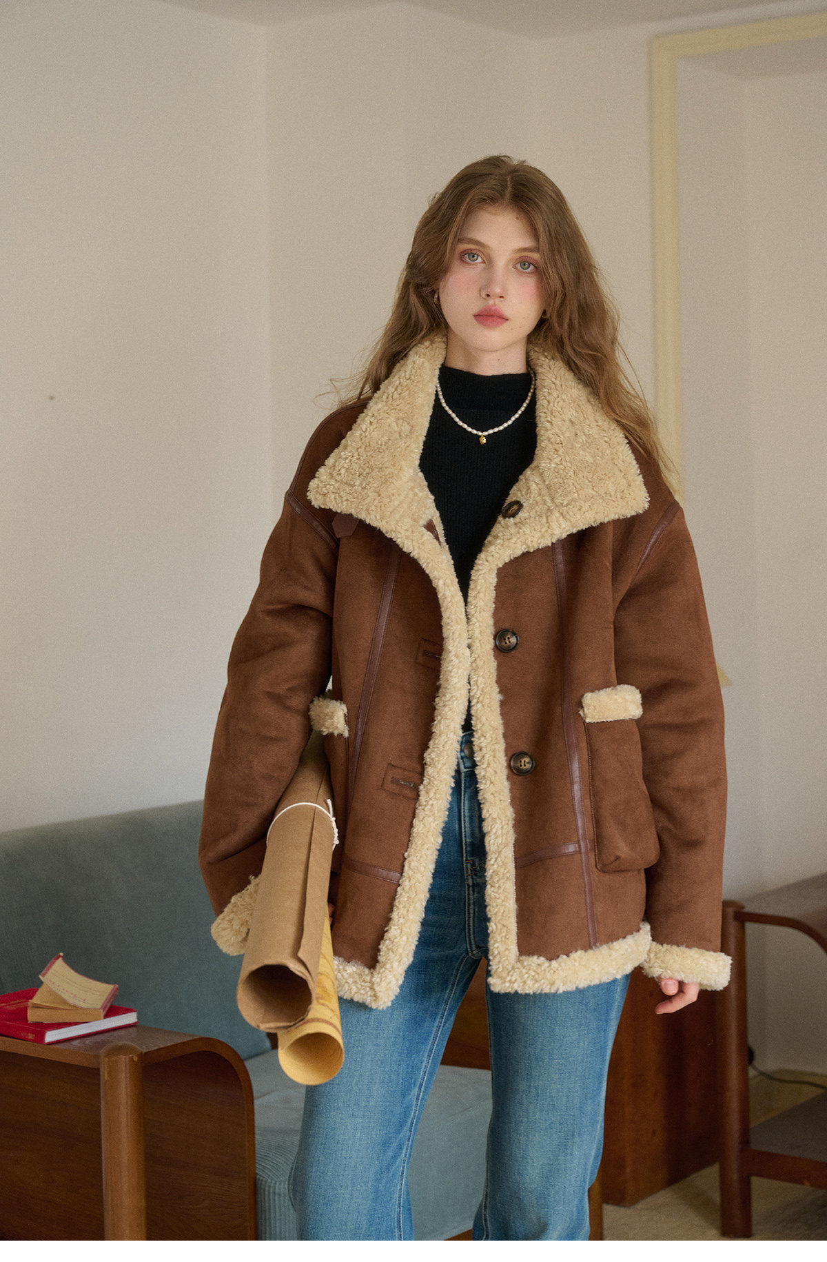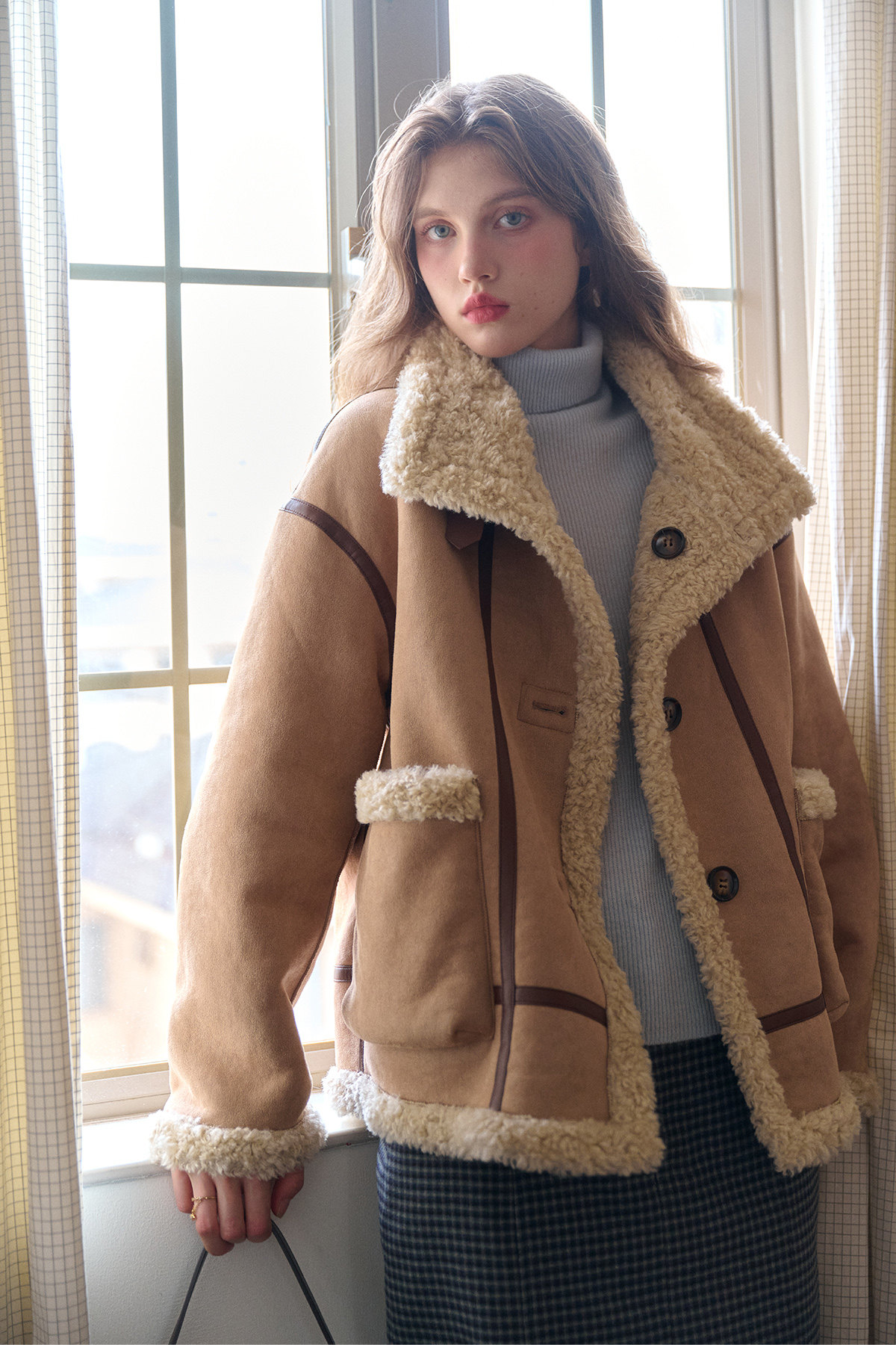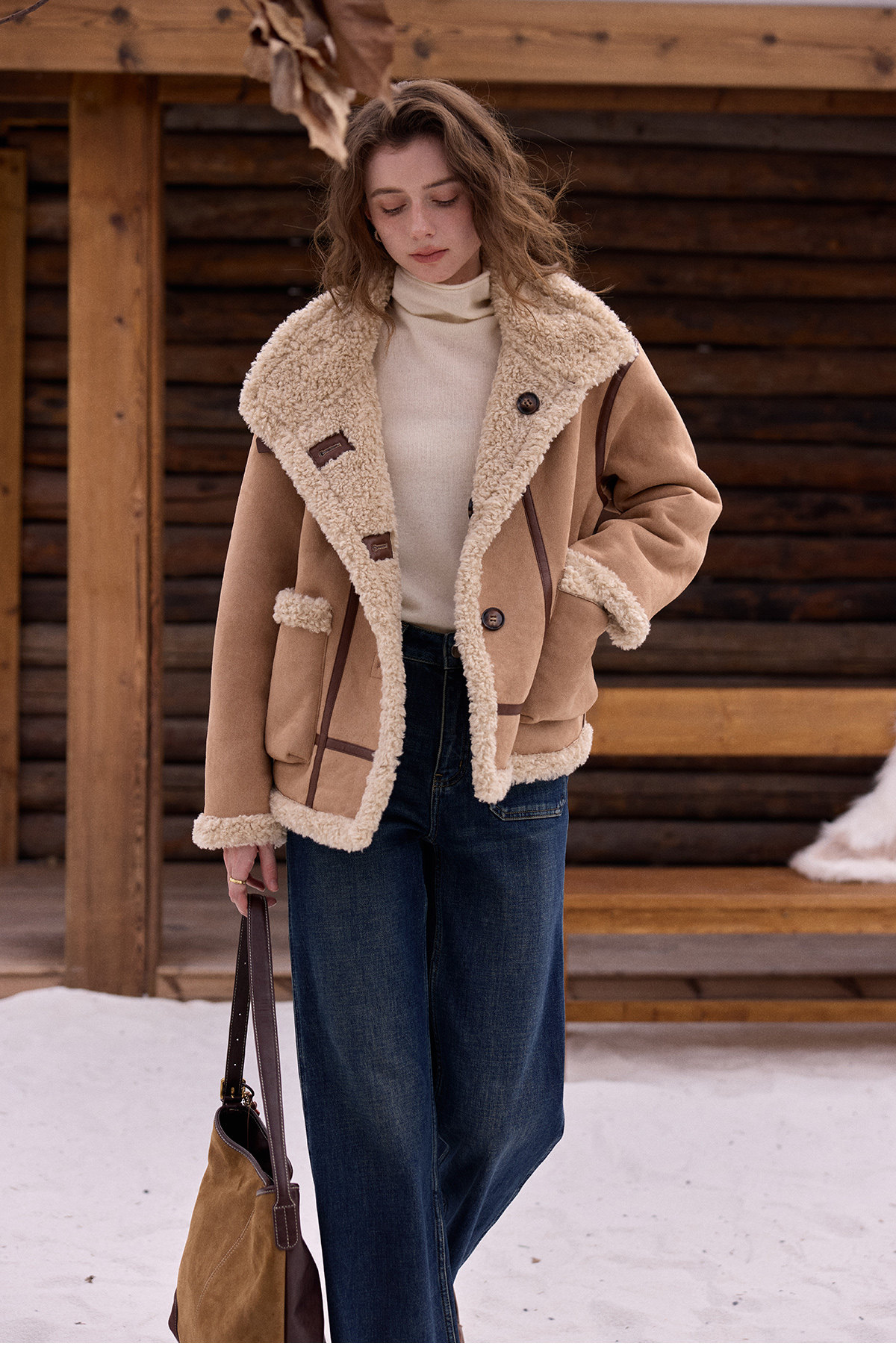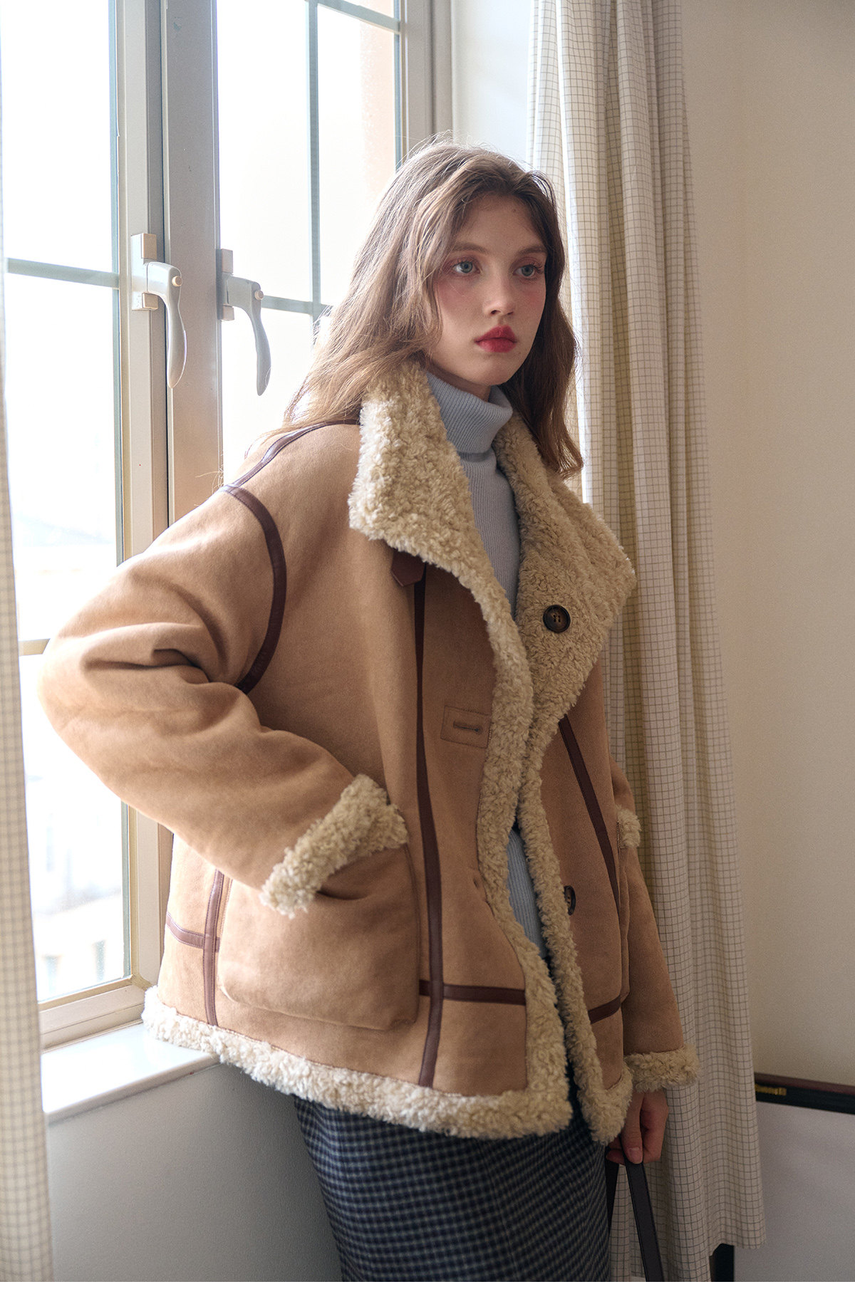 SimpleRetro Yilu Traveler chaqueta de moto todo en uno de piel francesa de dos prendas top de sherpa de imitación para mujer
