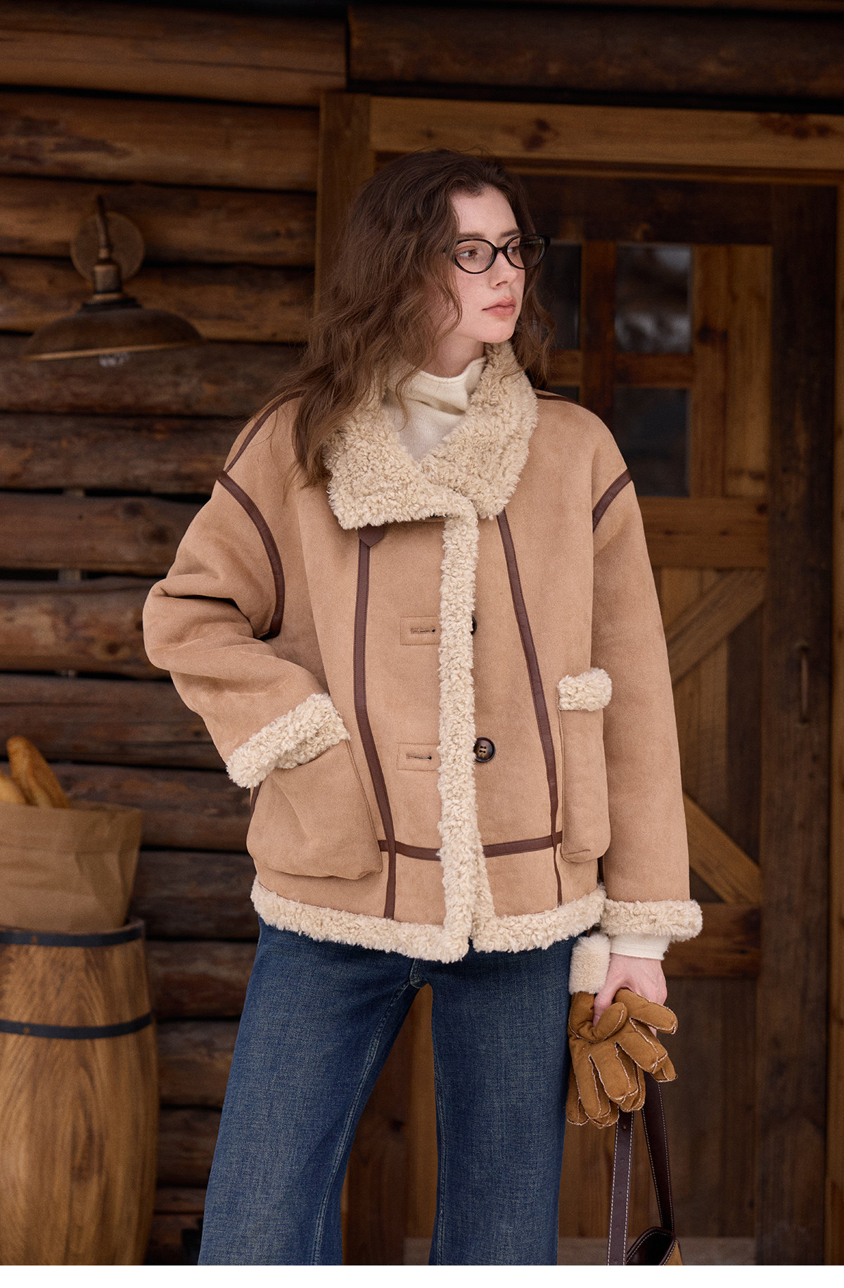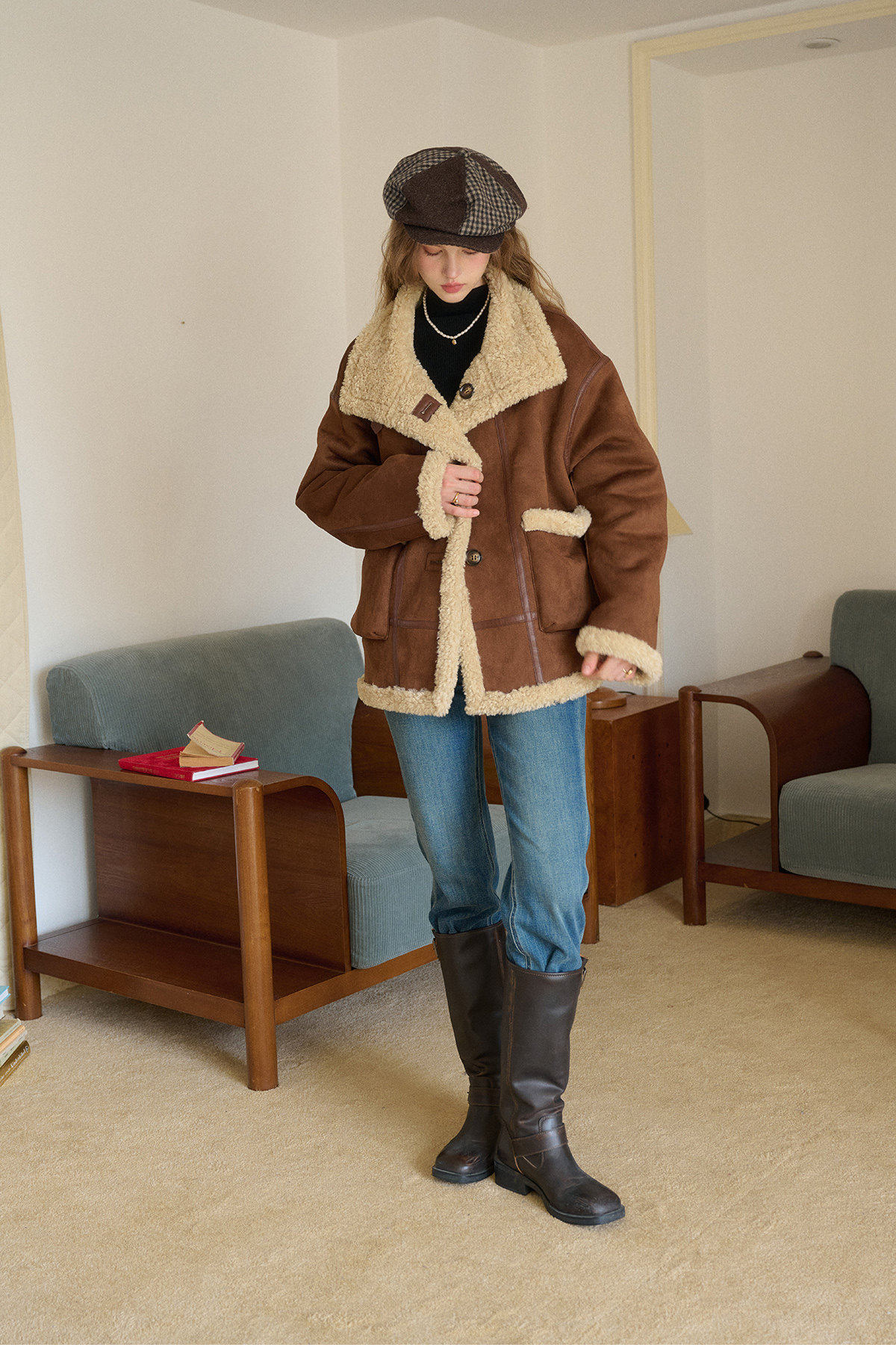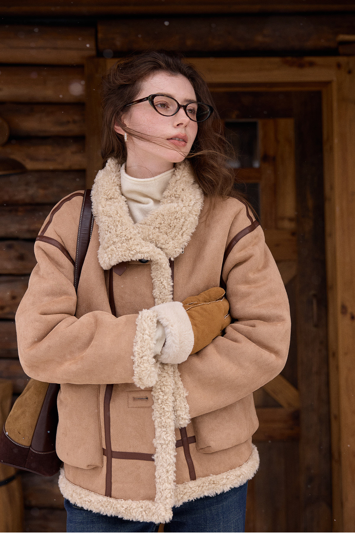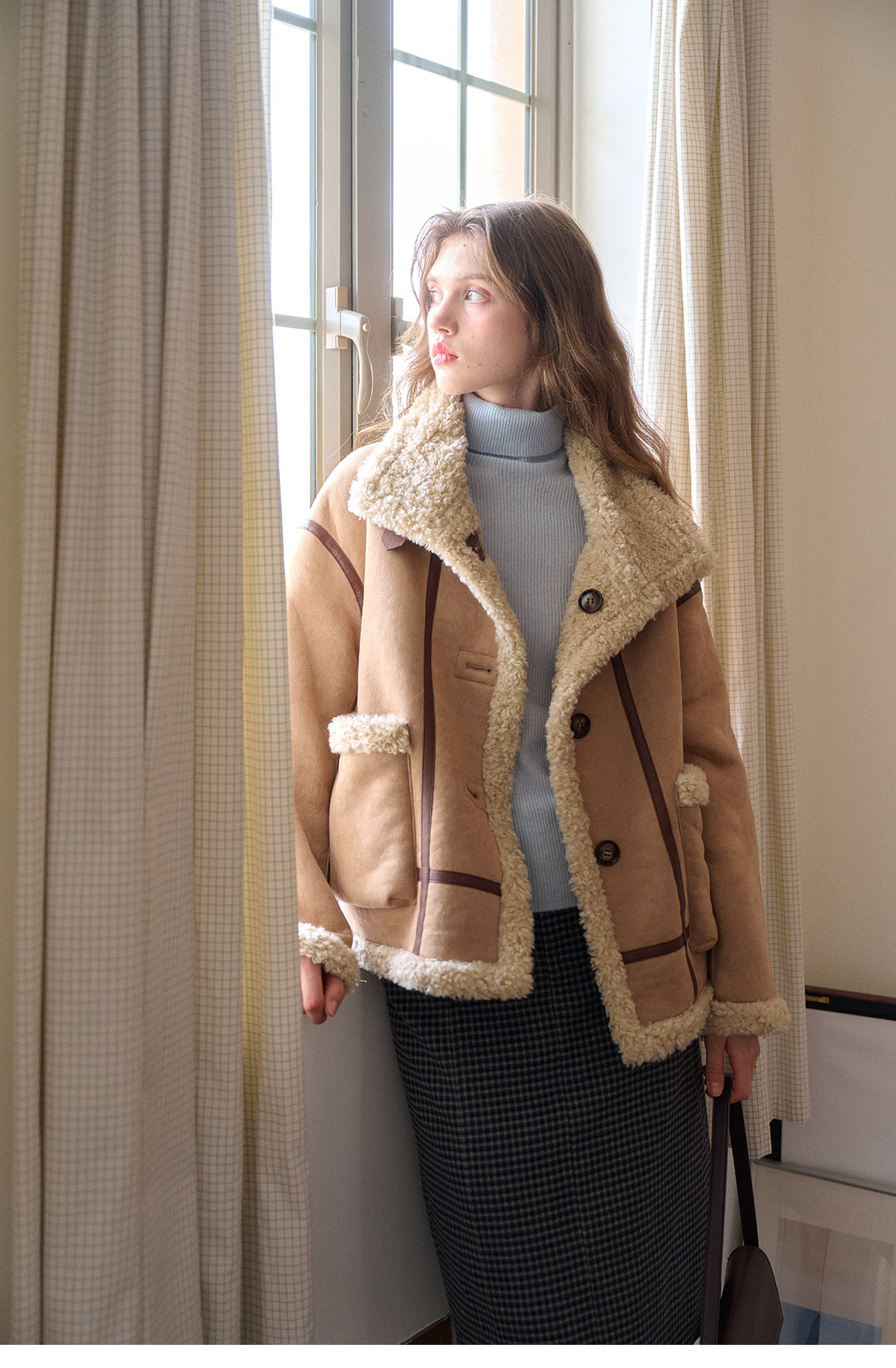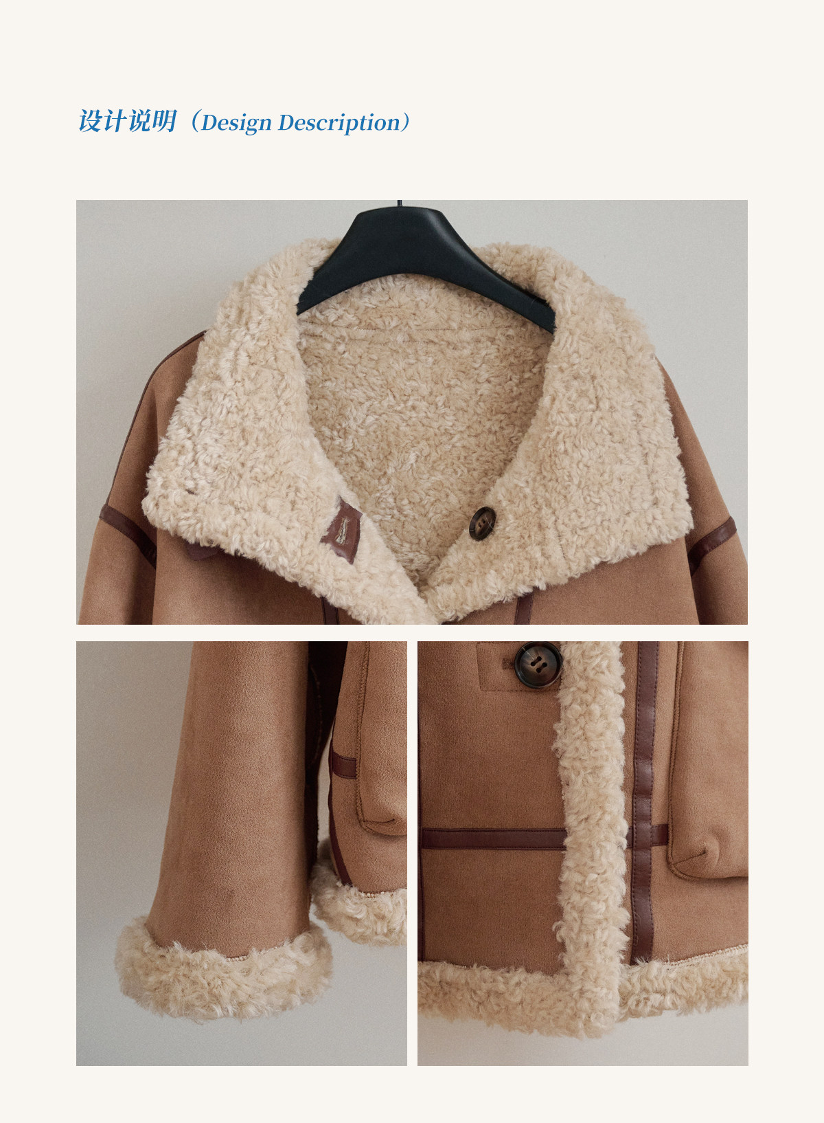 SimpleRetro Yilu Traveler chaqueta de moto todo en uno de piel francesa de dos prendas top de sherpa de imitación para mujer