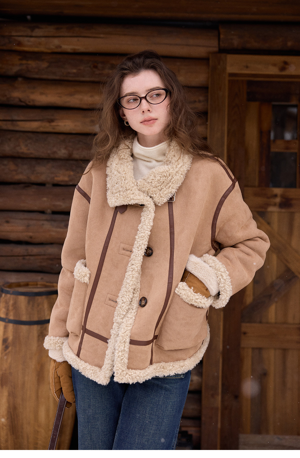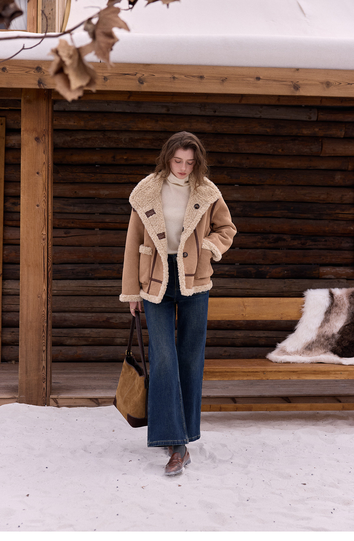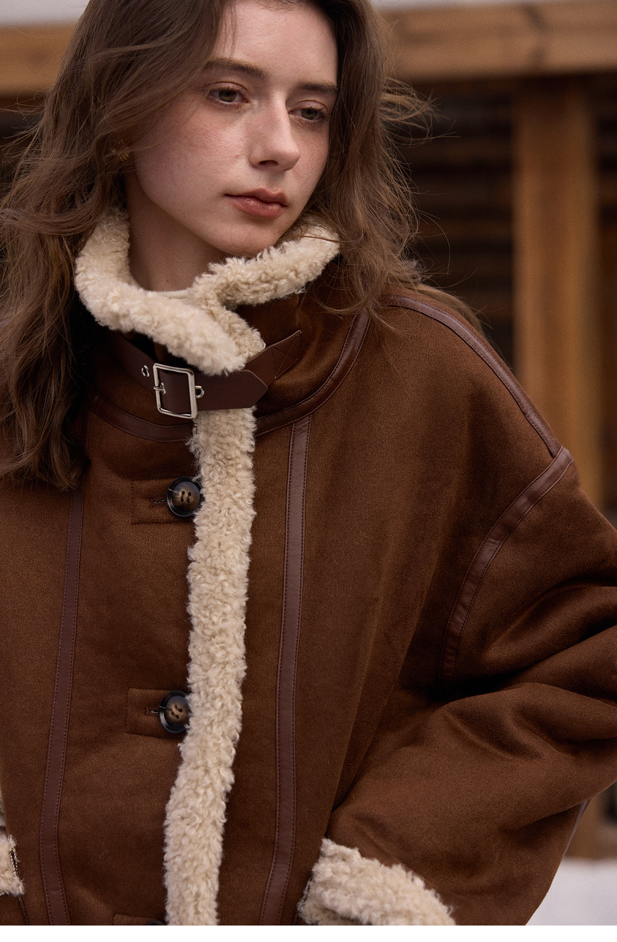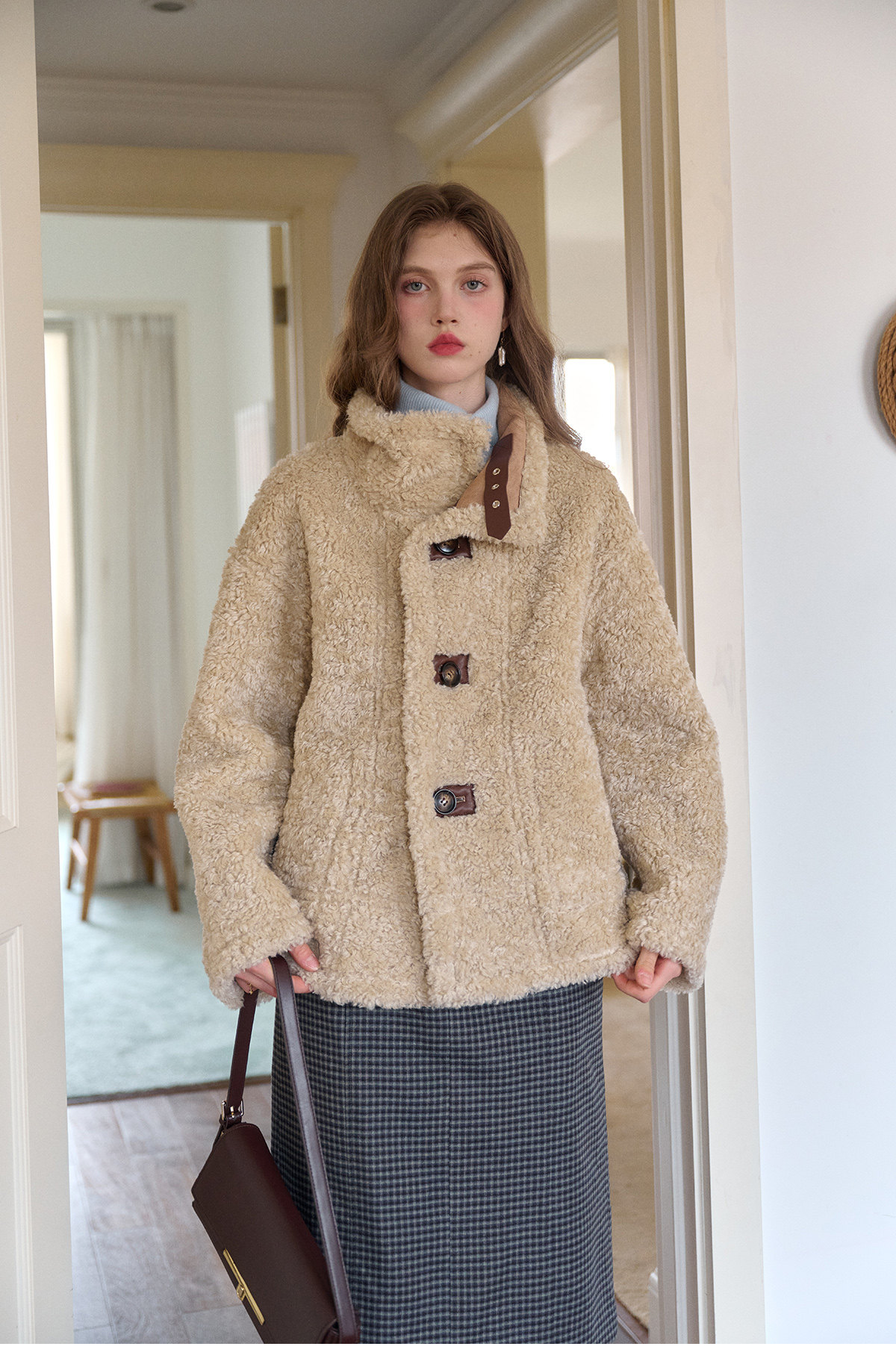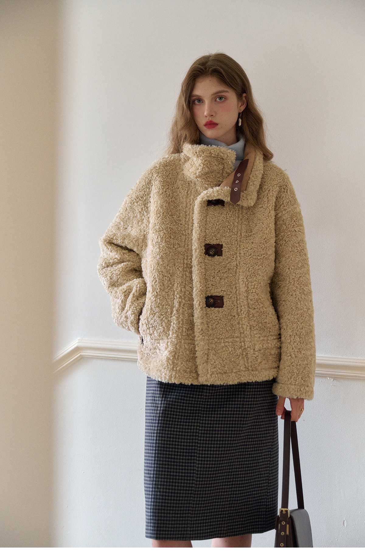 SimpleRetro Yilu Traveler chaqueta de moto todo en uno de piel francesa de dos prendas top de sherpa de imitación para mujer
