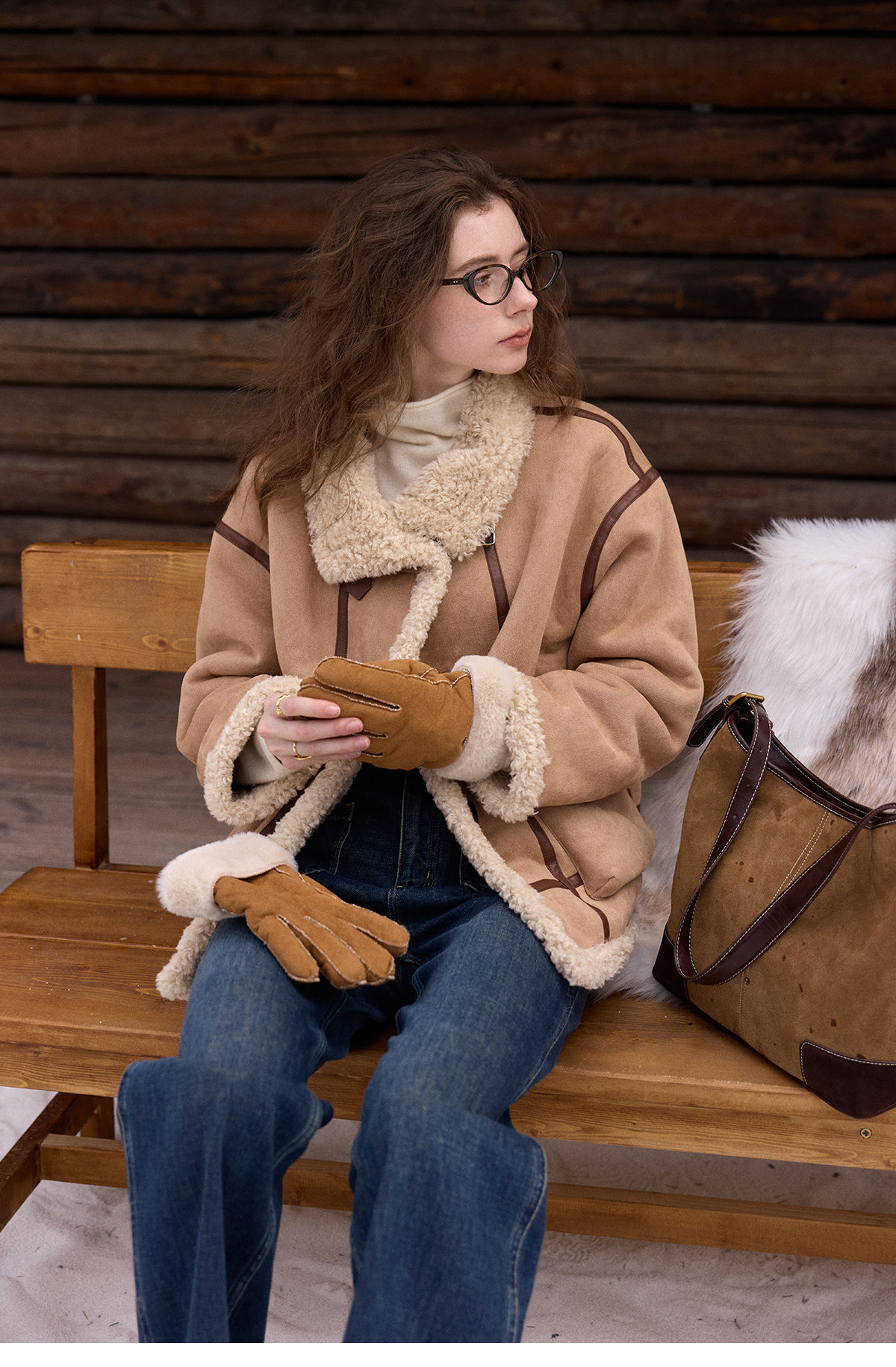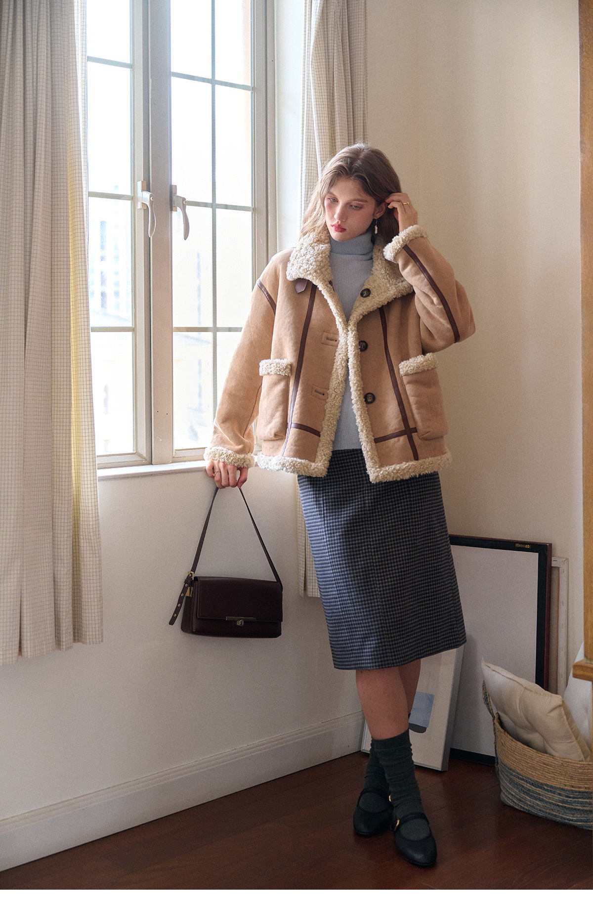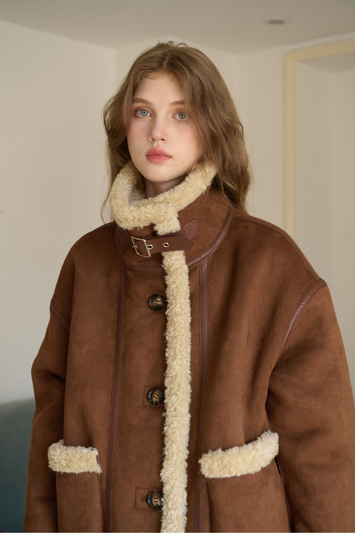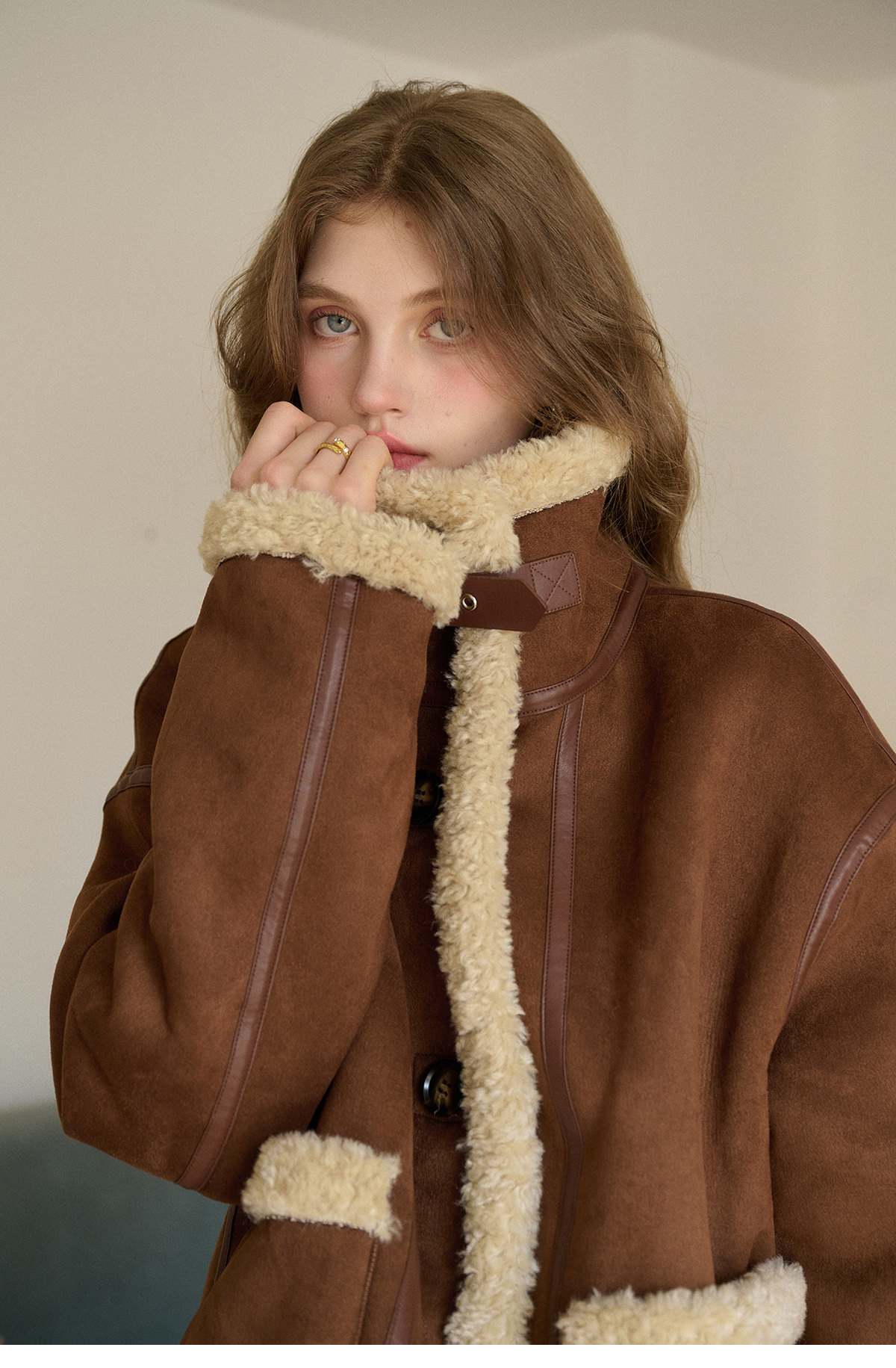 SimpleRetro Yilu Traveler chaqueta de moto todo en uno de piel francesa de dos prendas top de sherpa de imitación para mujer