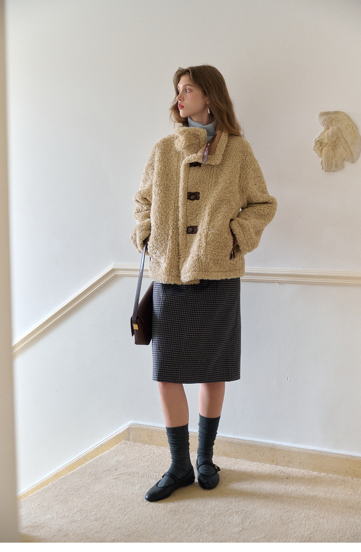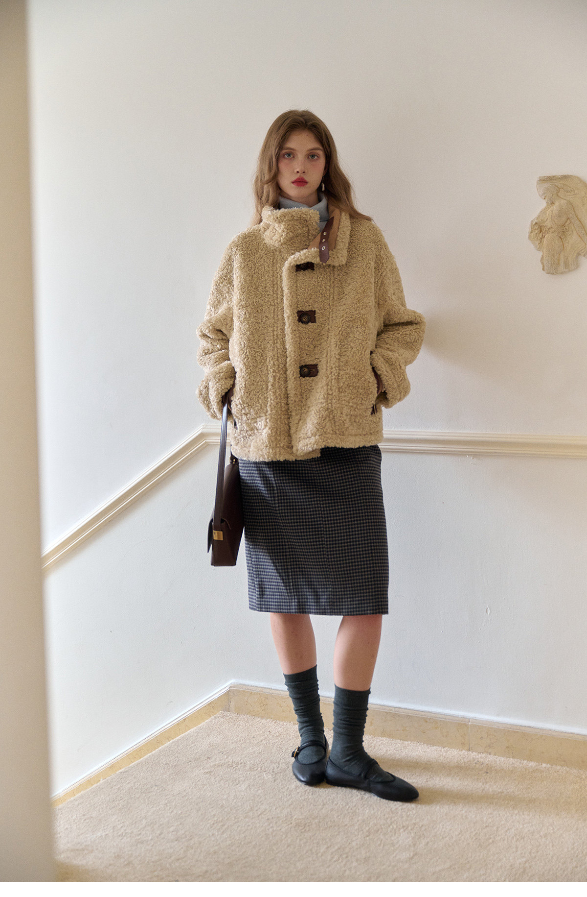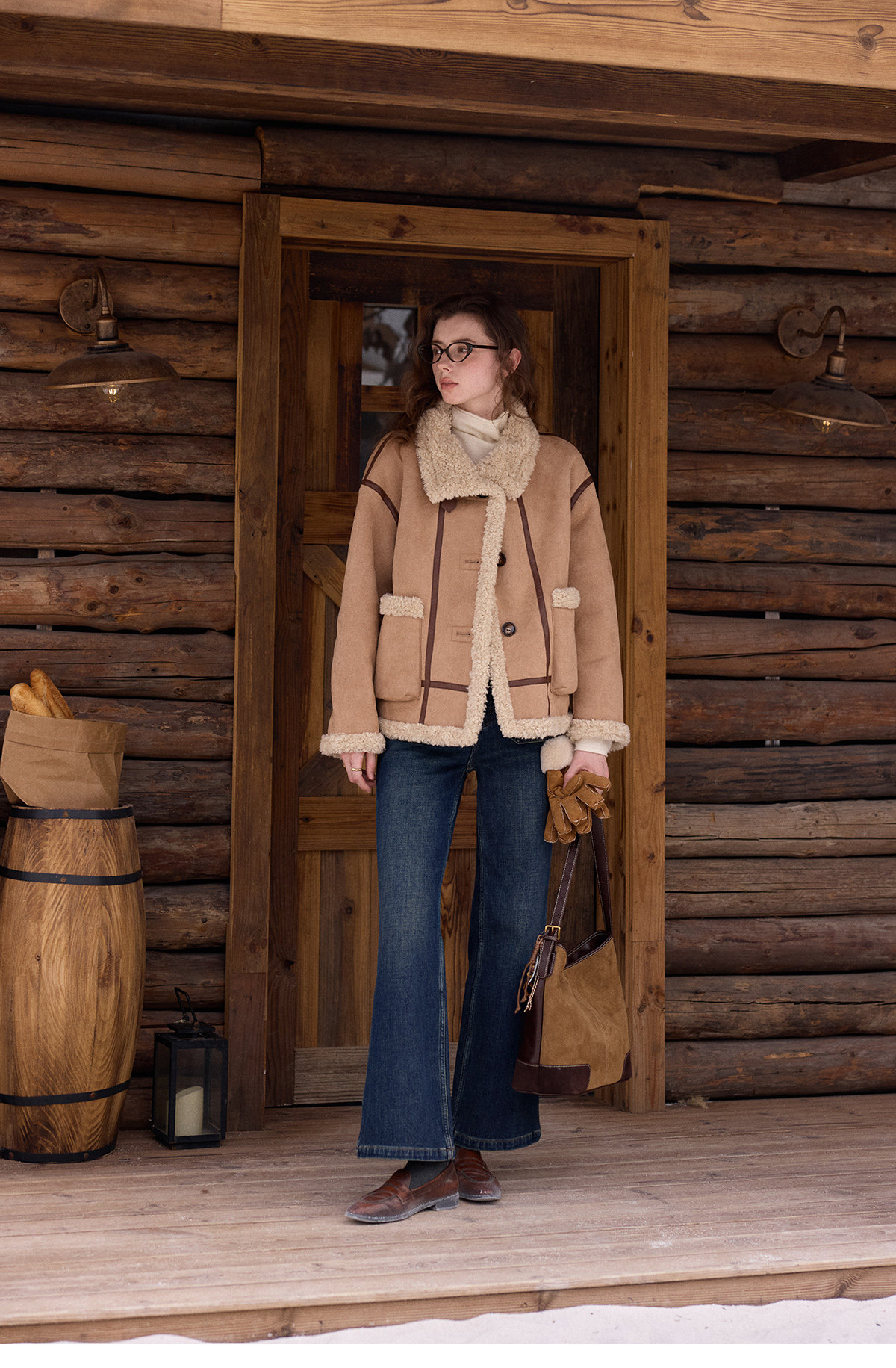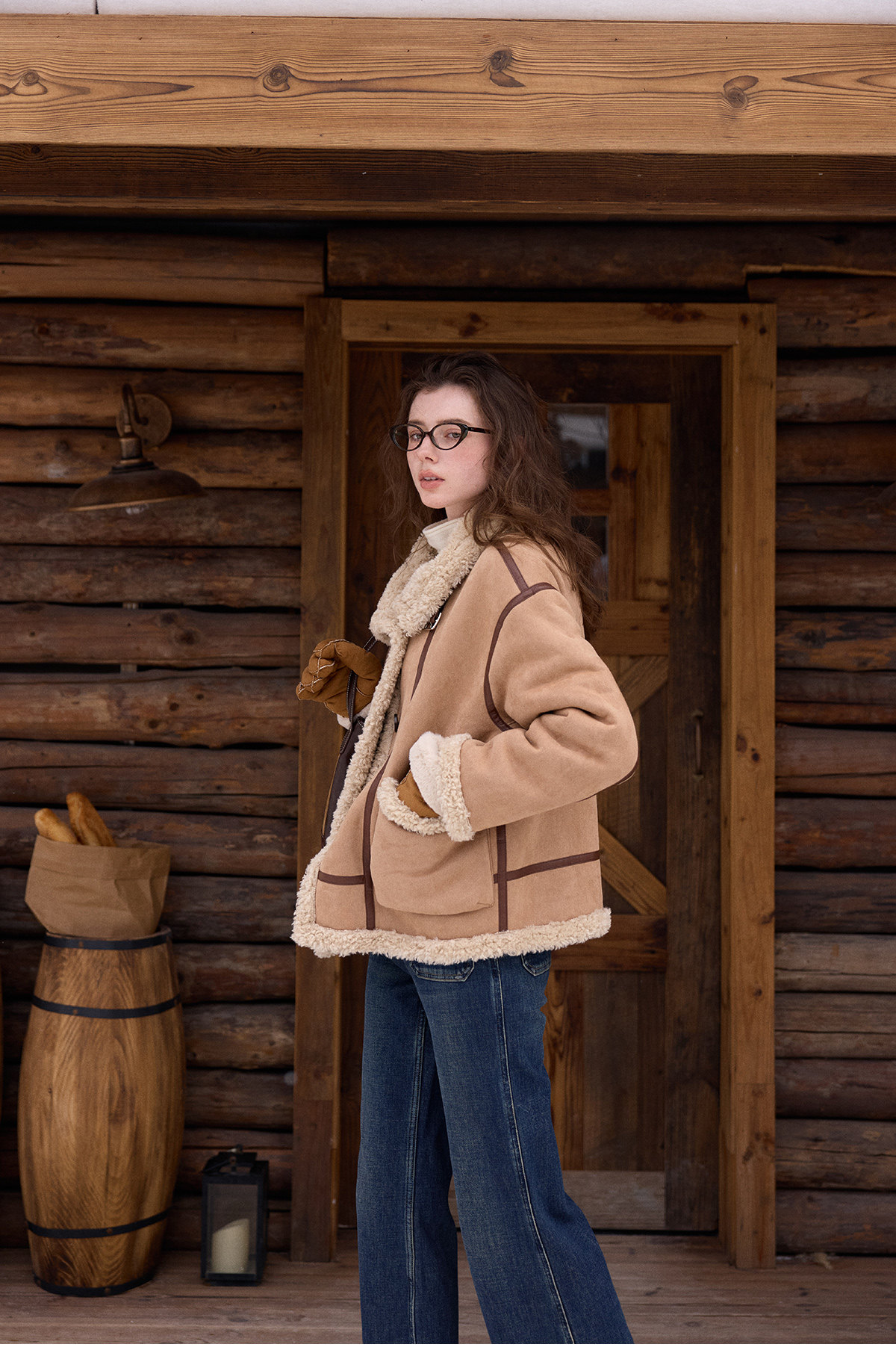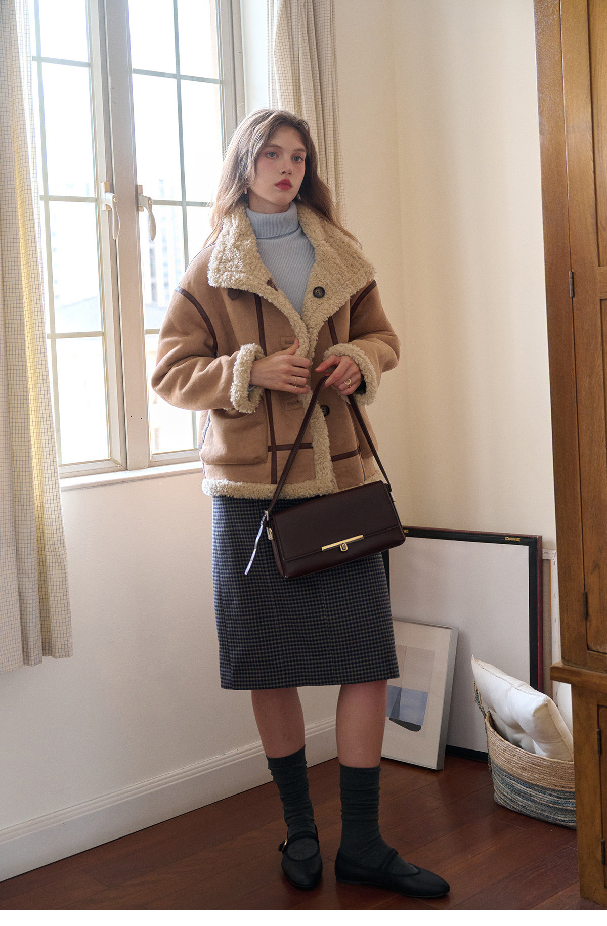 SimpleRetro Yilu Traveler chaqueta de moto todo en uno de piel francesa de dos prendas top de sherpa de imitación para mujer