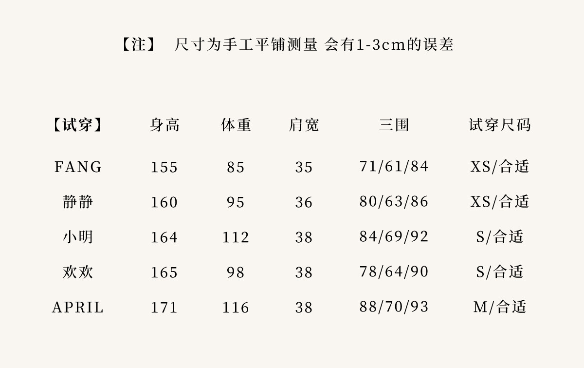 China (cm) 160-165/84-86 165-170 / 88-90 167-172 / 92-96 168-173 / 98-102 170-176 / 106-110