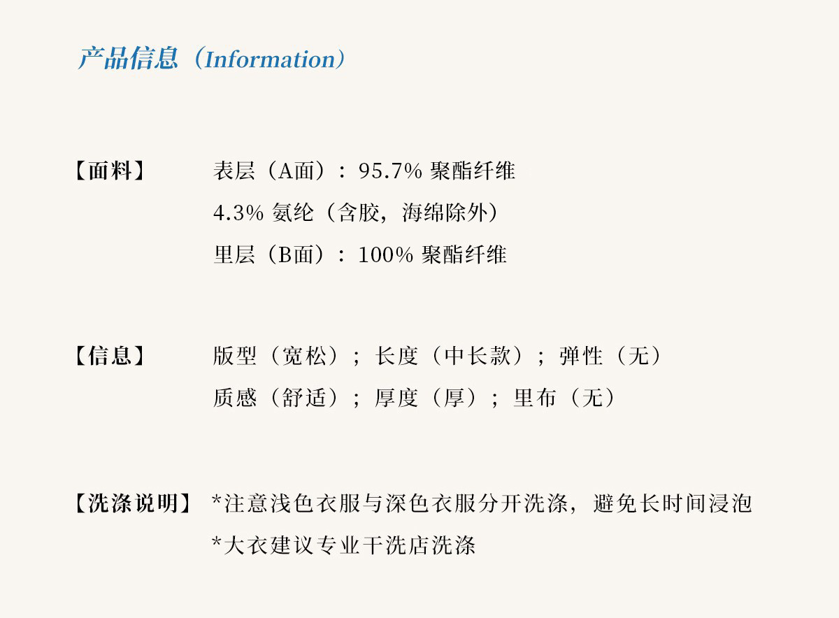 Composición de materiales 95,7% poliéster 4,3% elastano