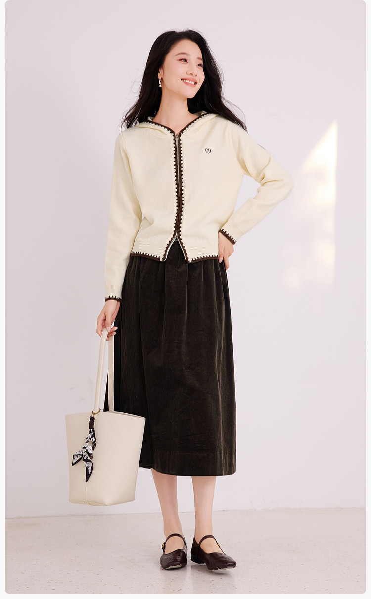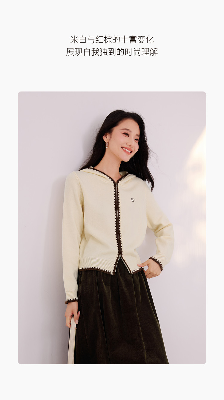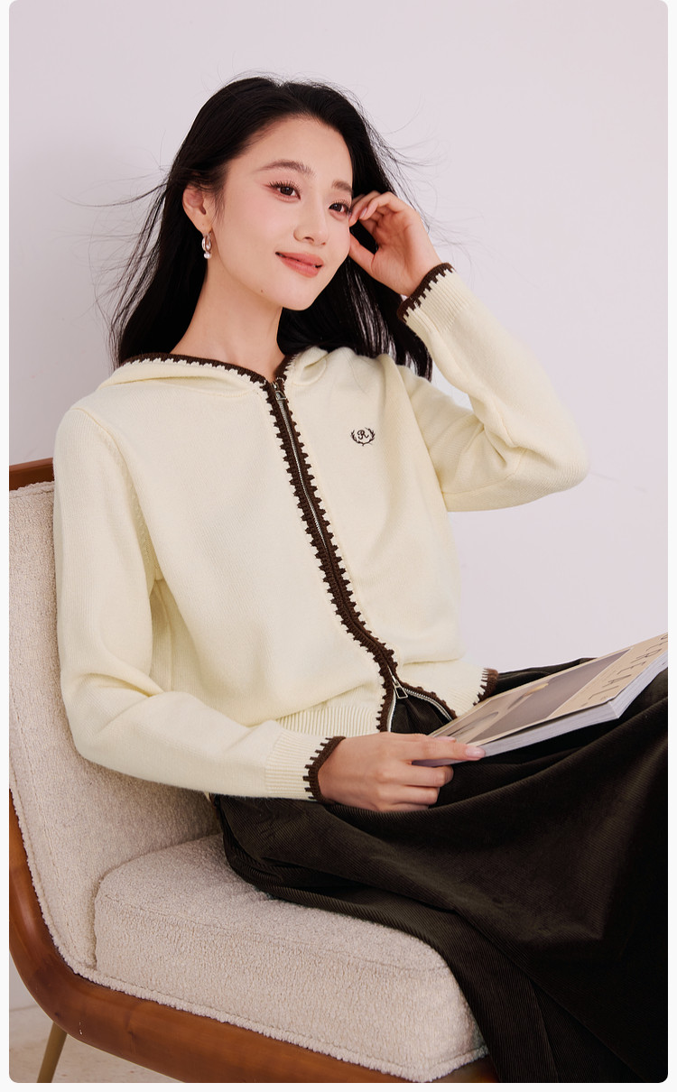 香影双拉链连帽针织开衫女2025冬季新款正肩长袖复古刺绣毛衣外套