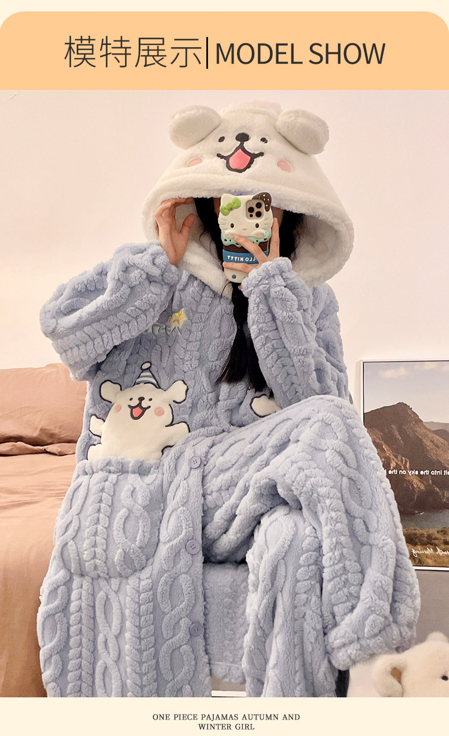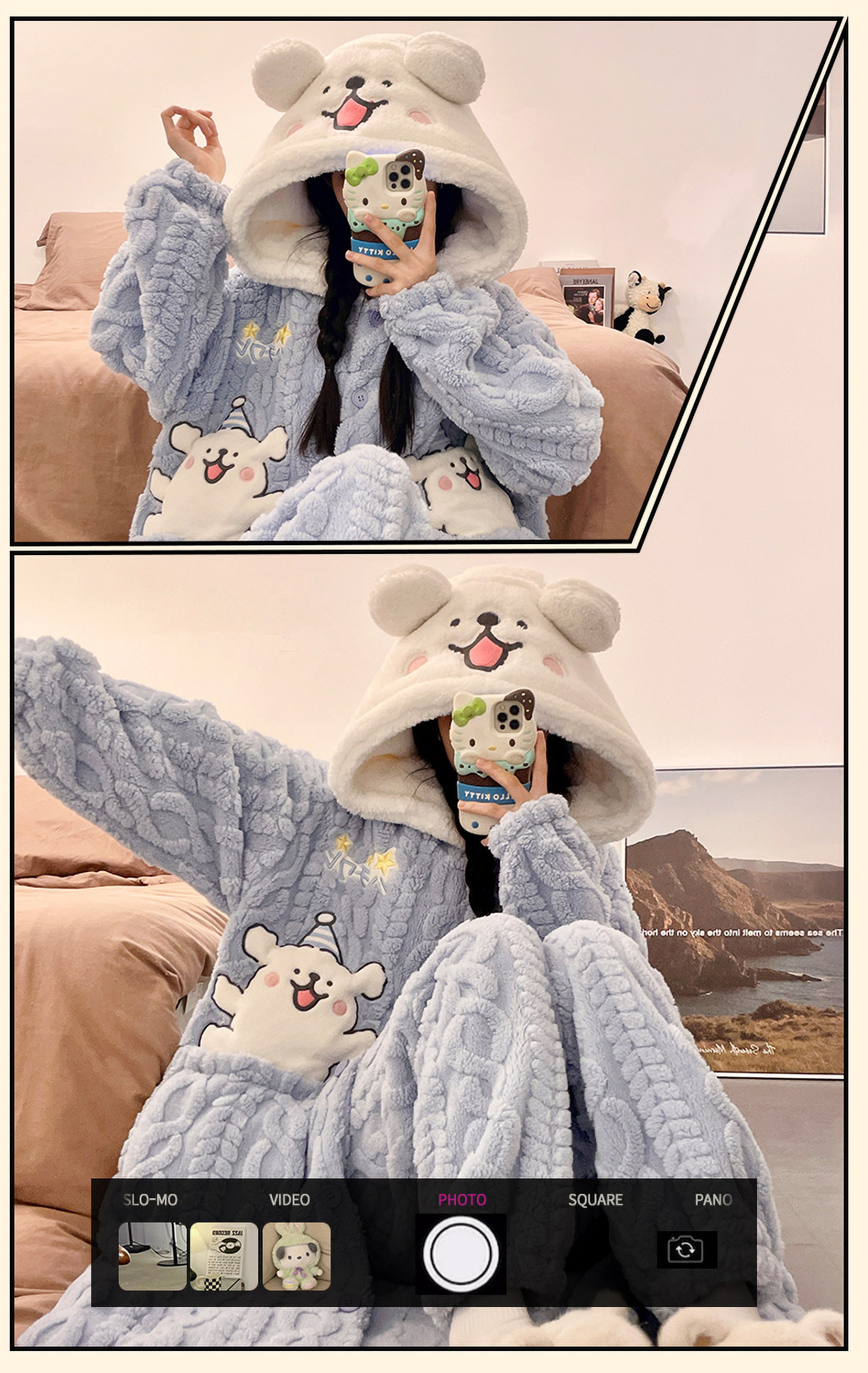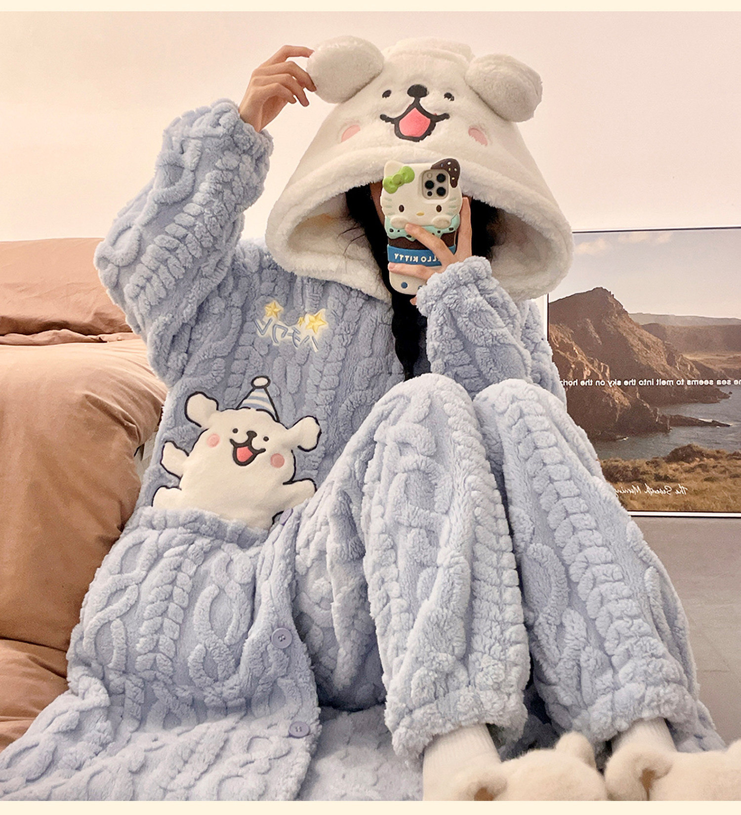 2025 neue Pyjamas Linie Welpen Pyjamas Abdeckung frauen Korallen Fleece Verdickt Cartoon Flanell Hause Kleidung Winter